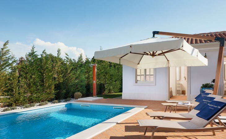 Tar 7 km van Poreč: Moderne villa "Celeste", van 2 verdiepingen. In het gehucht Vabriga, 1 km van het centrum van Tar, 9 km van het centrum van Novigrad, zonnige ligging, 2 km van zee, 2 km van het strand. Voor alleengebruik: terrein 600 m2 (omheind), openluchtzwembad hoekig (7 x 7 m, 130 cm diepte, seizoensgebonden beschikbaarheid: 01.Mei. - 01.Nov.) met trap. Buitendouche, terras, tuinmeubelen, barbecue. In het huis: internetaansluiting, wasmachine. Beschikbaar: fietsen (2). Overdekte parkeerplaats (voor 2 auto's) bij het huis op het terrein. Winkel 600 m, supermarkt 800 m, restaurant 500 m, bushalte 600 m, kiezelstrand 2 km, rotsstrand 2 km. Vliegveld 60 km van het huis.