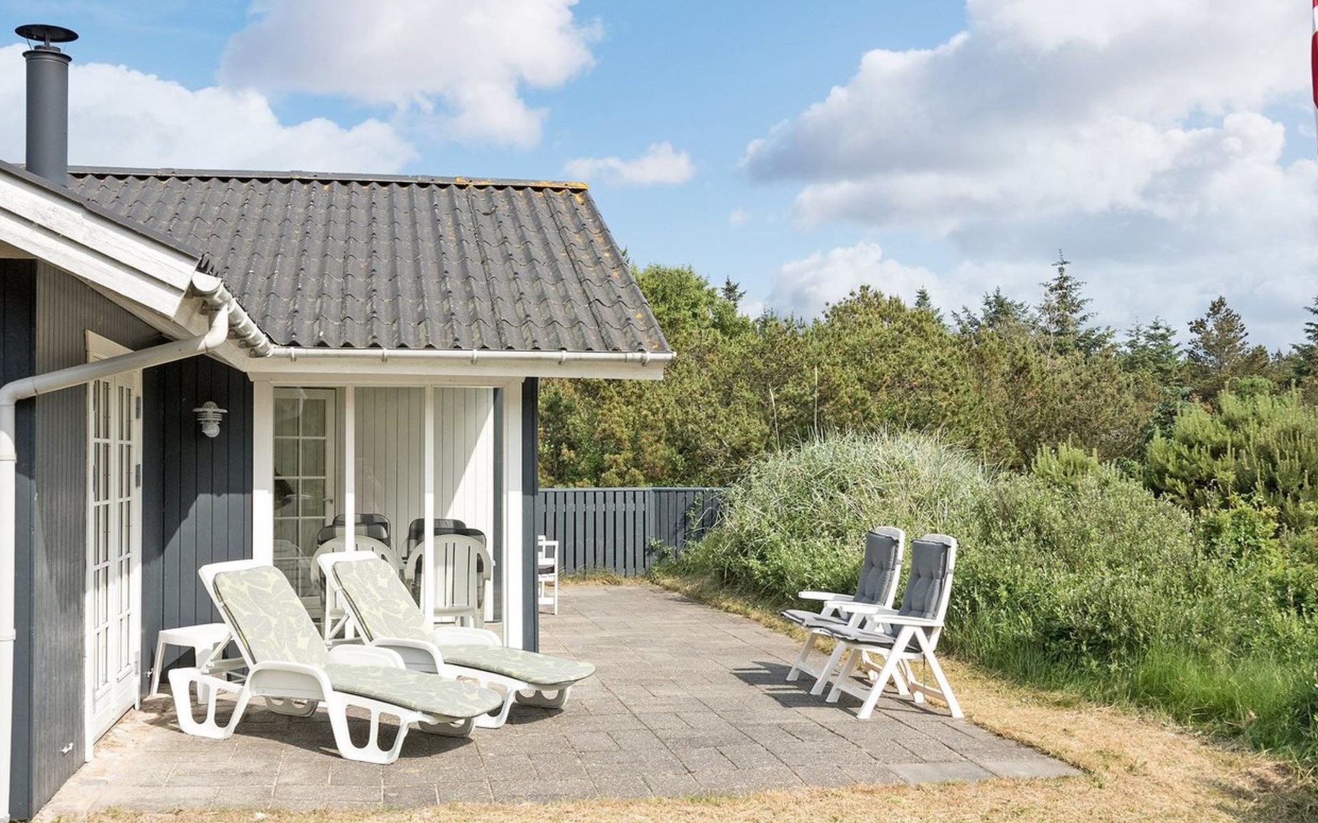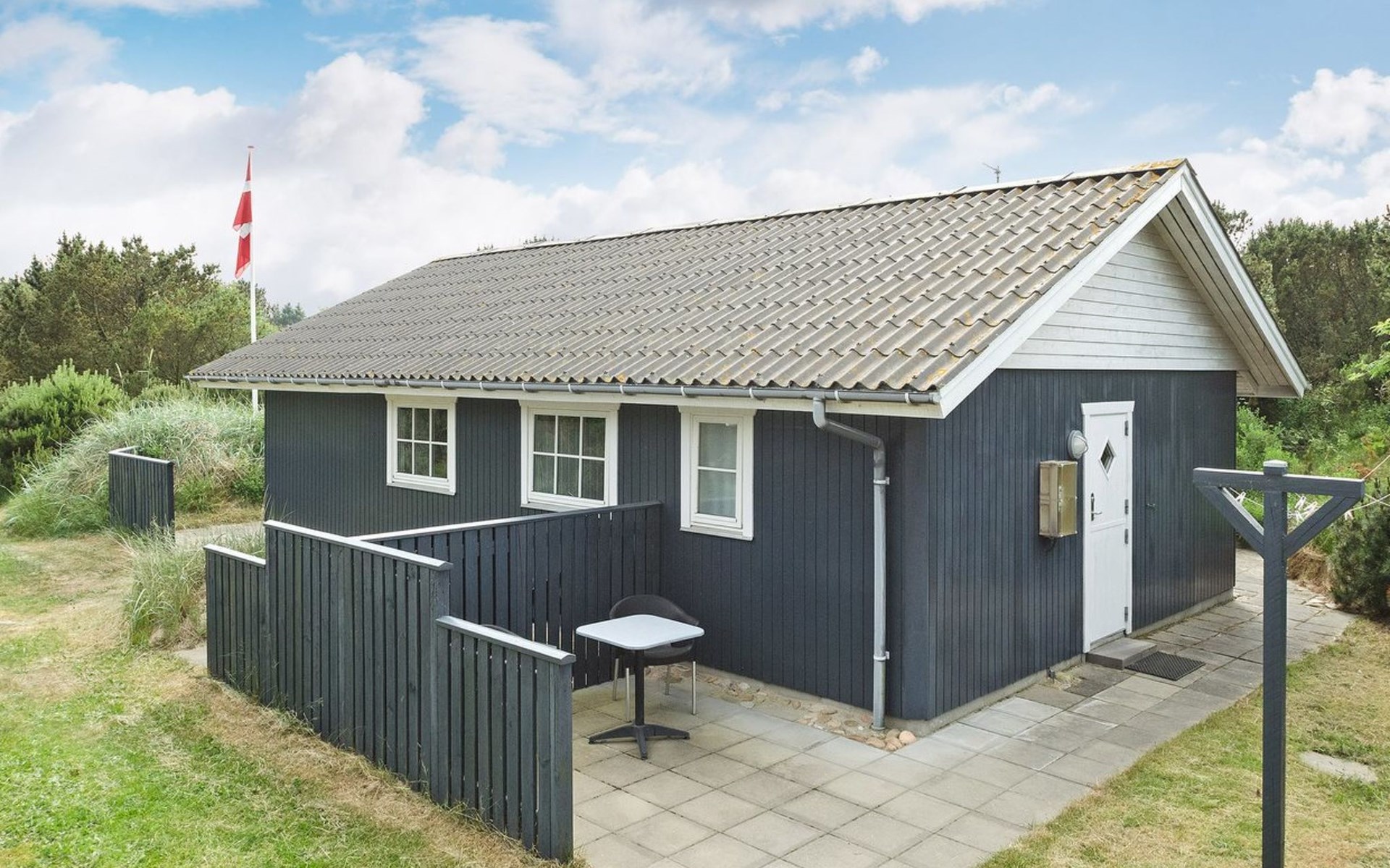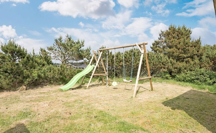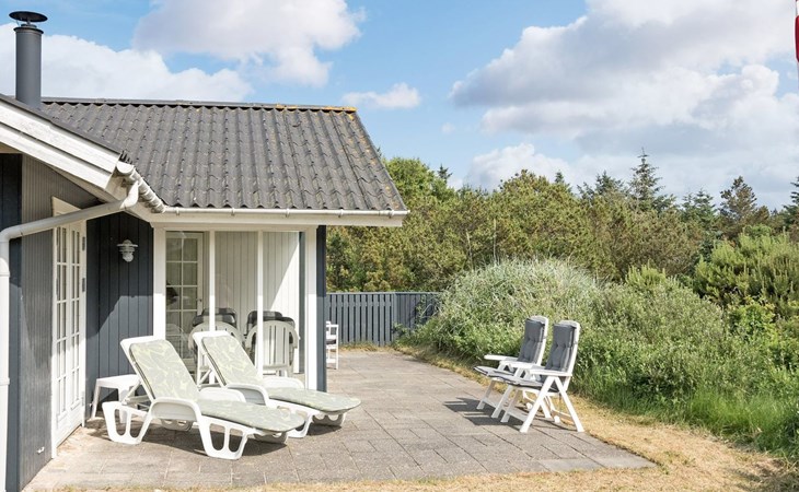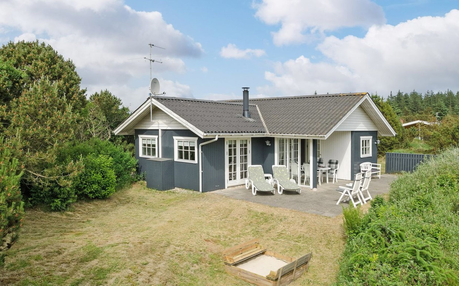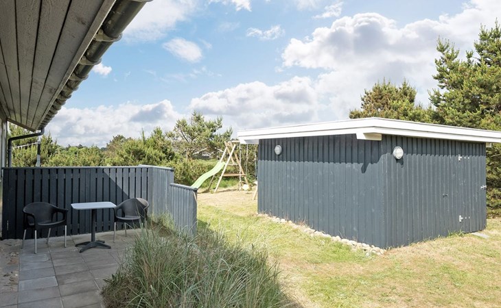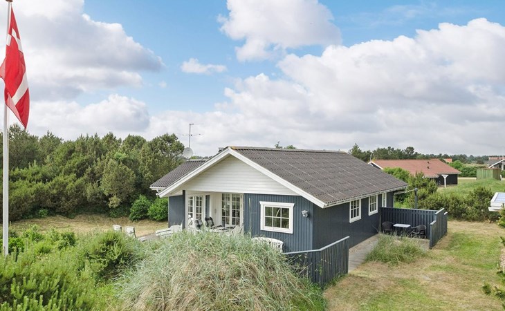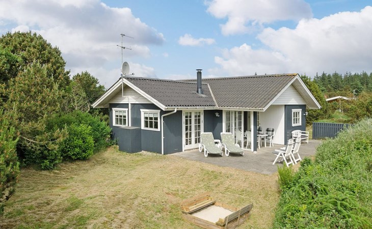 Eengezinswoning, bouwjaar 1973. 1 km van zee. Voor alleengebruik: wild terrein 1.800 m2. Terras (30 m2), kinderspeelplaats (glijbaan, schommel). In het huis: wasmachine. Parkeerplaats bij het huis. Levensmiddelenwinkel 1 km. De eigenaar accepteert geen jeugdgroepen.