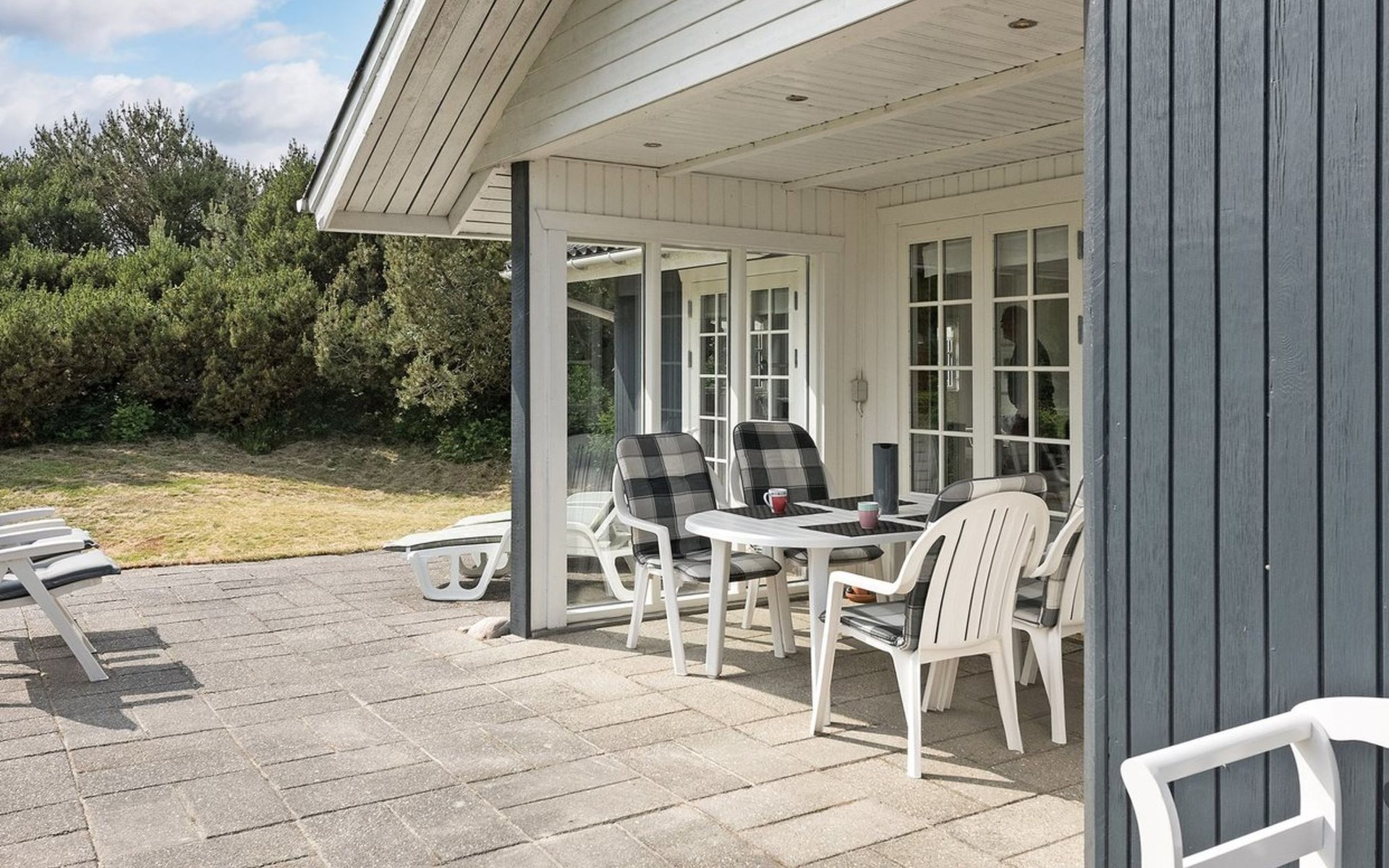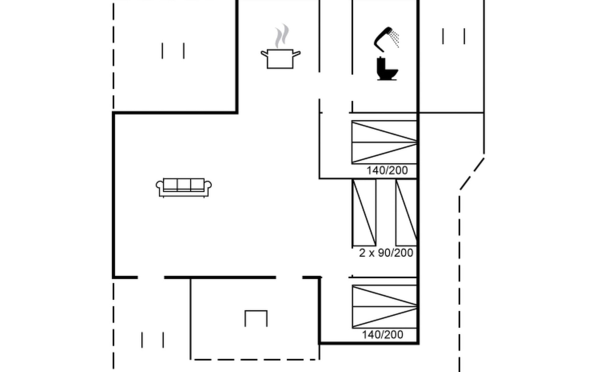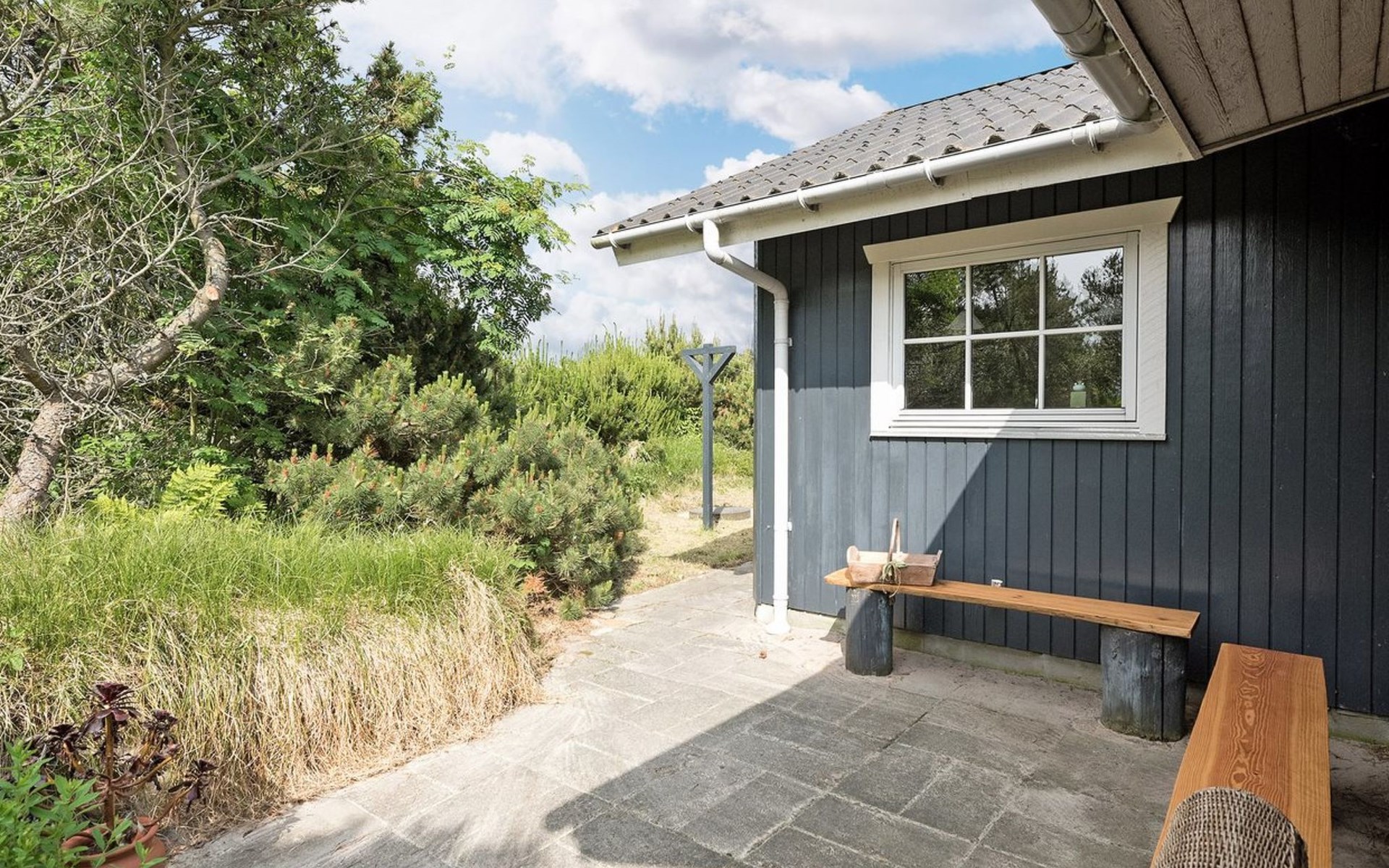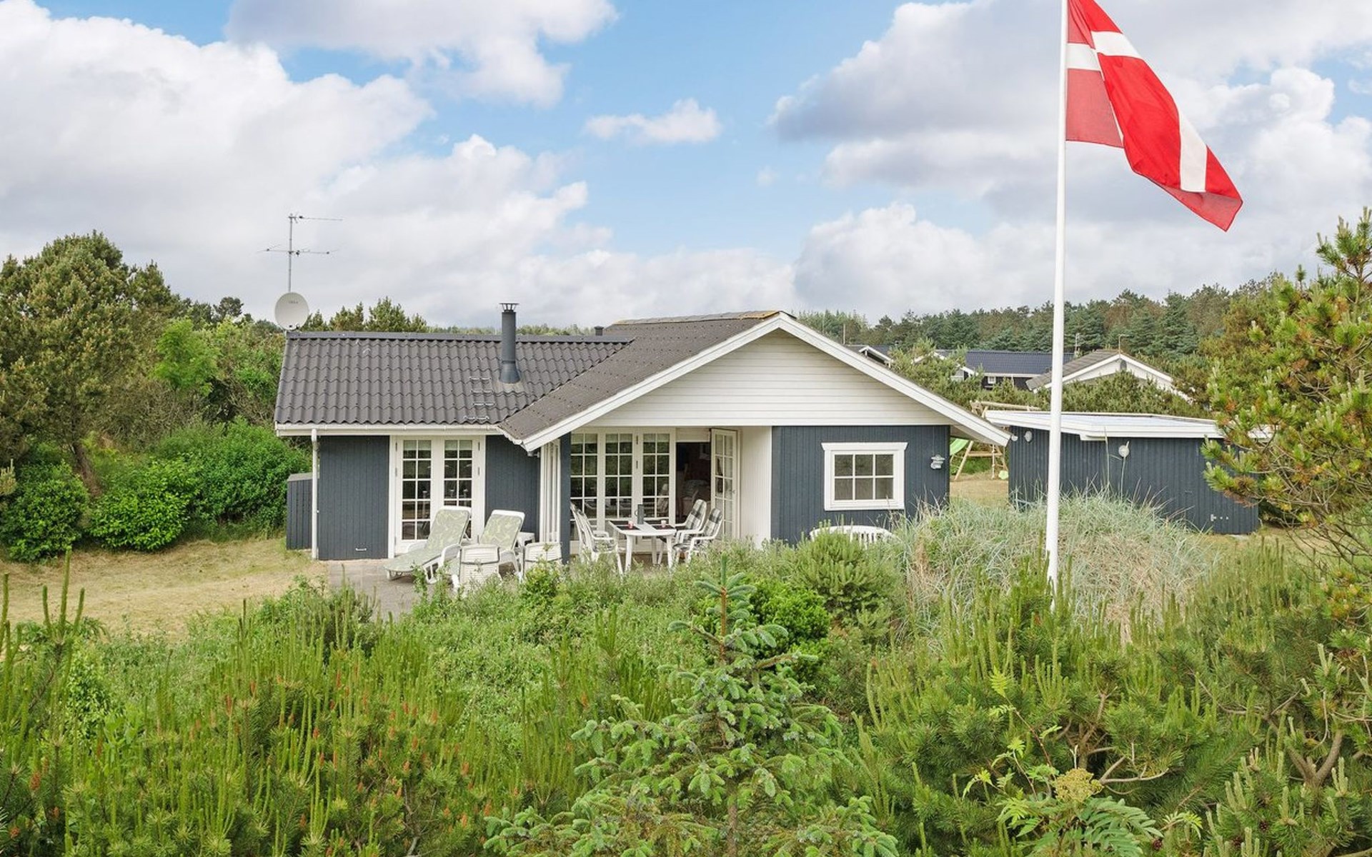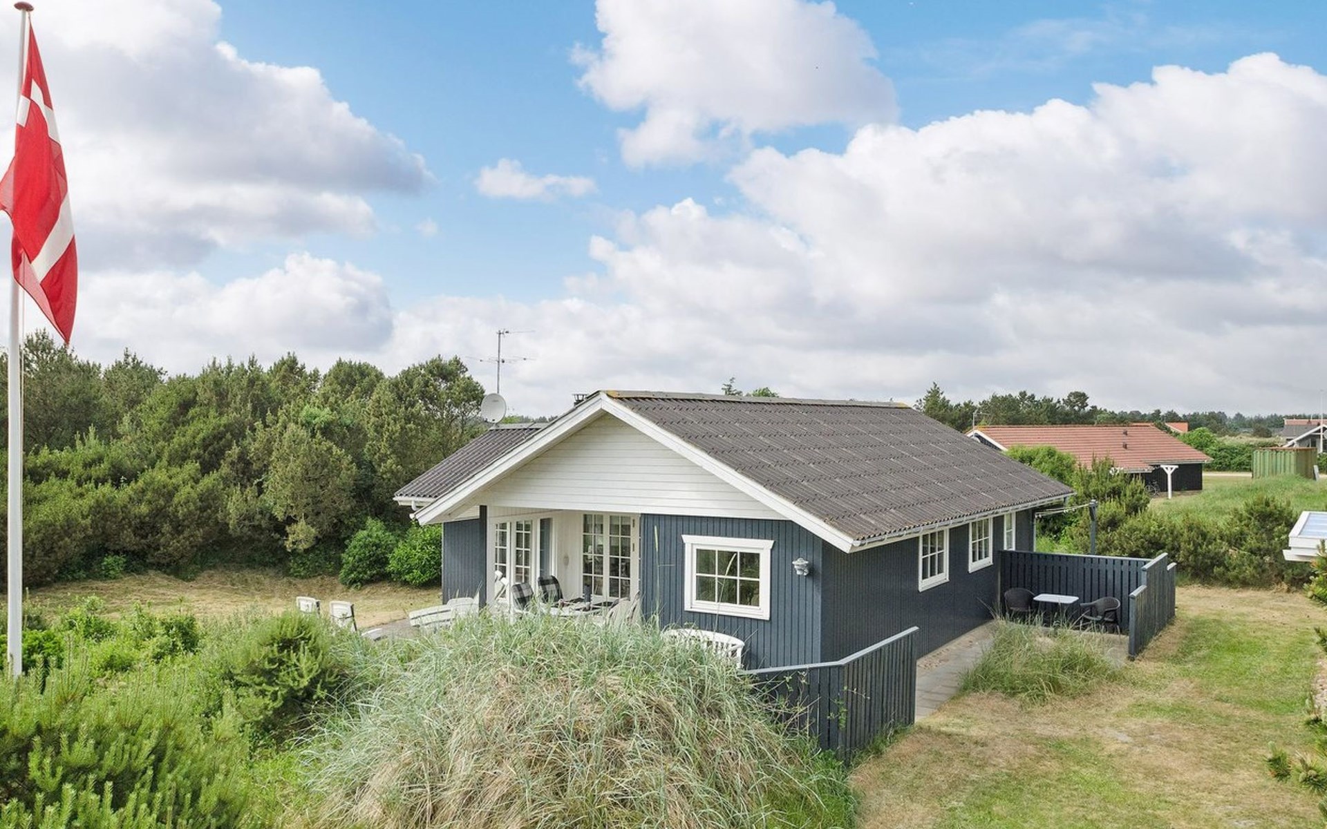 Eengezinswoning, bouwjaar 1973. 1 km van zee. Voor alleengebruik: wild terrein 1.800 m2. Terras (30 m2), kinderspeelplaats (glijbaan, schommel). In het huis: wasmachine. Parkeerplaats bij het huis. Levensmiddelenwinkel 1 km. De eigenaar accepteert geen jeugdgroepen.