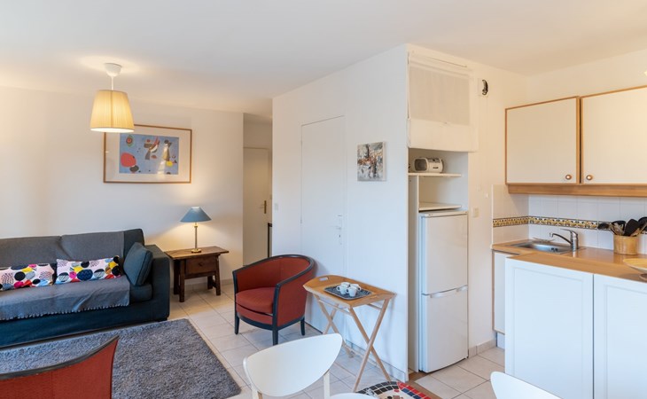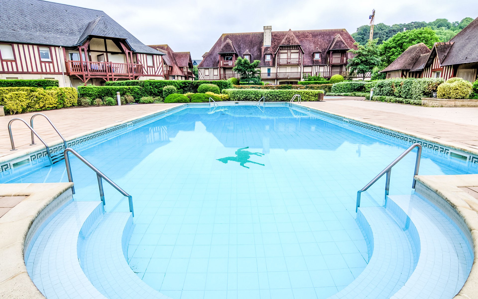 Deauville: Mooi residentie "Domaine de Clairefontaine". In de plaats, 1.4 km van het centrum, rustige ligging, 900 m van zee, 900 m van het strand. Voor medegebruik: openluchtzwembad hoekig verwarmd, omheind (6 x 15 m, seizoensgebonden beschikbaarheid: 01.Jun. - 30.Sep.). Douche/WC bij het zwembad, kinderzwembad, tennisbaan. In het complex: solarium, lift. Winkel, levensmiddelenwinkel 800 m, supermarkt 900 m, restaurant 800 m, bushalte "Avenue des courses" 200 m, station "Deauville-Trouville" 1.8 km, overdekt zwembad 1.2 km, thermaalbad "Deauville" 1.2 km. Golfterrein (18 holes) 2.8 km, manege 1.6 km. Attracties in de buurt: Hippodrome Deauville-La Touques 1 km, Centre International Deauville - CID 1.4 km, Mémorial de Caen 50 km, Plage du débarquement d'Arromanches 84 km. De sleuteloverdracht vindt plaats bij het agentschap Interhome in Deauville.