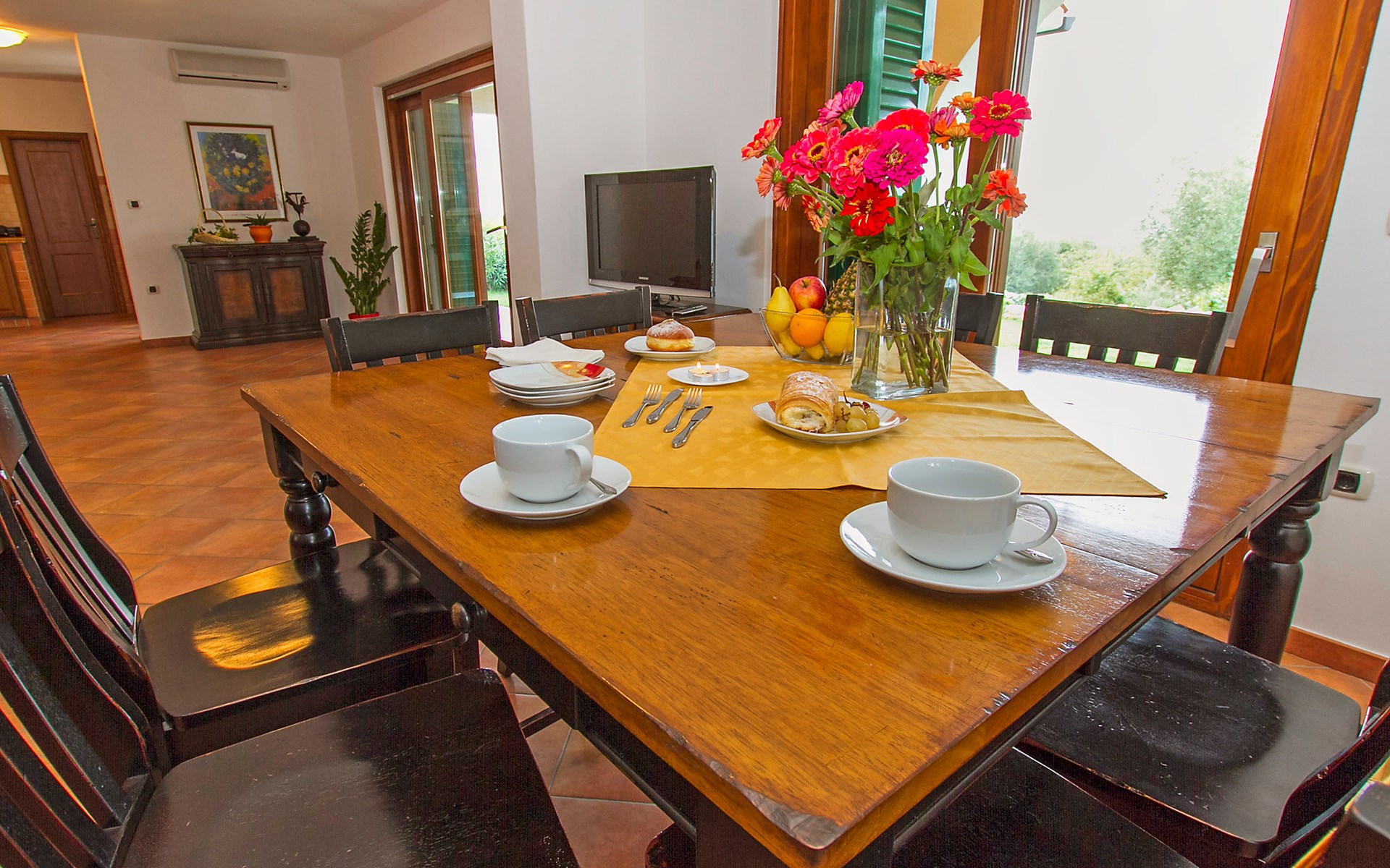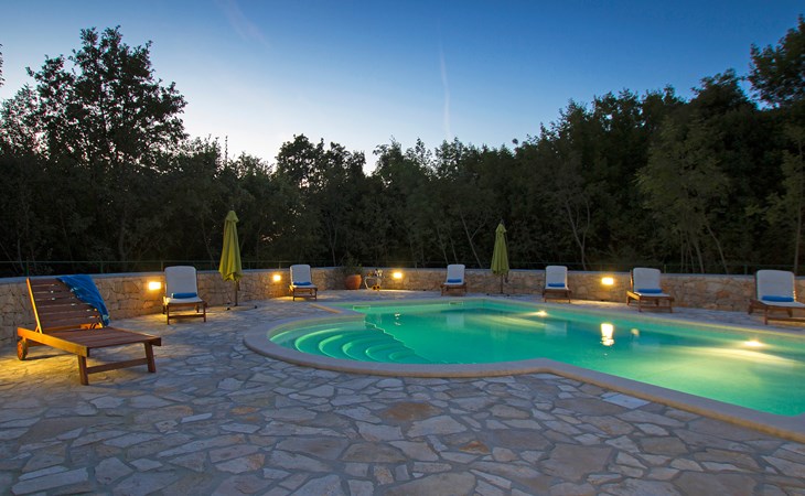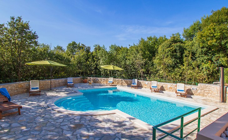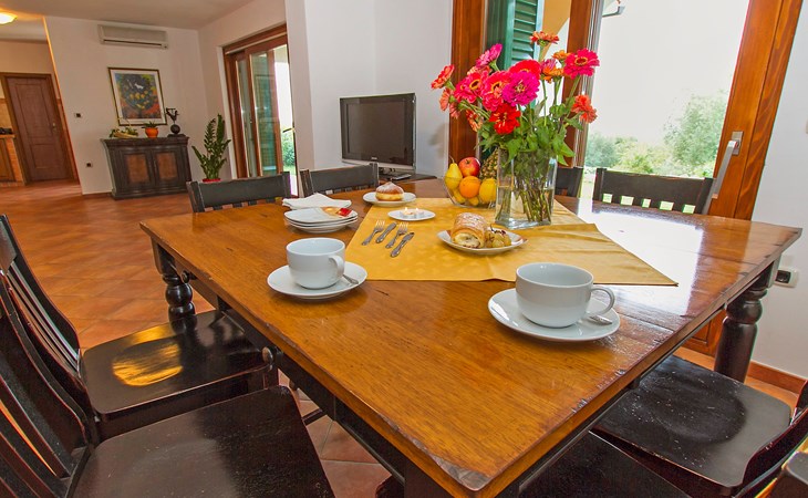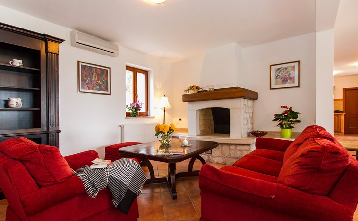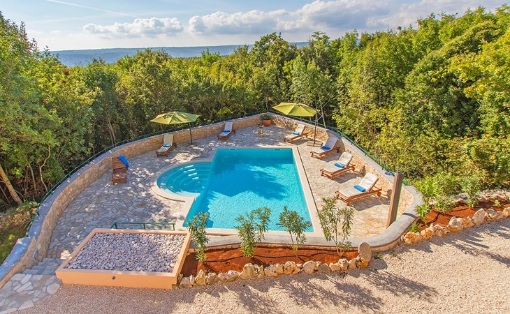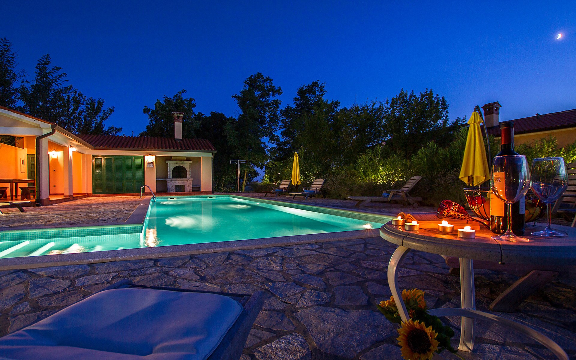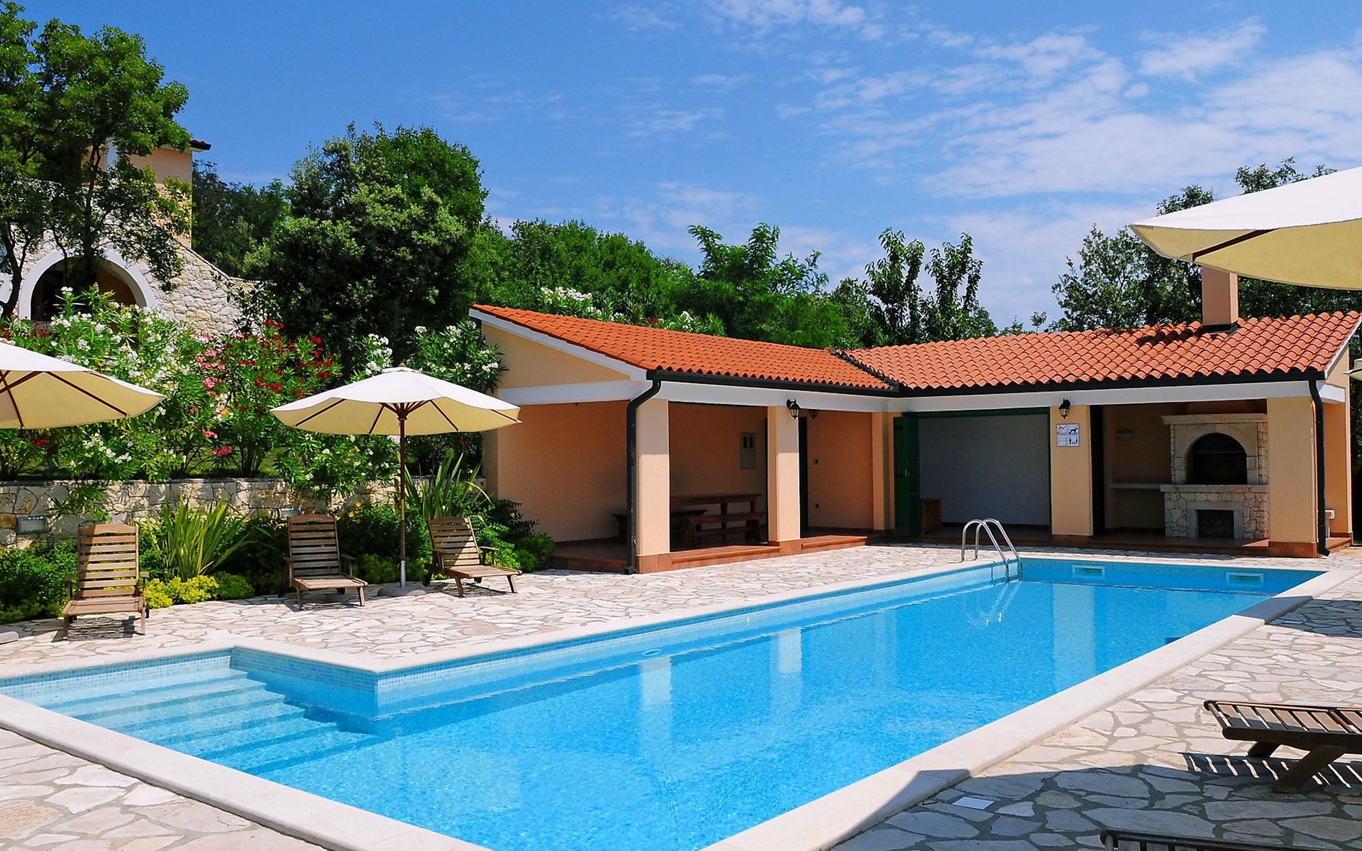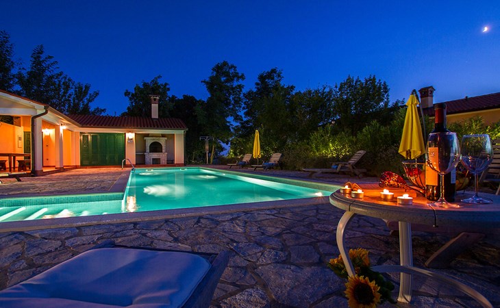 Sveti Lovreč Labinski 20 km van Rabac: Mooi, comfortabele villa "Marina", van 2 verdiepingen. In het gehucht Vlakovo, 15 km van het centrum van Labin, rustige, zonnige, verhoogde ligging, 4 km van zee, 4 km van het strand, te midden van groen. Voor medegebruik: terrein (omheind), openluchtzwembad hoekig (13 x 4 m, 140 cm diepte, seizoensgebonden beschikbaarheid: 06.Mei. - 16.Sep.) met trap. Buitendouche, poolhouse, tuinmeubelen, barbecue. Voor alleengebruik: tuin 600 m2 met gazon en bomen. In het huis: centrale verwarming, air-conditioning. Toegangsweg (100 m onverharde weg, rolstoelhelling). Parkeerplaats bij het huis op het terrein. Winkel 4 km, restaurant 4 km, bushalte 14.7 km, kiezelstrand 4 km, rotsstrand 4 km. Voor medegebruik: 2 zwembaden (13 x 4 m, 8.5 x 4.5 m).