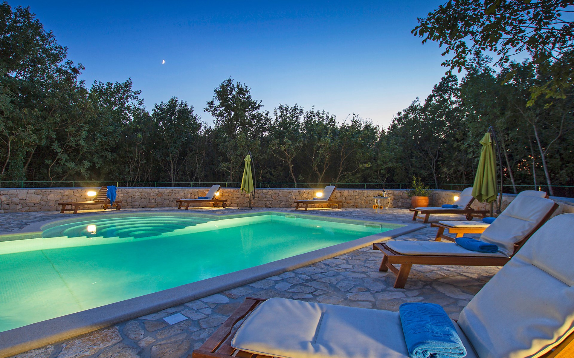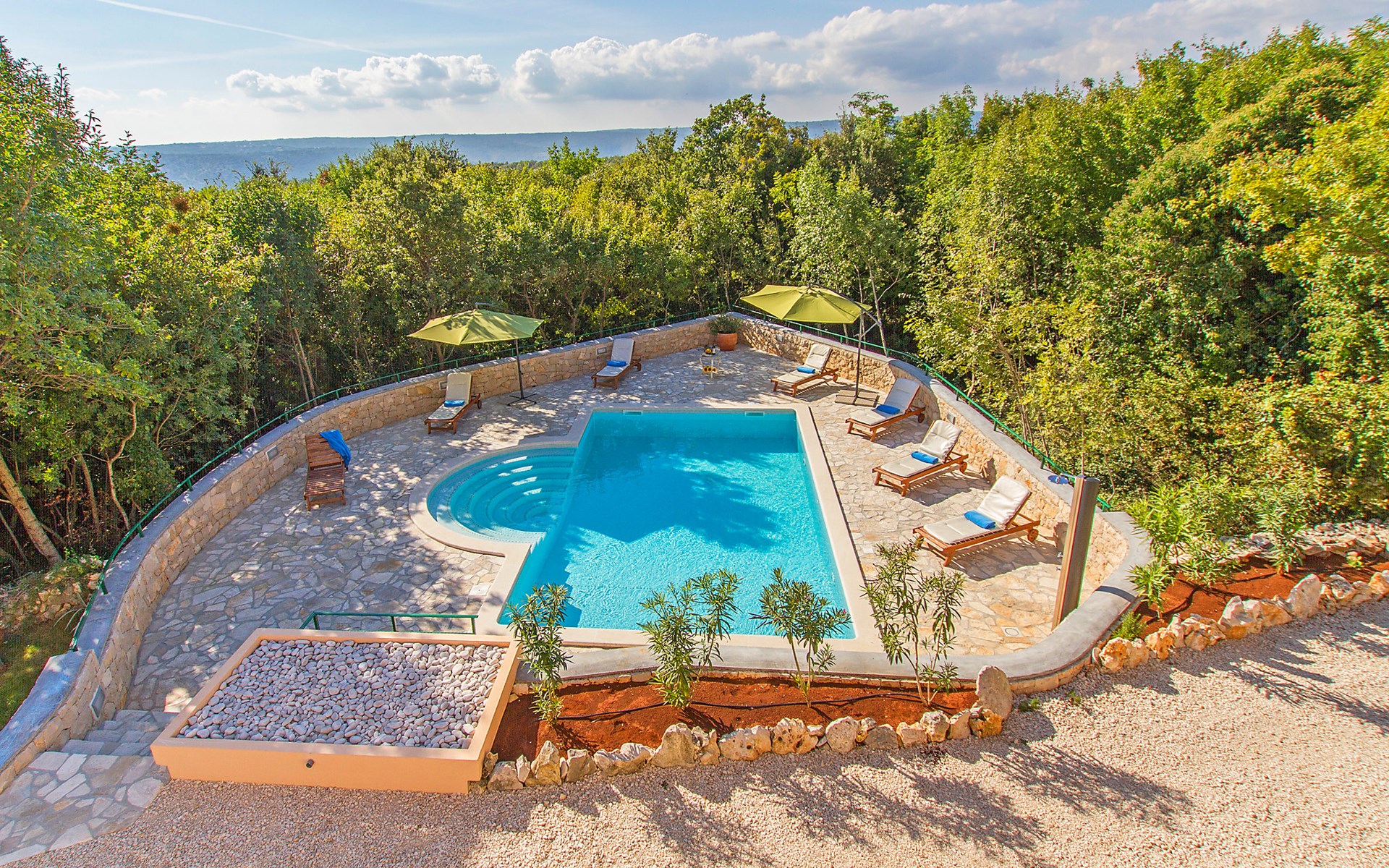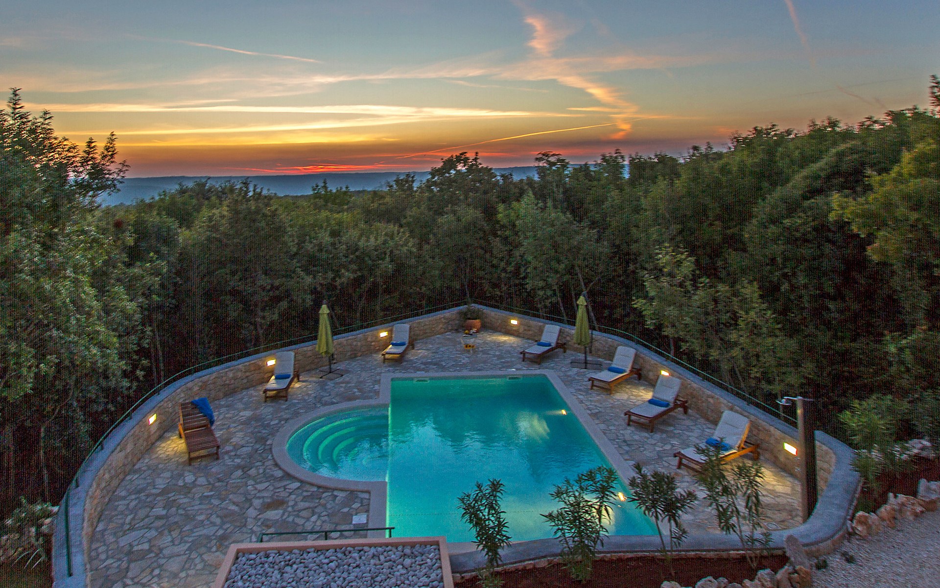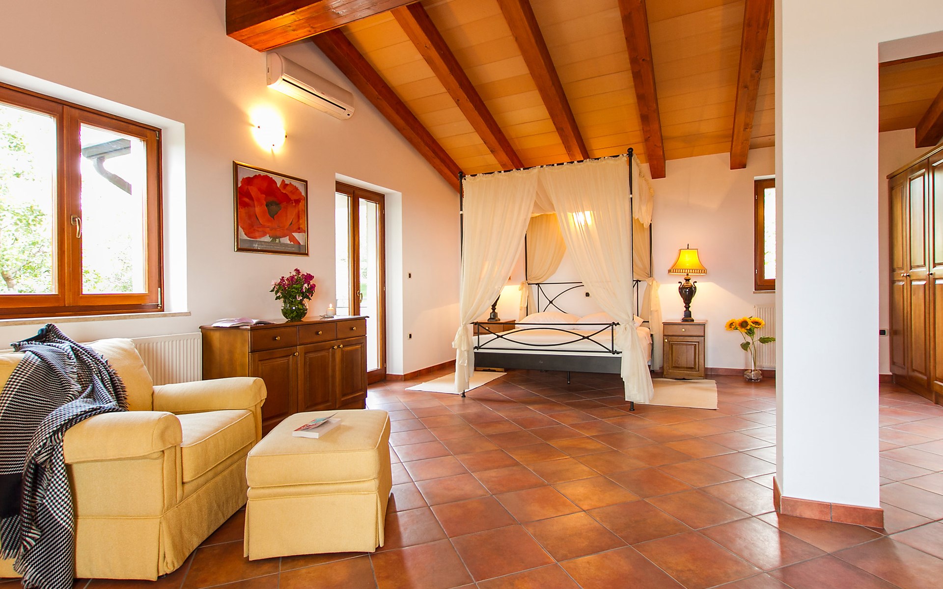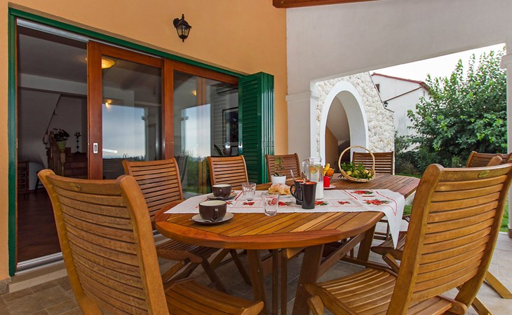 Sveti Lovreč Labinski 20 km van Rabac: Mooi, comfortabele villa "Marina", van 2 verdiepingen. In het gehucht Vlakovo, 15 km van het centrum van Labin, rustige, zonnige, verhoogde ligging, 4 km van zee, 4 km van het strand, te midden van groen. Voor medegebruik: terrein (omheind), openluchtzwembad hoekig (13 x 4 m, 140 cm diepte, seizoensgebonden beschikbaarheid: 06.Mei. - 16.Sep.) met trap. Buitendouche, poolhouse, tuinmeubelen, barbecue. Voor alleengebruik: tuin 600 m2 met gazon en bomen. In het huis: centrale verwarming, air-conditioning. Toegangsweg (100 m onverharde weg, rolstoelhelling). Parkeerplaats bij het huis op het terrein. Winkel 4 km, restaurant 4 km, bushalte 14.7 km, kiezelstrand 4 km, rotsstrand 4 km. Voor medegebruik: 2 zwembaden (13 x 4 m, 8.5 x 4.5 m).