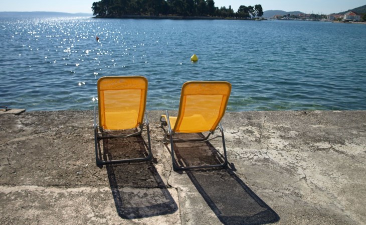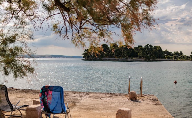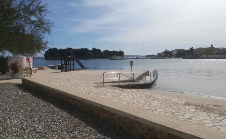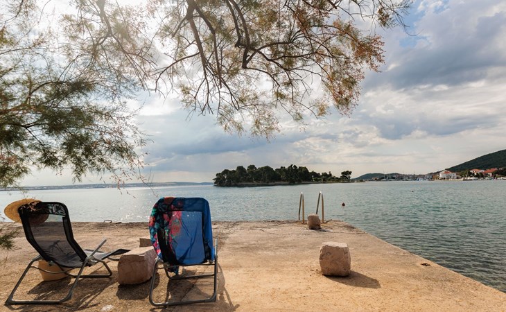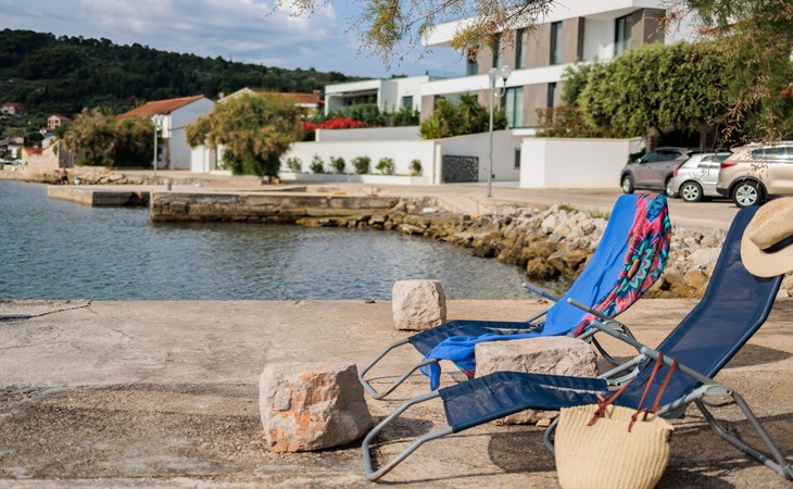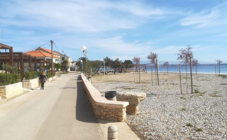 Concrete beach is in front of apartment. Sandy beach with bar, restaurant and beach volley is 60 meters far. The town centre with its restaurants and supermarkets is approximately 400 metres away.