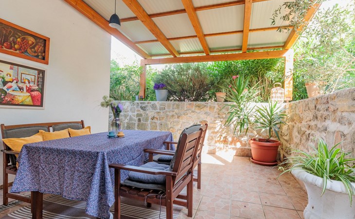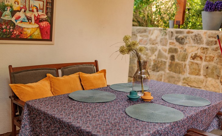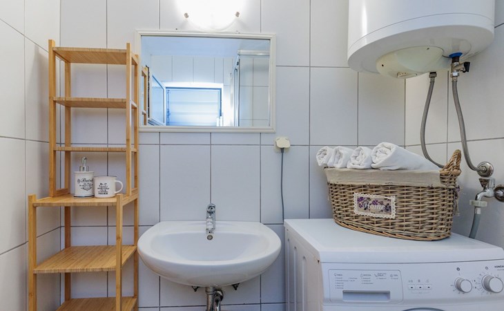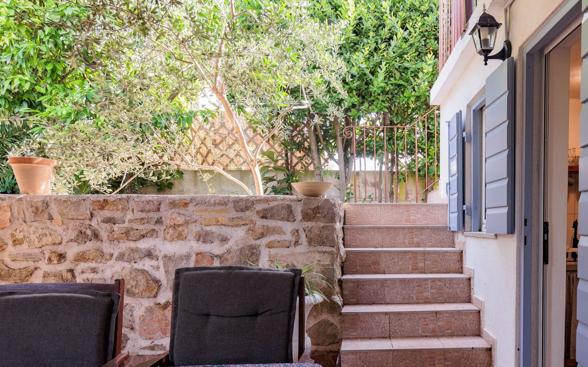 There is spacious outdoor terrace with dining table and pergola, garden with a outdoor shower and a grill. A large balcony attached to bedroom with garden view and partly sea view. 250 square meters large green garden with a outdoor shower planted with a Mediterranean herbs, lavender, oleander, rosemary, laurel, tangerine and olive trees is a great spot to hide during a hot summer afternoons. Pet is welcome to the area too.