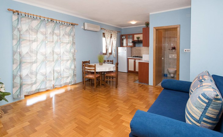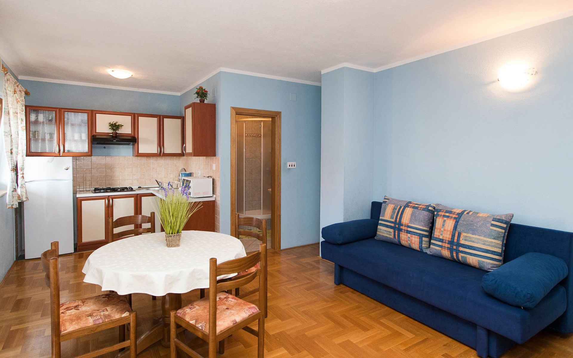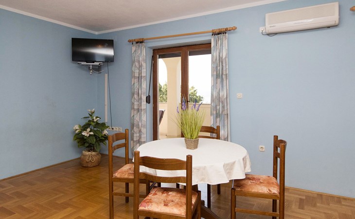 Flatgebouw "Nikol". 1.7 km van het centrum van Crikvenica, 3 km van het centrum van Selce, 10 km van het centrum van Novi Vinodolski, 1 km van zee, 1 km van het strand. Voor medegebruik: terrein 400 m2. Patio, barbecue. In het huis: internetaansluiting. Parkeerplaats op het terrein. Winkel 1 km, restaurant 1.7 km, bushalte 2.6 km, kiezelstrand 1 km. Jachthaven 2 km. Vliegveld 21 km van het huis.