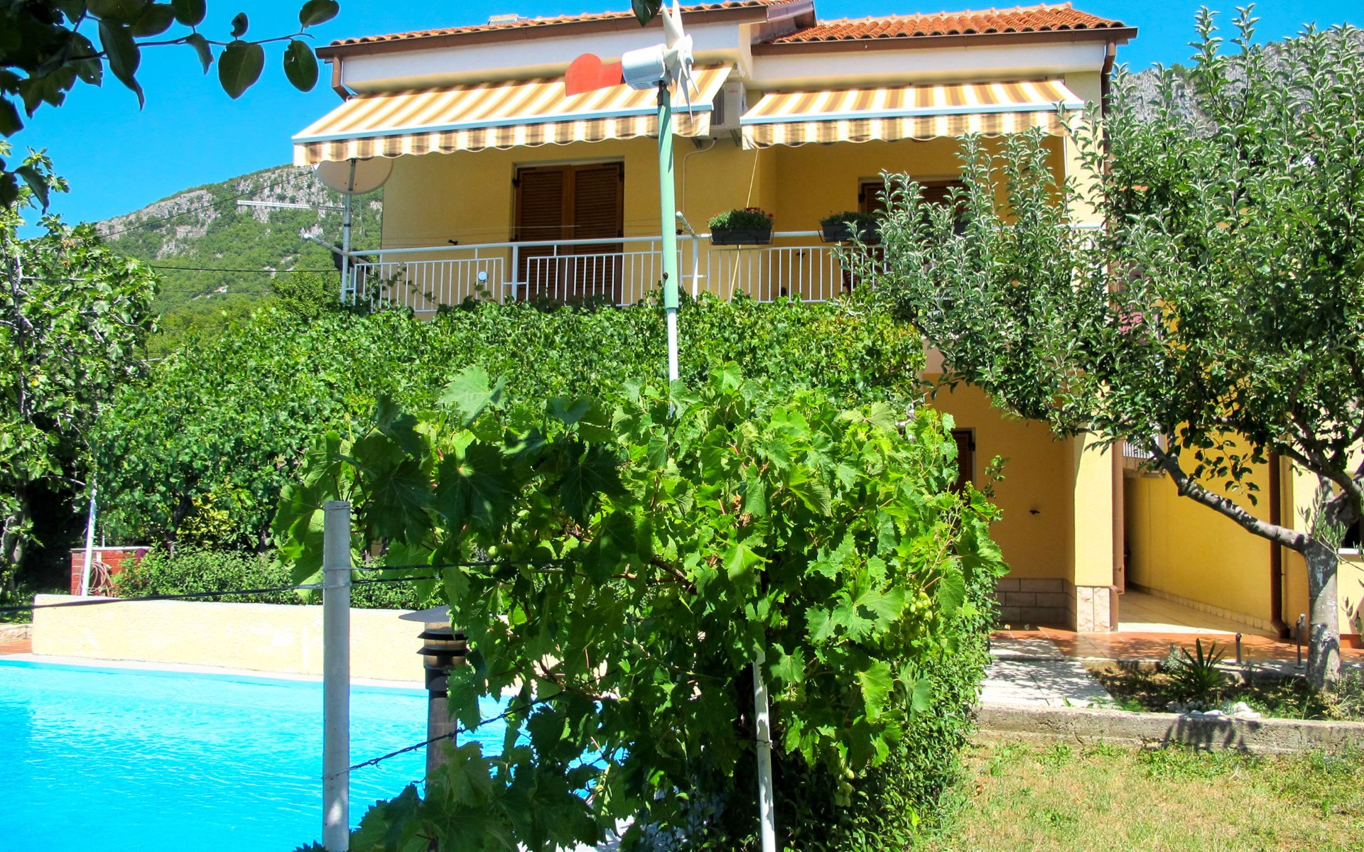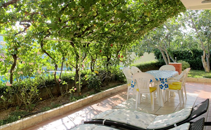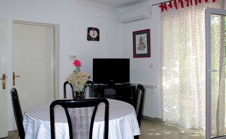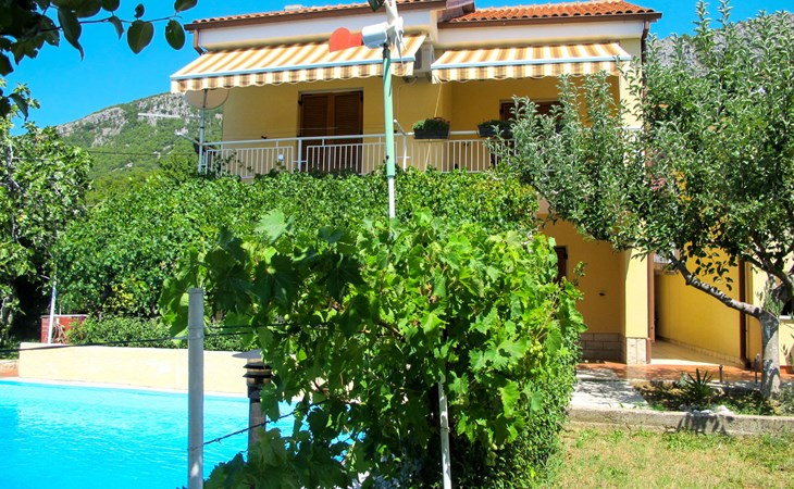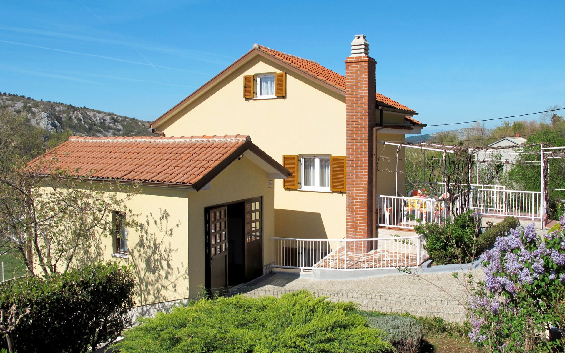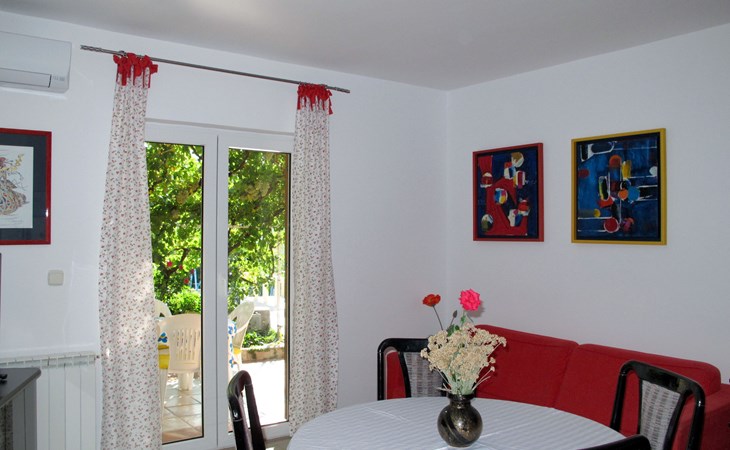 Huis met 2 woningen "Stella". In het gehucht Kricina, 8 km van het centrum van Crikvenica, 8 km van het centrum van Novi Vinodolski, tegen een helling, 9 km van zee. Voor medegebruik: terrein 900 m2 (omheind) met planten. Voor alleengebruik: openluchtzwembad (5 x 4 m, 22 m2, 160 cm diepte, seizoensgebonden beschikbaarheid: 15.Mrt. - 15.Nov.). Terras, tuinmeubelen, barbecue (schommel), onderhoud zwembad door de eigenaar/tuinman. In het huis: internetaansluiting. Overdekte parkeerplaats op het terrein. Winkel 2 km, restaurant 8 km, bushalte 290 m, kiezelstrand 9 km. Vliegveld 30 km van het huis.
