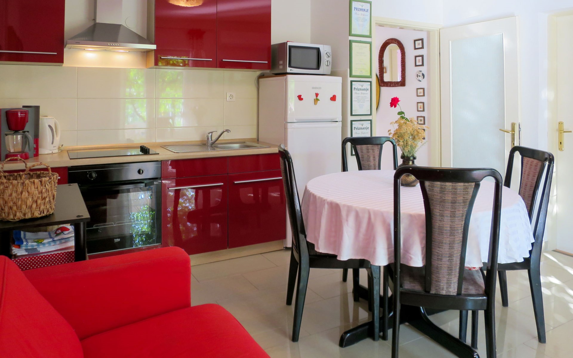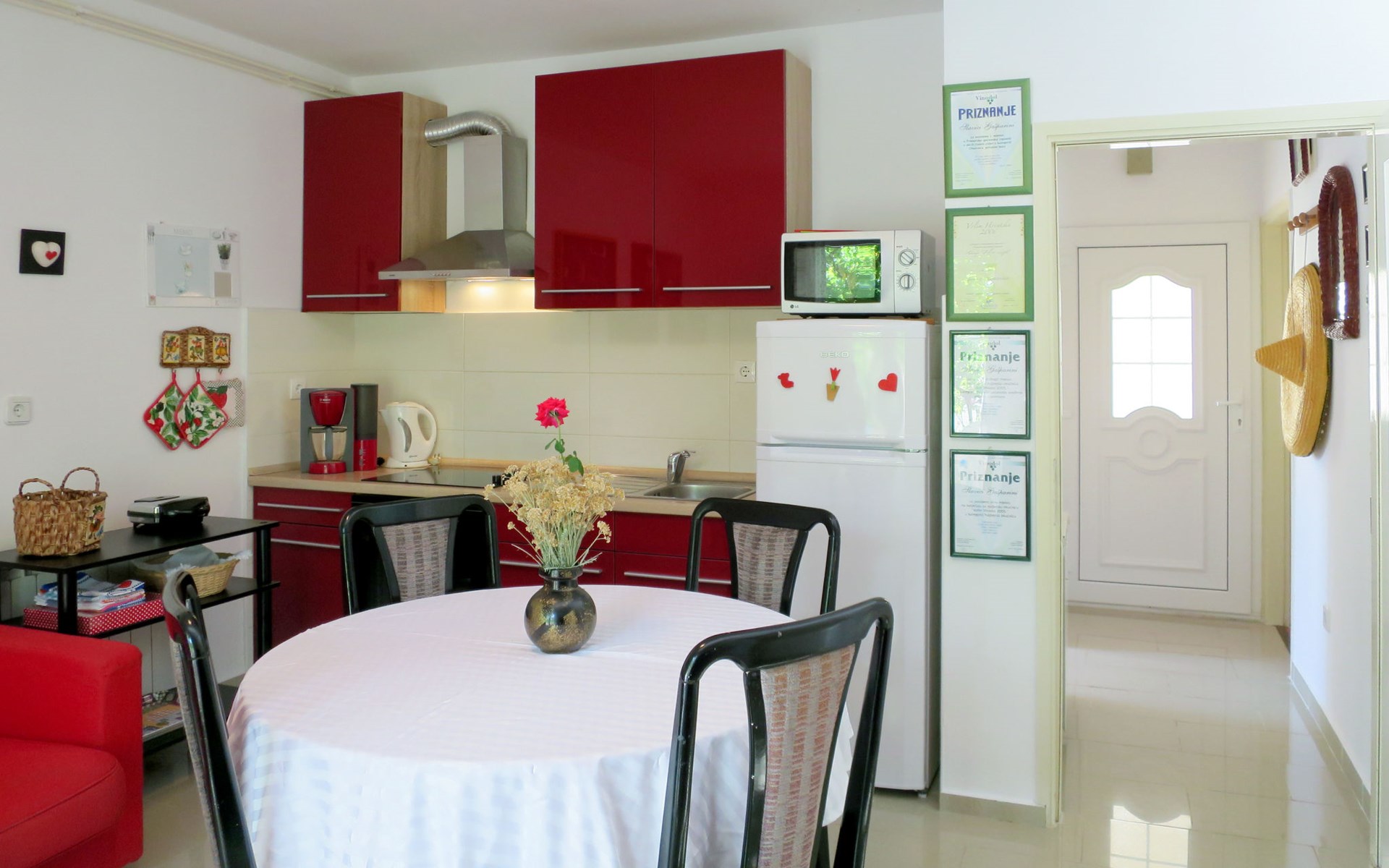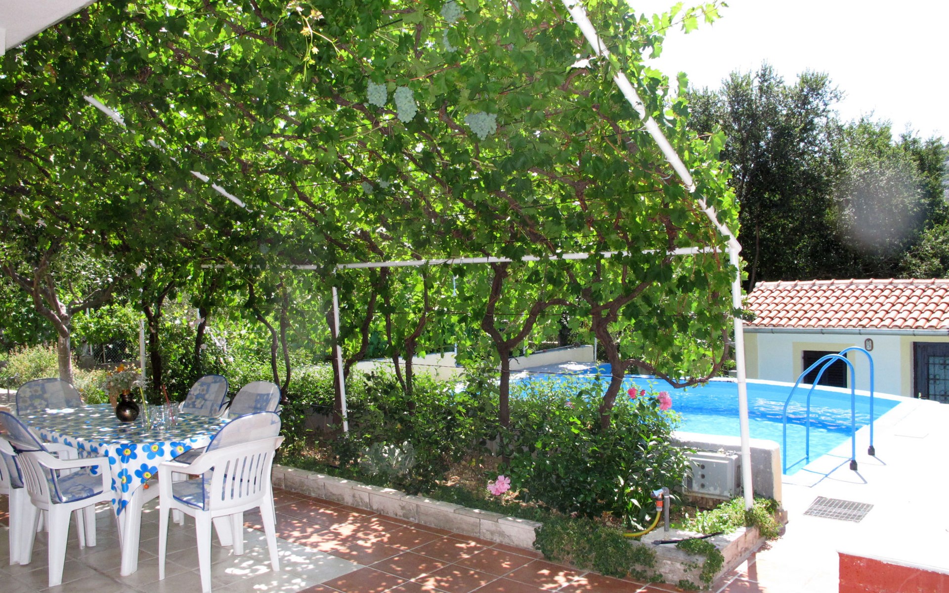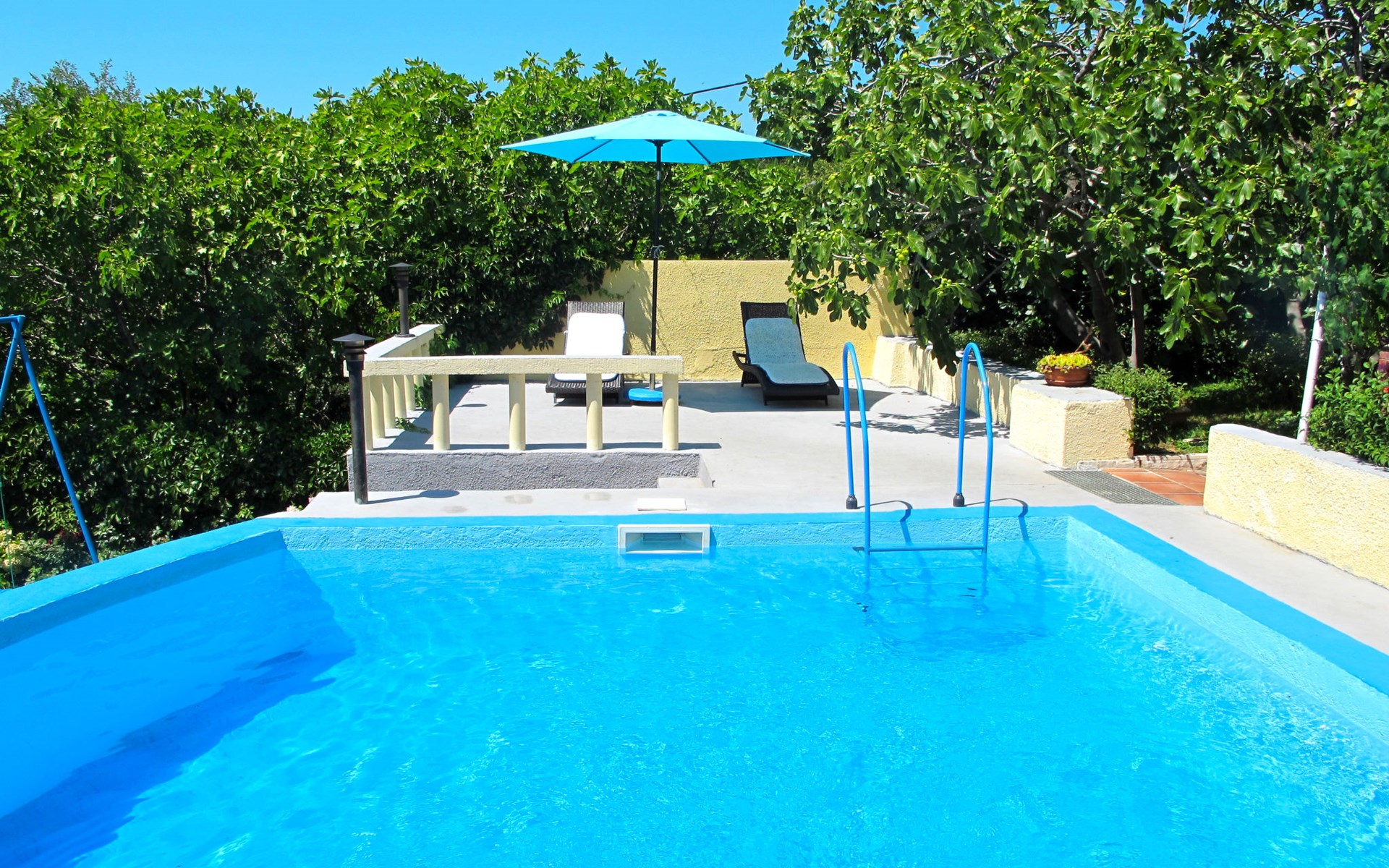 Huis met 2 woningen "Stella". In het gehucht Kricina, 8 km van het centrum van Crikvenica, 8 km van het centrum van Novi Vinodolski, tegen een helling, 9 km van zee. Voor medegebruik: terrein 900 m2 (omheind) met planten. Voor alleengebruik: openluchtzwembad (5 x 4 m, 22 m2, 160 cm diepte, seizoensgebonden beschikbaarheid: 15.Mrt. - 15.Nov.). Terras, tuinmeubelen, barbecue (schommel), onderhoud zwembad door de eigenaar/tuinman. In het huis: internetaansluiting. Overdekte parkeerplaats op het terrein. Winkel 2 km, restaurant 8 km, bushalte 290 m, kiezelstrand 9 km. Vliegveld 30 km van het huis.