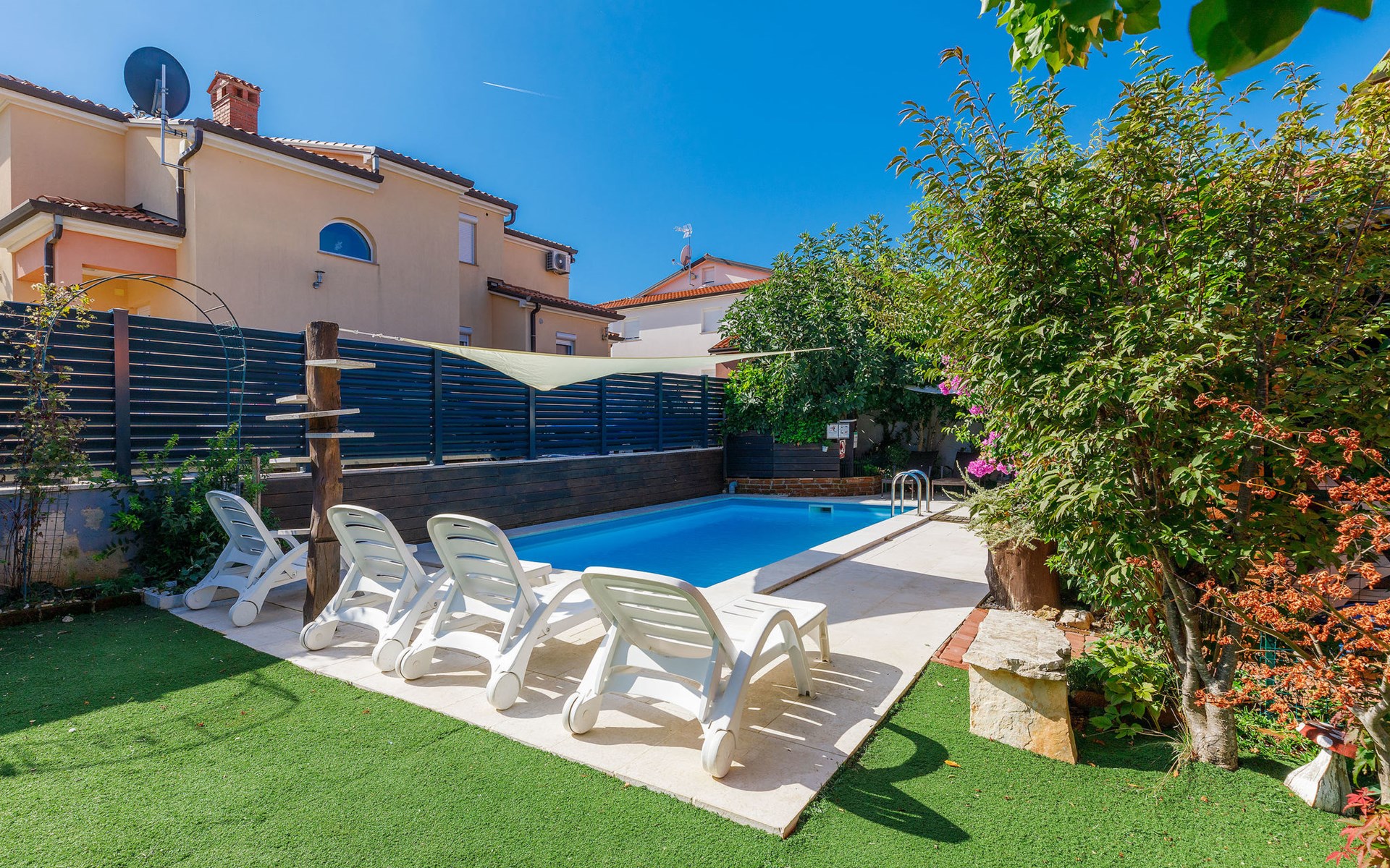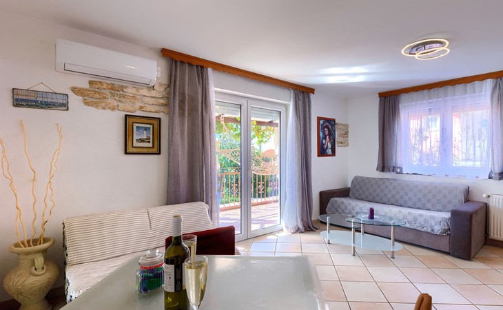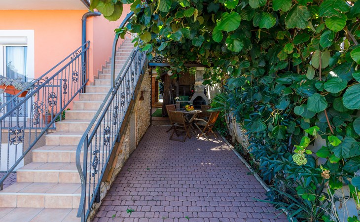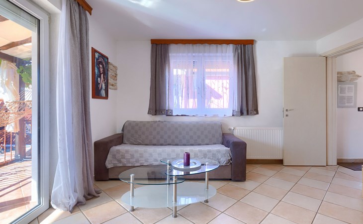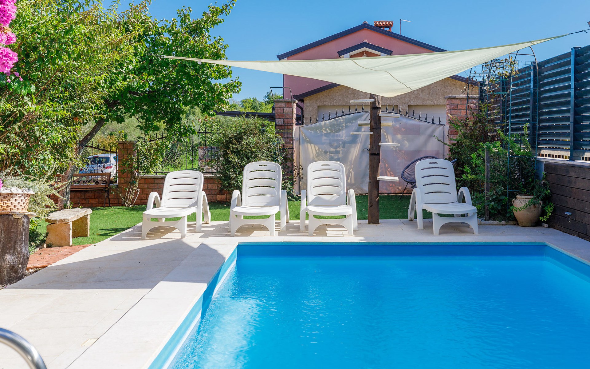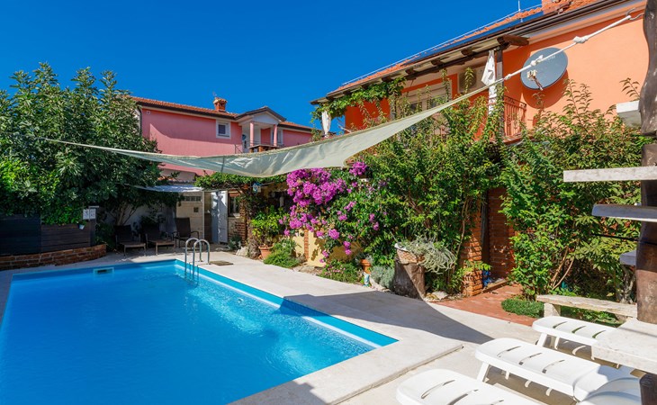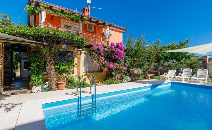 Murine: Mooi Huis met 3 woningen "Fontana". In het gehucht Fratrici, 1 km van het centrum van Murine, 3 km van het centrum van Umag, rustige ligging, gebied met weinig verkeer, 2.5 km van zee, 2.5 km van het strand. Voor medegebruik: terrein 500 m2 (omheind) met gazon, openluchtzwembad hoekig (24 m2, 140 cm diepte, seizoensgebonden beschikbaarheid: 23.Mei. - 28.Sep.). Buitendouche, terras (10 m2), barbecue (schommel). In het huis: internetaansluiting. Parkeerplaats bij het huis op het terrein. Winkel 2 km, supermarkt 3 km, restaurant 1 km, bushalte 5 km, treinstation 33 km, zandstrand 2.5 km. Golfterrein (18 holes) 5.5 km, tennis 2.5 km, sportcentrum 2.5 km.