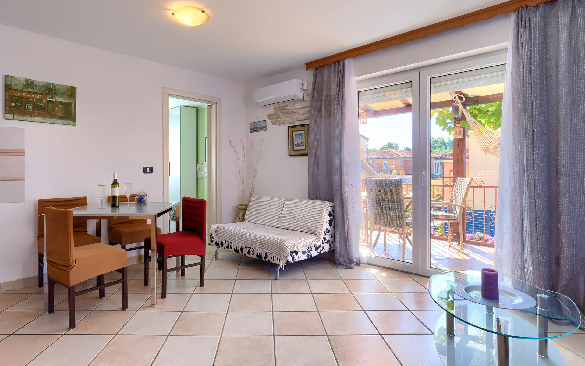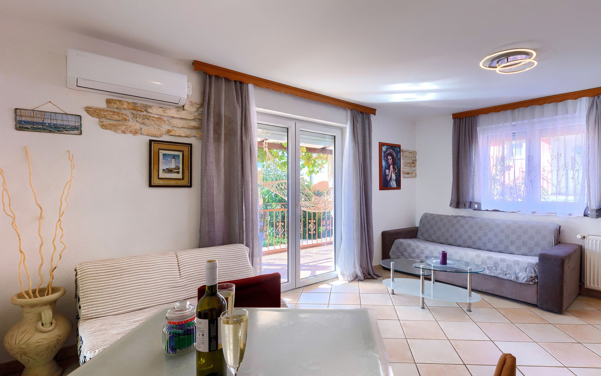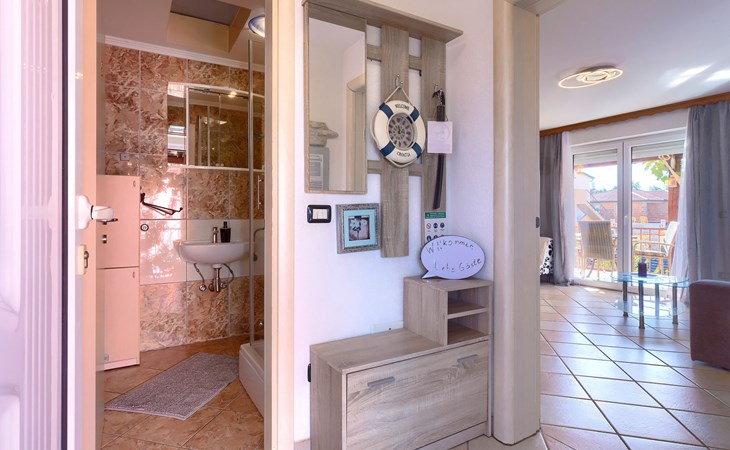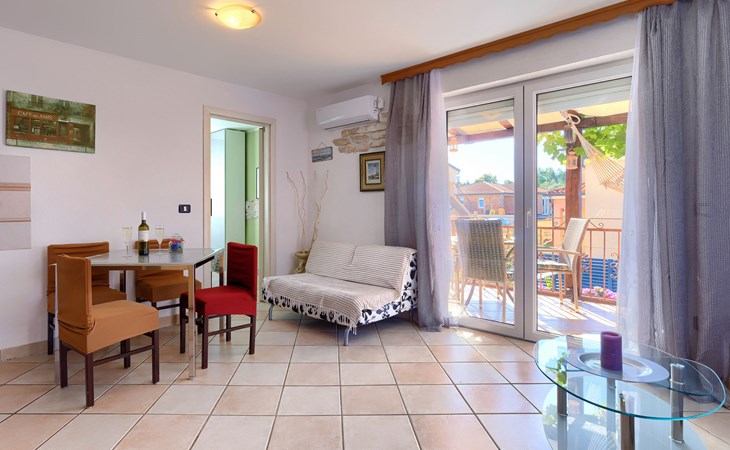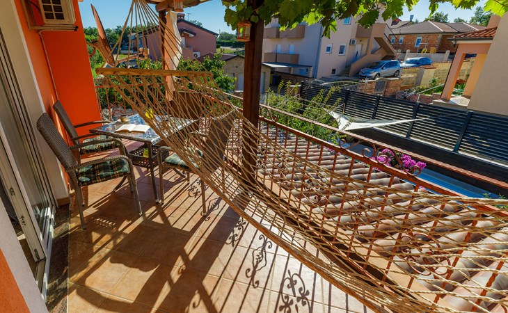 Murine: Mooi Huis met 3 woningen "Fontana". In het gehucht Fratrici, 1 km van het centrum van Murine, 3 km van het centrum van Umag, rustige ligging, gebied met weinig verkeer, 2.5 km van zee, 2.5 km van het strand. Voor medegebruik: terrein 500 m2 (omheind) met gazon, openluchtzwembad hoekig (24 m2, 140 cm diepte, seizoensgebonden beschikbaarheid: 23.Mei. - 28.Sep.). Buitendouche, terras (10 m2), barbecue (schommel). In het huis: internetaansluiting. Parkeerplaats bij het huis op het terrein. Winkel 2 km, supermarkt 3 km, restaurant 1 km, bushalte 5 km, treinstation 33 km, zandstrand 2.5 km. Golfterrein (18 holes) 5.5 km, tennis 2.5 km, sportcentrum 2.5 km.