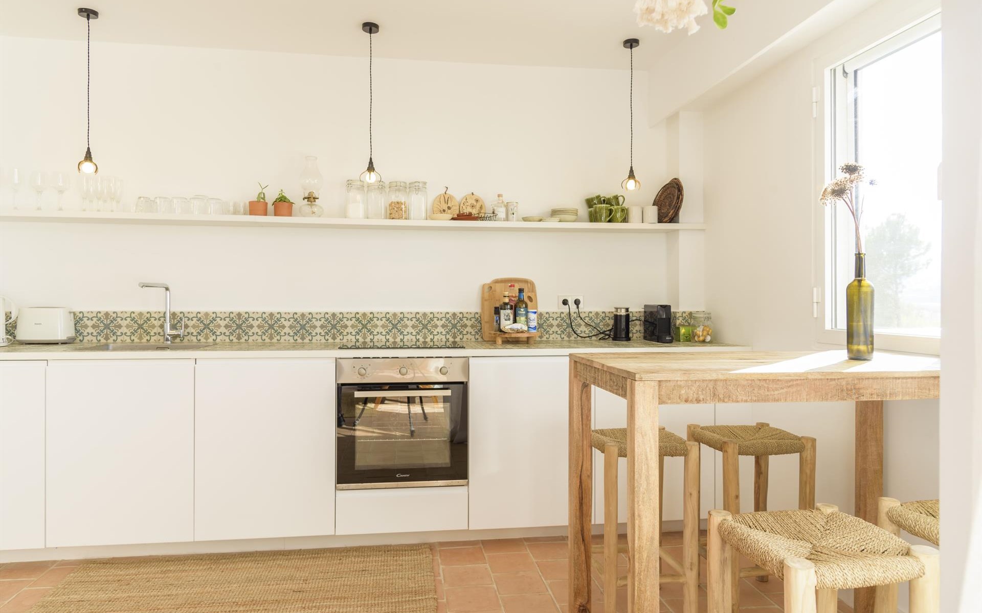 De moderne keuken is volledig uitgerust met onder andere een gasoven, magnetron, broodrooster en vaatwasmachine. De wasmachine bevindt zich niet in de keuken, maar in een aparte bijkeuken, wat zorgt voor extra rust en ruimte in het leefgedeelte.