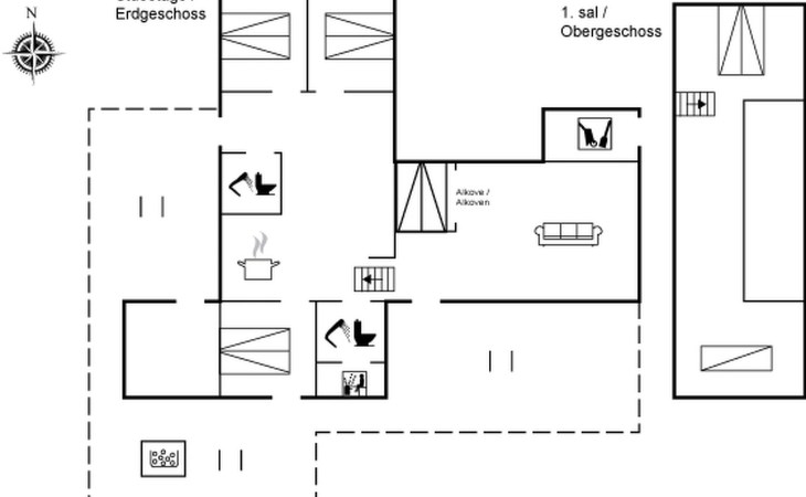 Eengezinswoning, bouwjaar 1999. 10 m van zee. Voor medegebruik: tuin. Voor alleengebruik: wild terrein 1.200 m2, tuin (omheind). Terras (60 m2), barbecue, kinderspeelplaats (schommel). In het huis: sauna, wasmachine, droger. Parkeerplaats bij het huis. Levensmiddelenwinkel 400 m. De eigenaar accepteert geen jeugdgroepen.