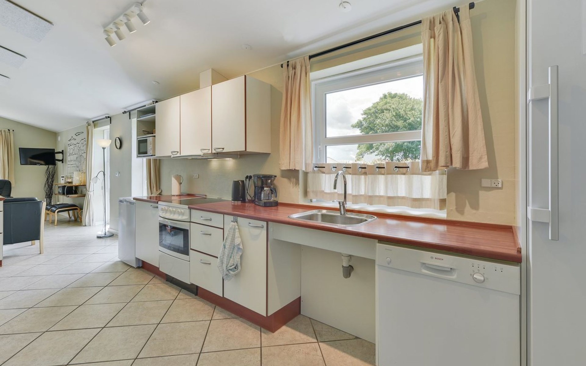 Eengezinswoning, bouwjaar 2004. 25 km van zee. Voor alleengebruik: terrein 1.000 m2, verzorgde tuin. Terras (100 m2), kinderspeelplaats (schommel). In het huis: sauna, wasmachine, droger. Parkeerplaats bij het huis. Levensmiddelenwinkel 1 km. De eigenaar accepteert geen jeugdgroepen.
