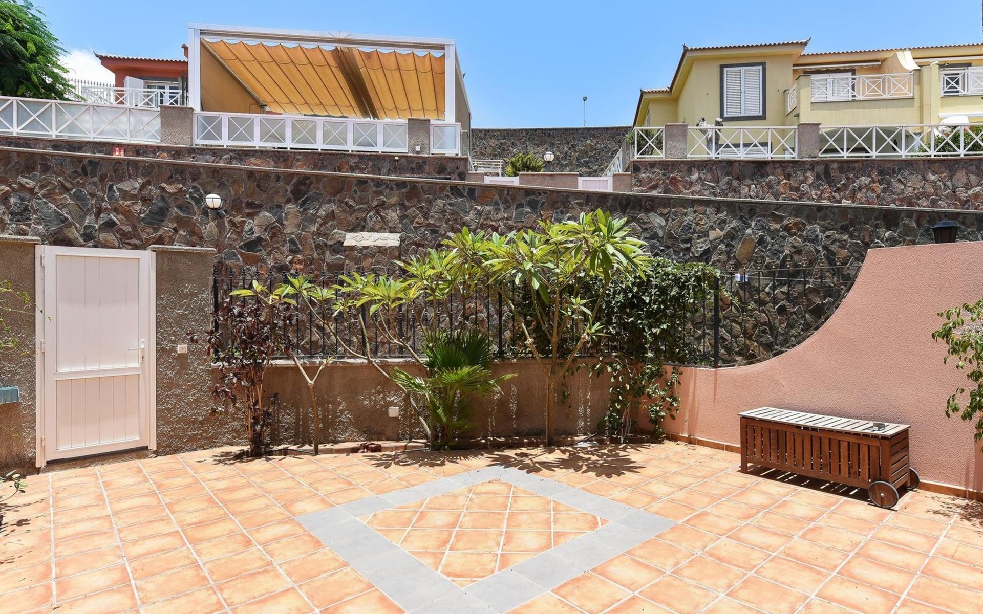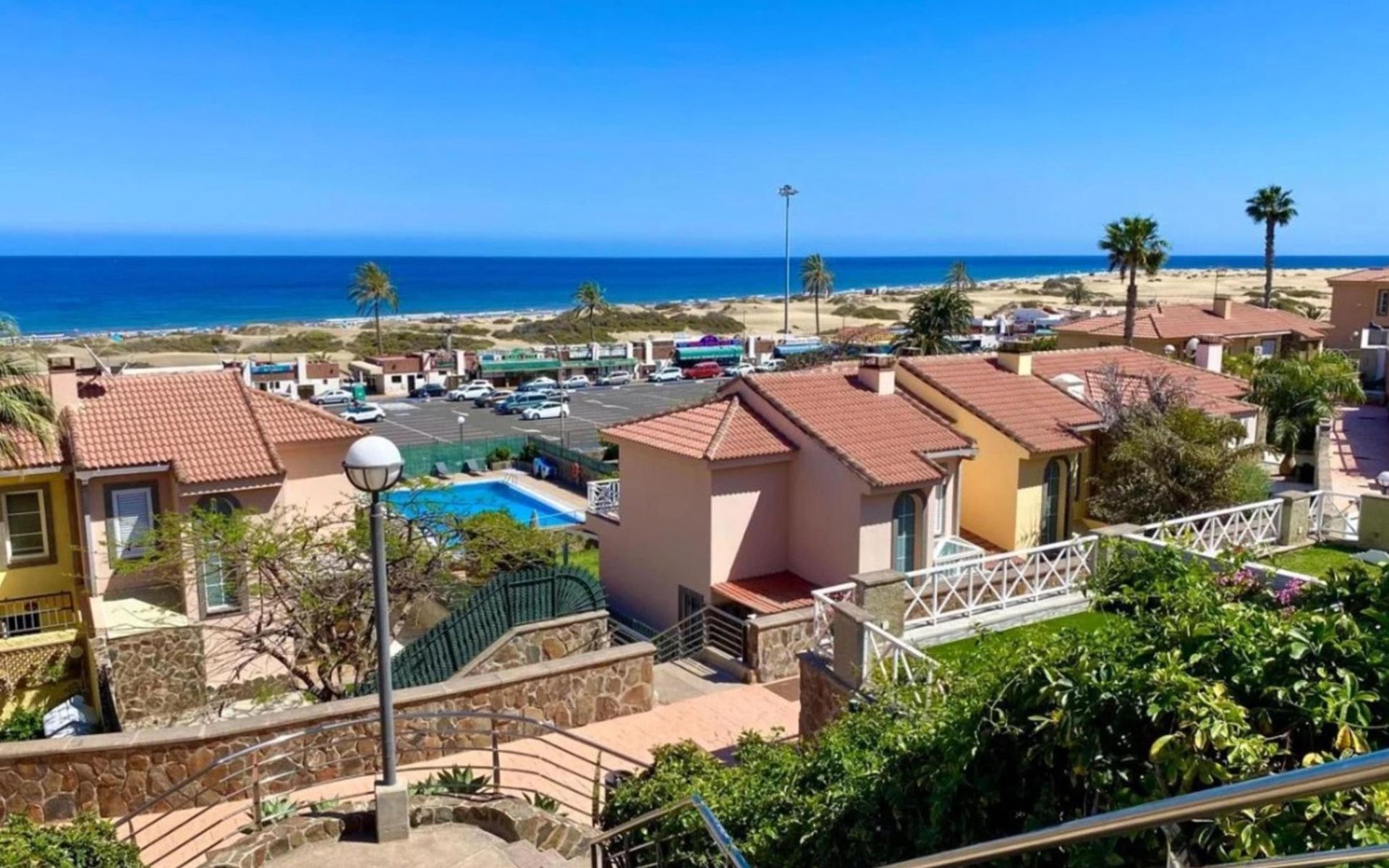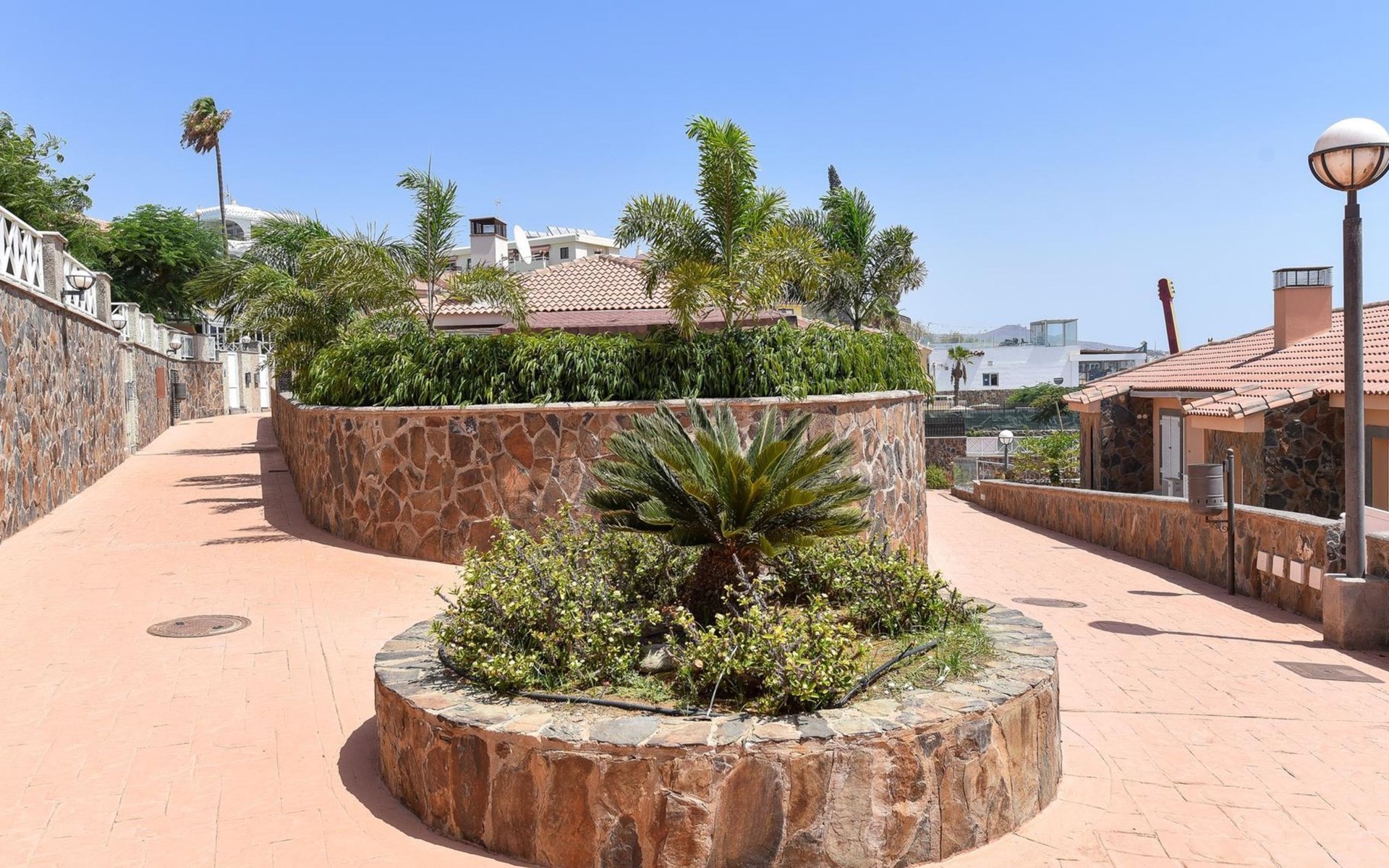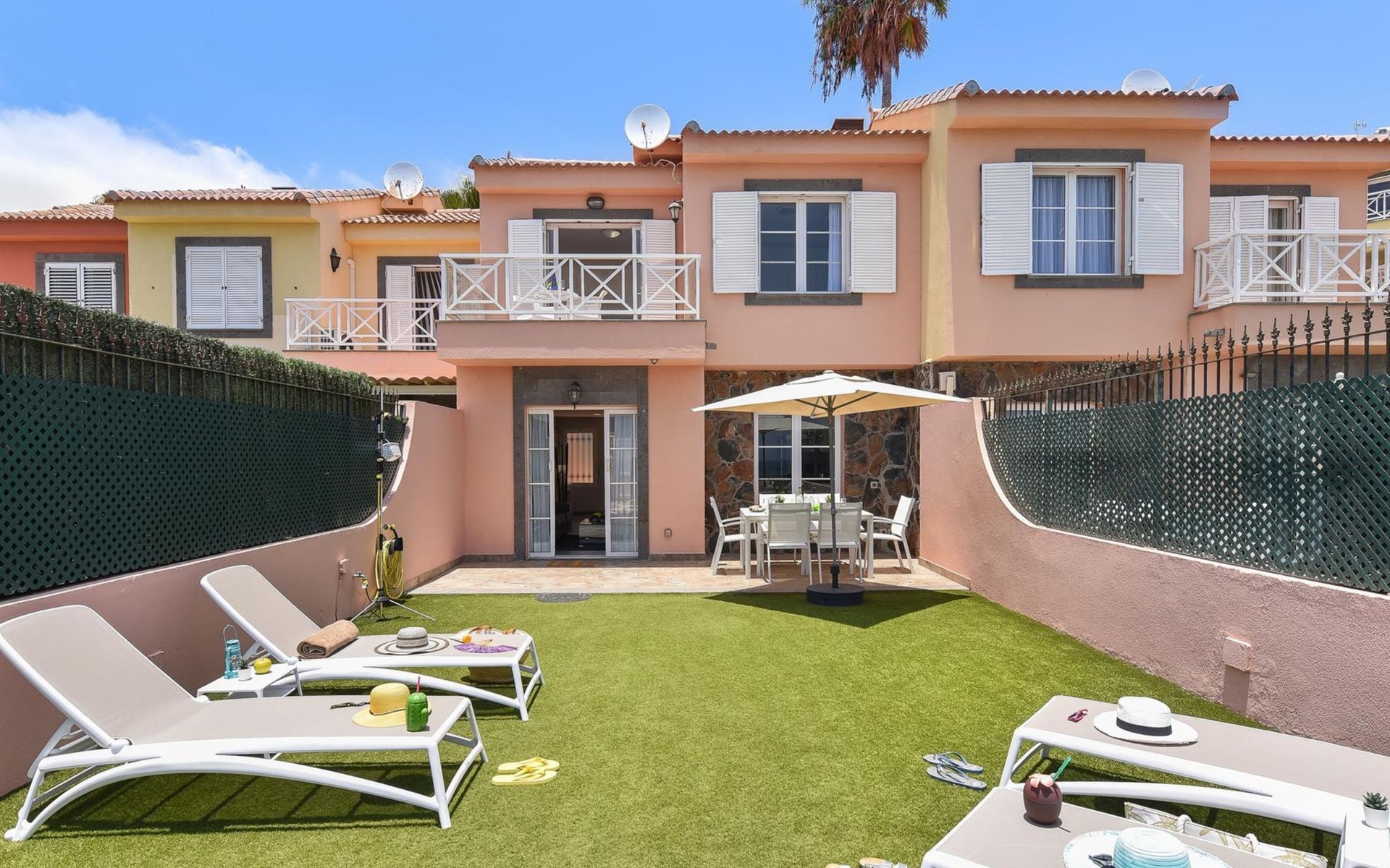 Moderne, comfortabele eengezinswoning "Santa Ana 24". In het centrum van Playa del Inglés, centrale, drukke ligging. Voor medegebruik: openluchtzwembad hoekig (seizoensgebonden beschikbaarheid: 01.Jan. - 31.Dec.). Buitendouche. Voor alleengebruik: tuin (omheind) met gazon. In het huis: air-conditioning. Parkeerplaats op het terrein, openbare parkeerplaatsen in de straat. Winkel, levensmiddelenwinkel, supermarkt 200 m, bushalte "Shopping Center Cita" 600 m. De eigenaar accepteert geen jeugdgroepen. Vliegveld 24 km van het huis. De omgeving is gevoelig voor geluidsoverlast. Gelieve geen lawaai te maken en de rust te bewaren.