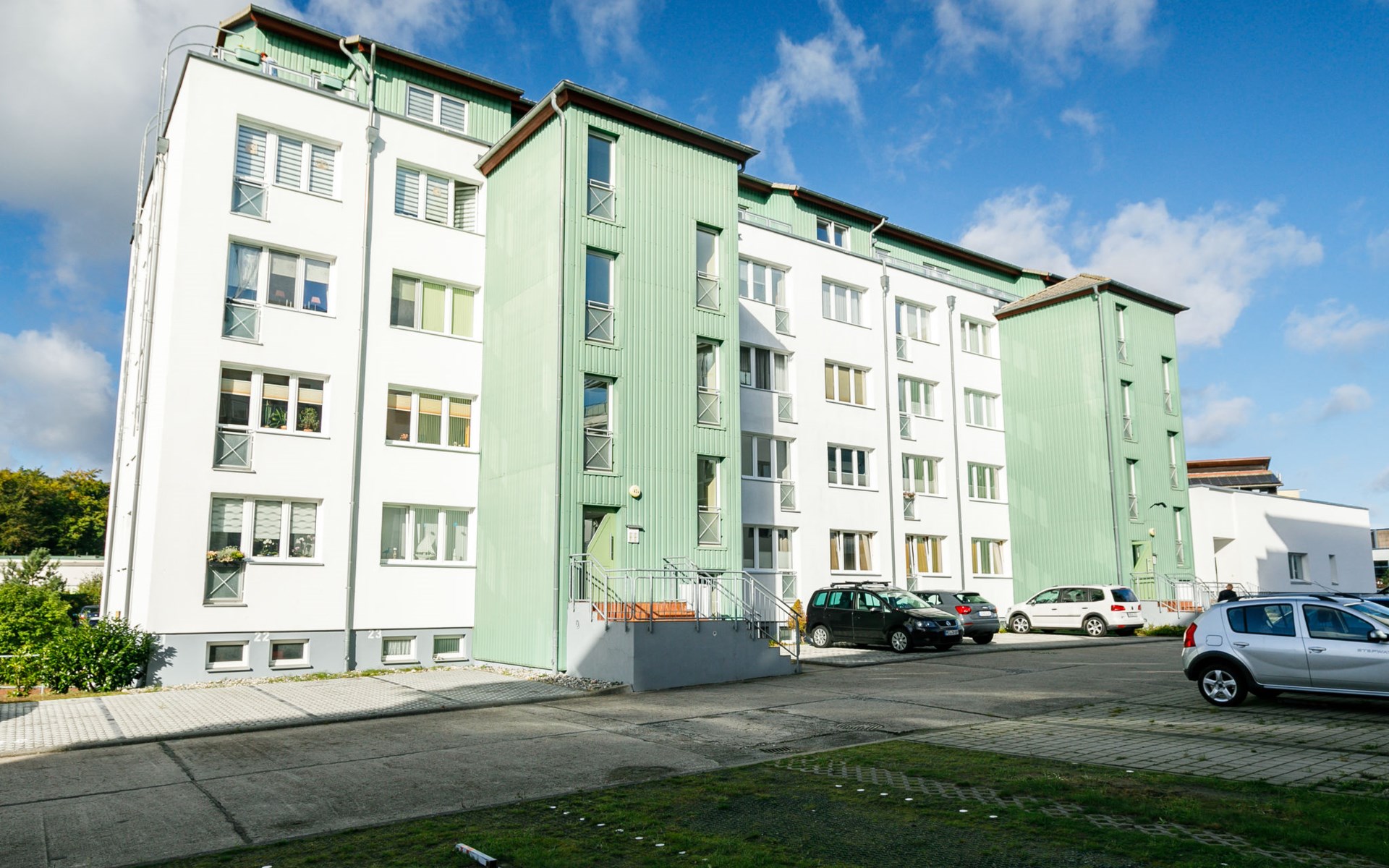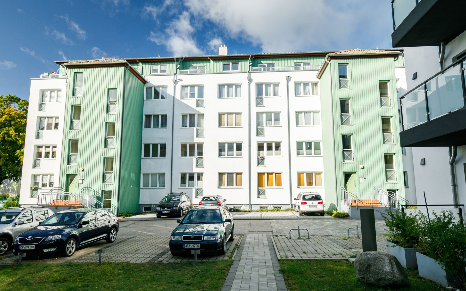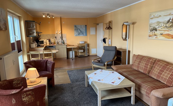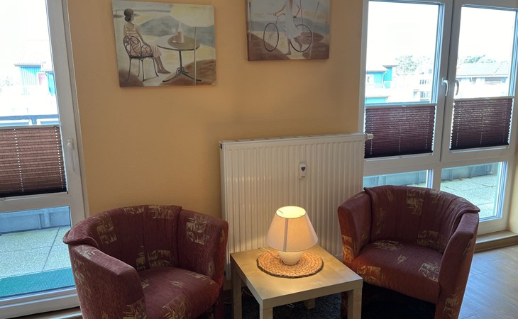Appartementencomplex van 4 verdiepingen. In de plaats, 500 m van het centrum van Zinnowitz, 100 m van zee, 100 m van het strand. In het huis: lift, bergruimte voor fietsen, centrale verwarming. Parkeerplaats bij het huis. Supermarkt 650 m, bakkerij, café 270 m, bushalte 180 m, station 1 km, zandstrand 100 m, thermaalbad "Bernsteintherme" 240 m. Jachthaven 2.6 km, golfterrein (18 holes) 25 km, surfschool, tennis 750 m, midgetgolf 240 m. Lift tot de 3e verdieping.