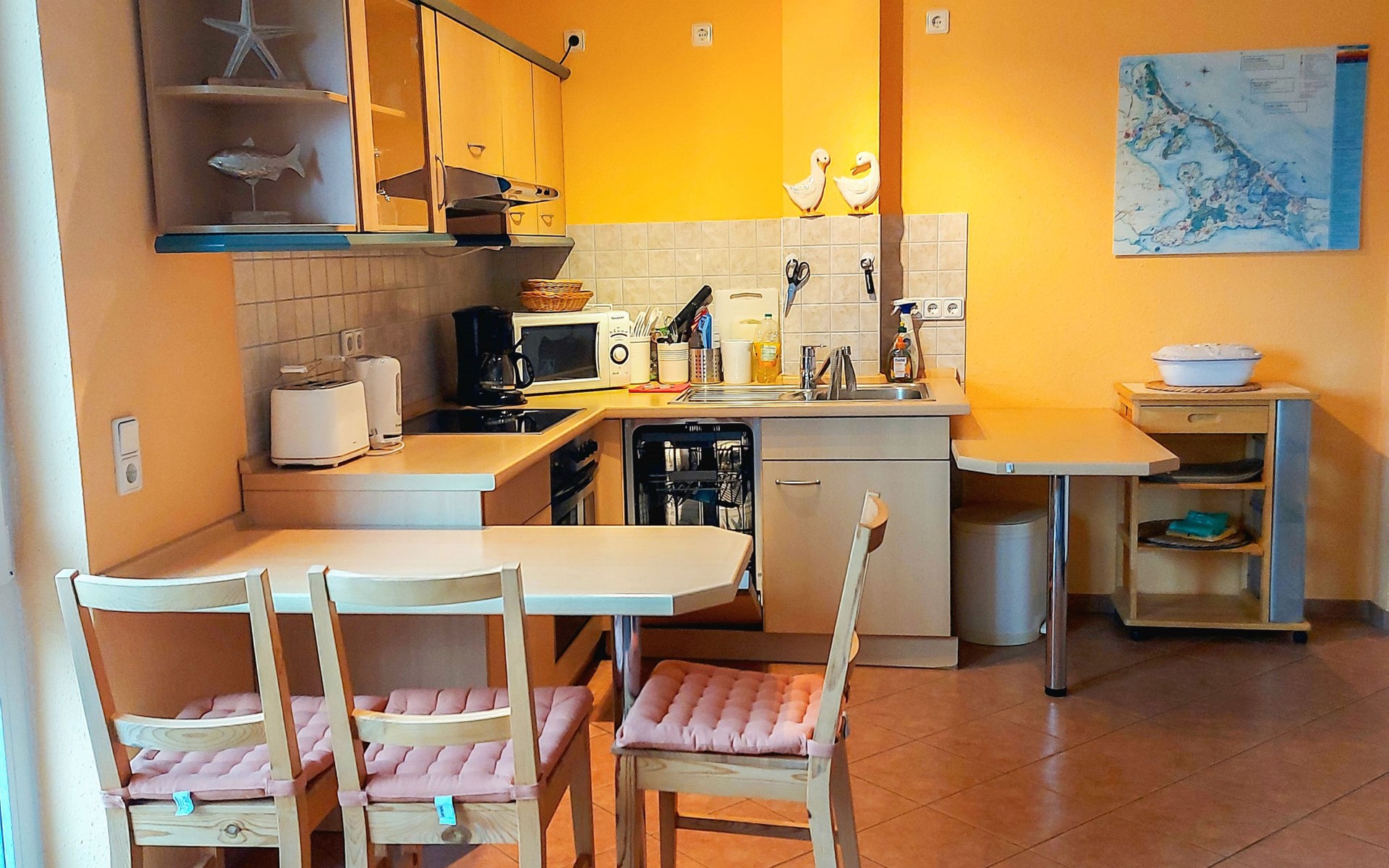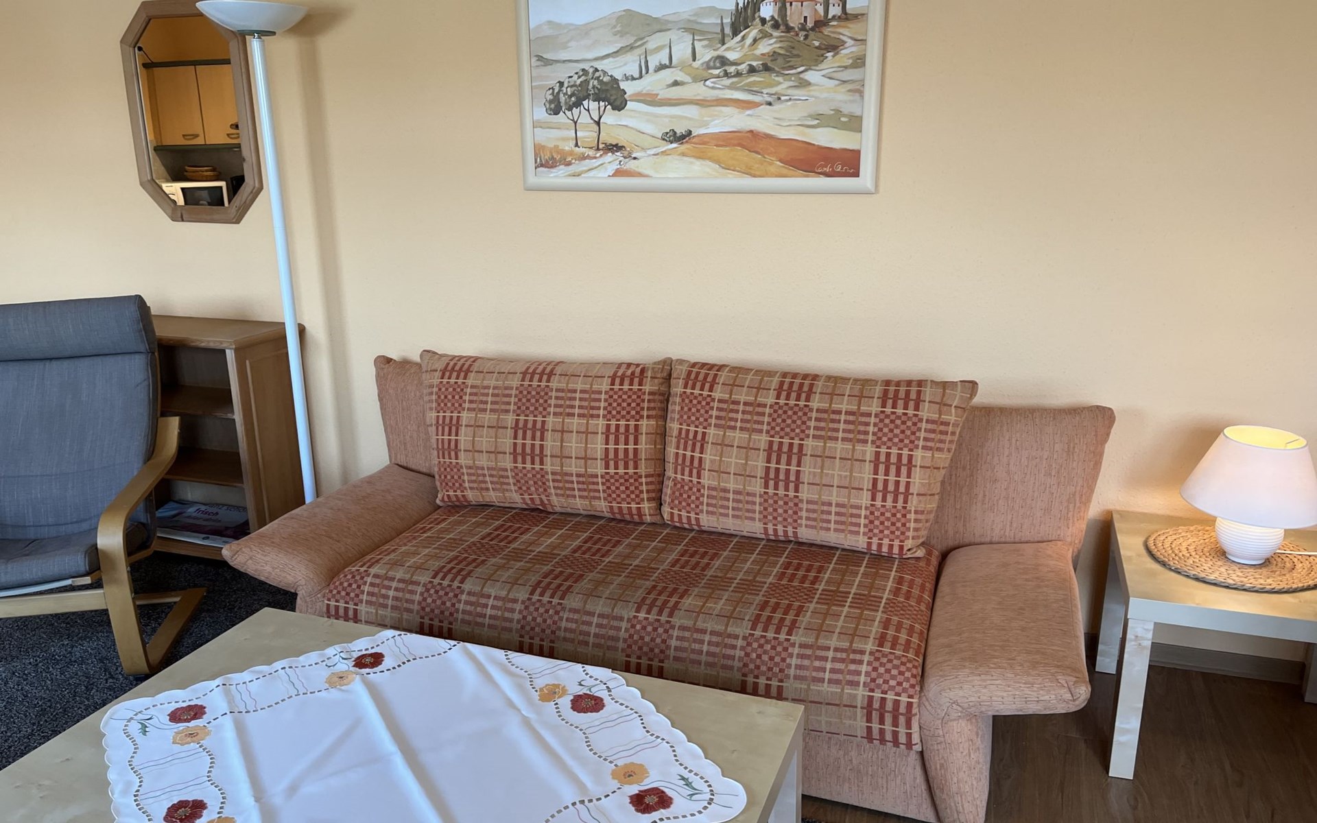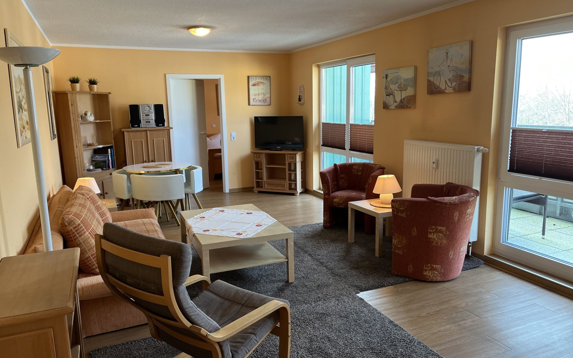 Appartementencomplex van 4 verdiepingen. In de plaats, 500 m van het centrum van Zinnowitz, 100 m van zee, 100 m van het strand. In het huis: lift, bergruimte voor fietsen, centrale verwarming. Parkeerplaats bij het huis. Supermarkt 650 m, bakkerij, café 270 m, bushalte 180 m, station 1 km, zandstrand 100 m, thermaalbad "Bernsteintherme" 240 m. Jachthaven 2.6 km, golfterrein (18 holes) 25 km, surfschool, tennis 750 m, midgetgolf 240 m. Lift tot de 3e verdieping.