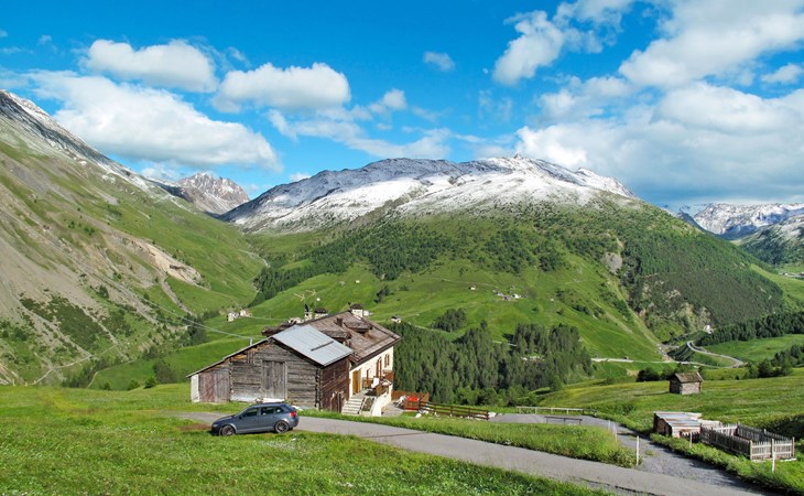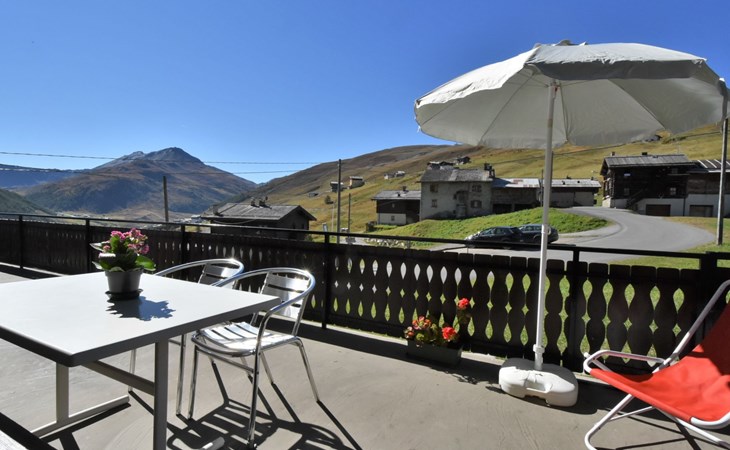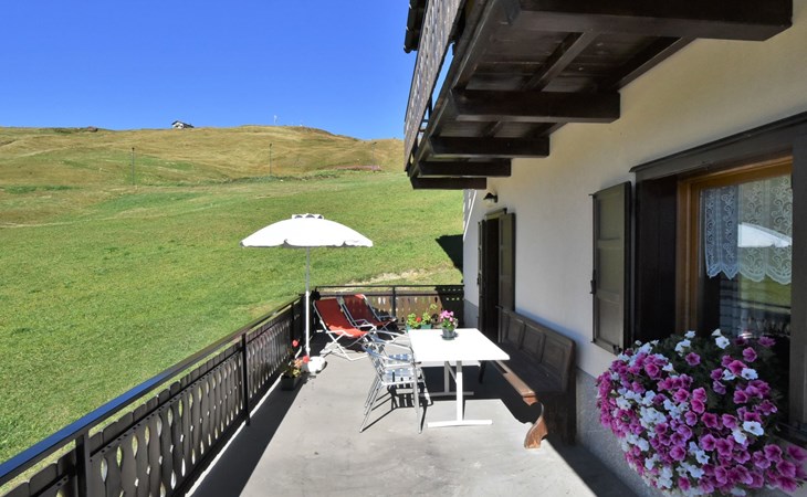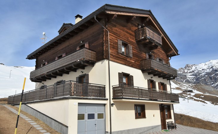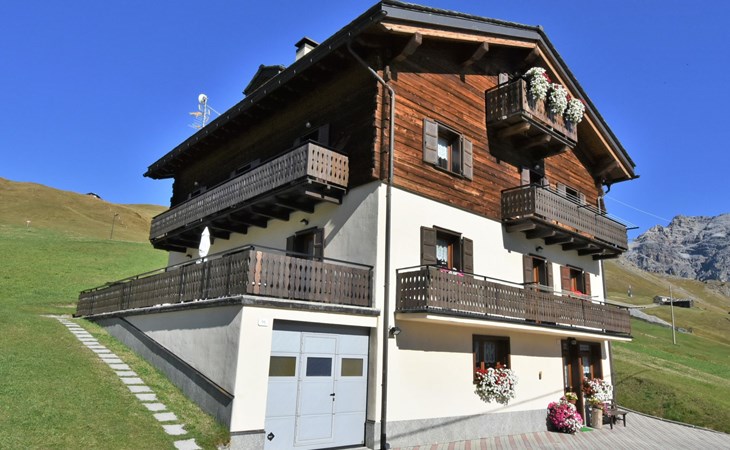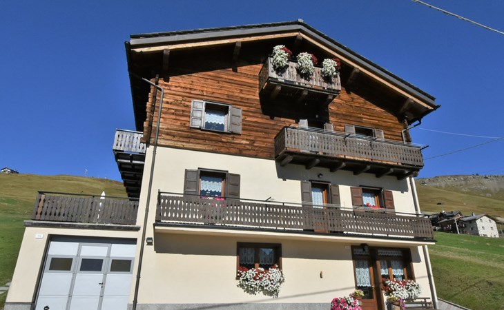 Klein, mooi appartementencomplex "Casa Crapena", 2.096 m boven zeeniveau, van 2 verdiepingen, vrijstaand, omgeven door weiden. 4 appartementen in de woning. In het gehucht Trepalle, 7.5 km van het centrum van Livigno, 30 km van het centrum van Bormio, rustige, zonnige ligging tegen een helling, 300 m van het skigebied, op het zuiden. Parkeerplaats op het terrein. Winkel 2 km, overdekt zwembad 9.7 km. Skilift 1 km, stoeltjeslift 1 km, skibushalte 500 m. Bij goede skicondities is het huis bereikbaar per ski. De eigenaar woont op hetzelfde terrein.