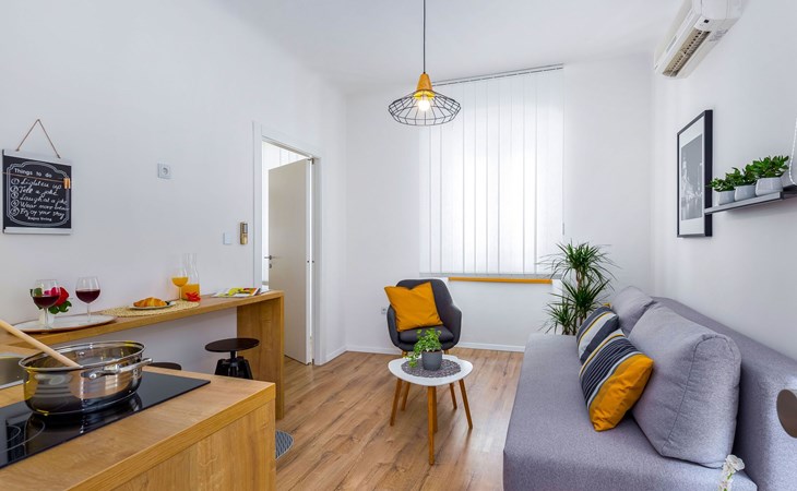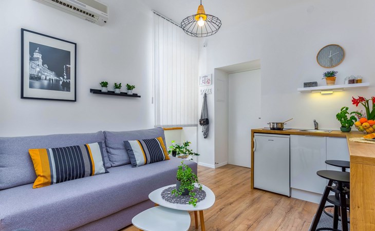 Discover the charm of Rijeka by staying in a naturally well-lit, new one-bedroom apartment located in the heart of Rijeka Old Town. Overlooking the vibrant pedestrian zone, this accommodation offers an immersive experience in the historic city center, near all the essential amenities including the Promenade Korzo, bus station, and boat terminal. Ideal for digital nomads, couples, singles, friends, and families, the apartment provides a warm and cozy setting for up to four people, ensuring a memorable stay for both business and leisure travelers.Inside, the Apartment TERRA I spans 33 m2 and sits on the 2nd floor of a residential building, featuring a modern and attractive interior designed for comfort and style. Guests will appreciate the king-size bed, additional sofa bed, closet, armchair, and writing desk with chair. The apartment also includes a fully equipped kitchenette with dishes, a four-person dinette set, and a stylish bathroom, ensuring an enjoyable and relaxed stay. Technical amenities enhance the experience, with smart PIN access, air conditioning, free Wi-Fi with unlimited internet, a smart TV box with Netflix, touch switches, a walk-in digital shower, towel heater, humidifier, and more. Business guests will find convenience in the wireless mouse and keyboard, while younger visitors can enjoy a gamepad with pre-installed games, ensuring entertainment for all.The exterior of Apartment TERRA I compliments its modern interior, set amidst the quiet and friendly neighborhood of Rijeka's historic city center. The apartment's prime location allows guests to fully immerse themselves in the local culture and ambiance of this historic area.The apartment enjoys a central position in a neighborhood brimming with life, showcasing residential and commercial buildings adorned in neoclassic and Art Nouveau styles. A stone's throw away, visitors can explore the city's main attractions including Korzo promenade, the National Theater, city market with its fish market, and more. The locality is enriched with banks, grocery stores, bakeries, restaurants, taxis, and bus stations, offering a blend of convenience and exploration. Rijeka's prime location also serves as a perfect base for discovering the diverse attractions nearby, from Opatija's walks to skiing in Platak, and exploring the rich culinary scene of Istria.Embark on a journey to Rijeka, a city celebrated for its rich tapestry of art, culture, fine dining, and festive events such as carnivals and regattas. The Apartment TERRA I in Rijeka Old Town calls for those seeking an indulgent stay in a city with beautiful beaches and an endless array of sights. Whether you're here for a short visit, a daily holiday, or a long-term stay, this charming apartment ensures a comfortable base as you explore and fall in love with my city. Come and discover Rijeka – an experience waiting to happen. A travel bed is available for children, catering to the needs of our youngest guests. 72572520132
