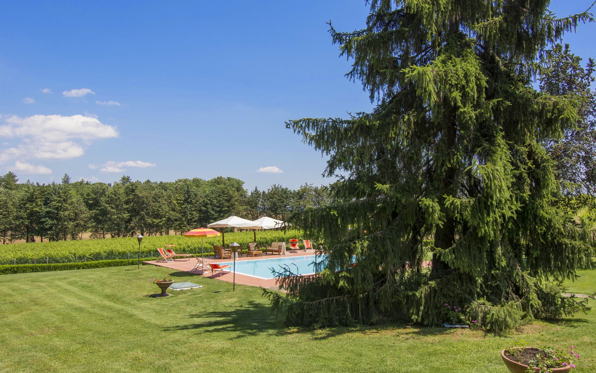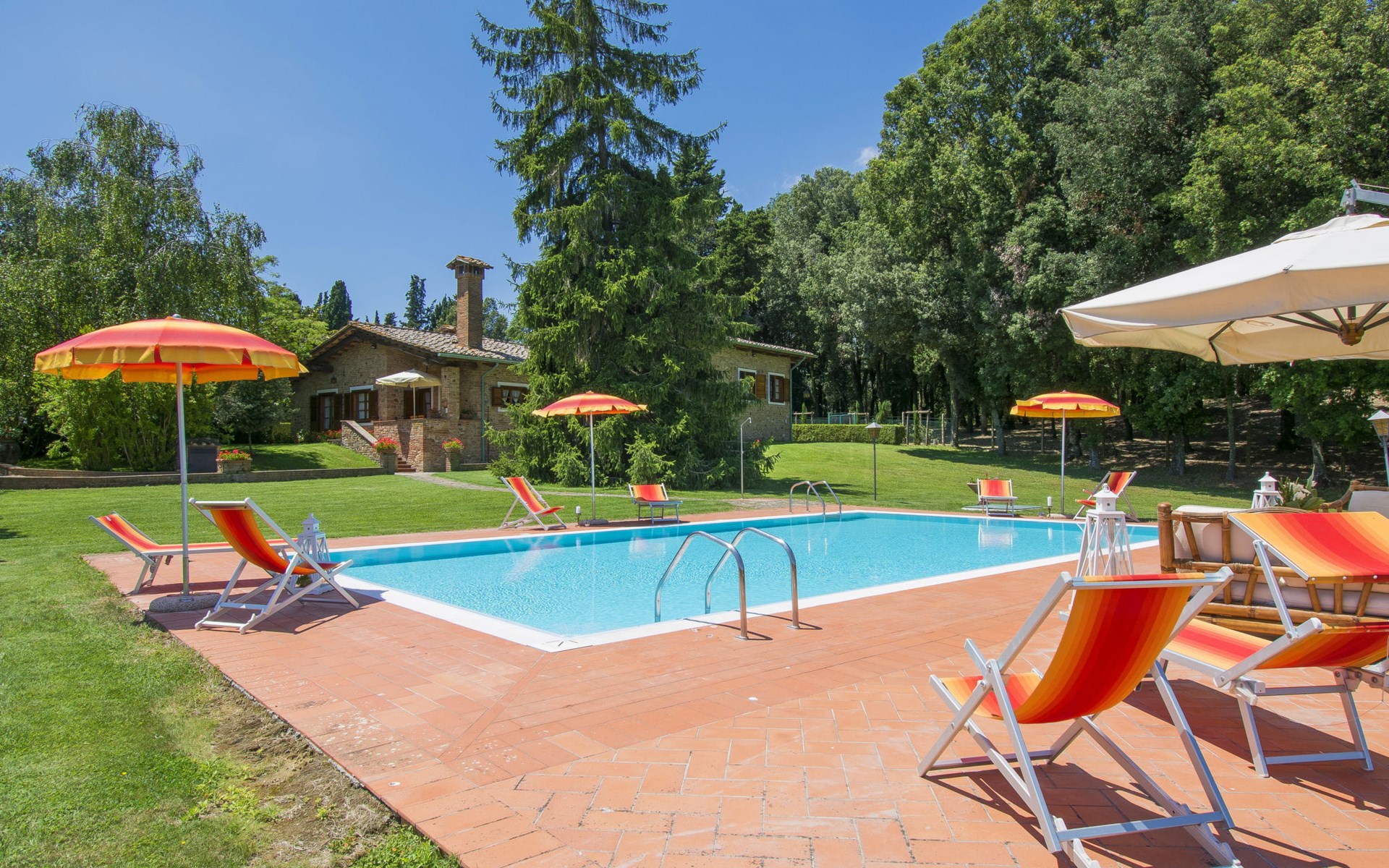 Villa "Camporbiano". Geïsoleerde ligging. Voor alleengebruik: tuin 5.000 m2, openluchtzwembad (6 x 12 m, 150 cm diepte, seizoensgebonden beschikbaarheid: 26.Mrt. - 31.Okt.). Tuinmeubelen. Verwarming alleen beschikbaar van 01.Nov. - 15.Apr.. Wissel van linnengoed 1 maal per week. Kok op verzoek (extra). Overdekte parkeerplaats. Winkel 7 km, bushalte 3 km, treinstation "Castelfiorentino" 18 km, zandstrand 65 km. Tennis 10 km, manege 10 km.
