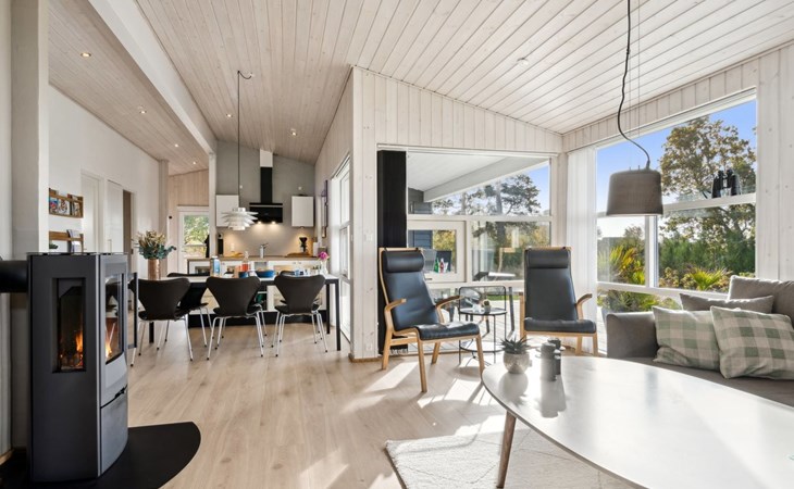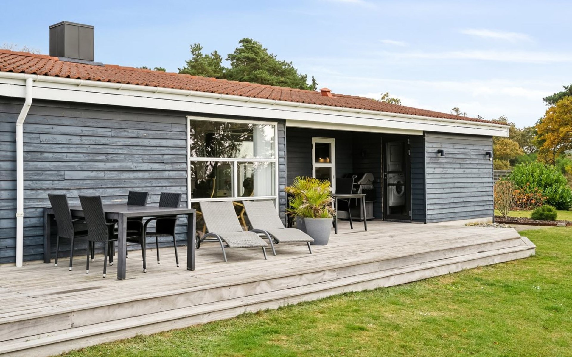 Eengezinswoning, bouwjaar 1988. 700 m van zee. Voor alleengebruik: wild terrein 1.200 m2. Terras (50 m2), barbecue, kinderspeelplaats (schommel). In het huis: sauna, wasmachine, droger. Parkeerplaats bij het huis. Levensmiddelenwinkel 3 km. De eigenaar accepteert geen jeugdgroepen.