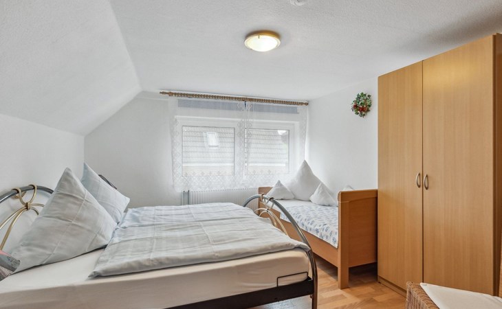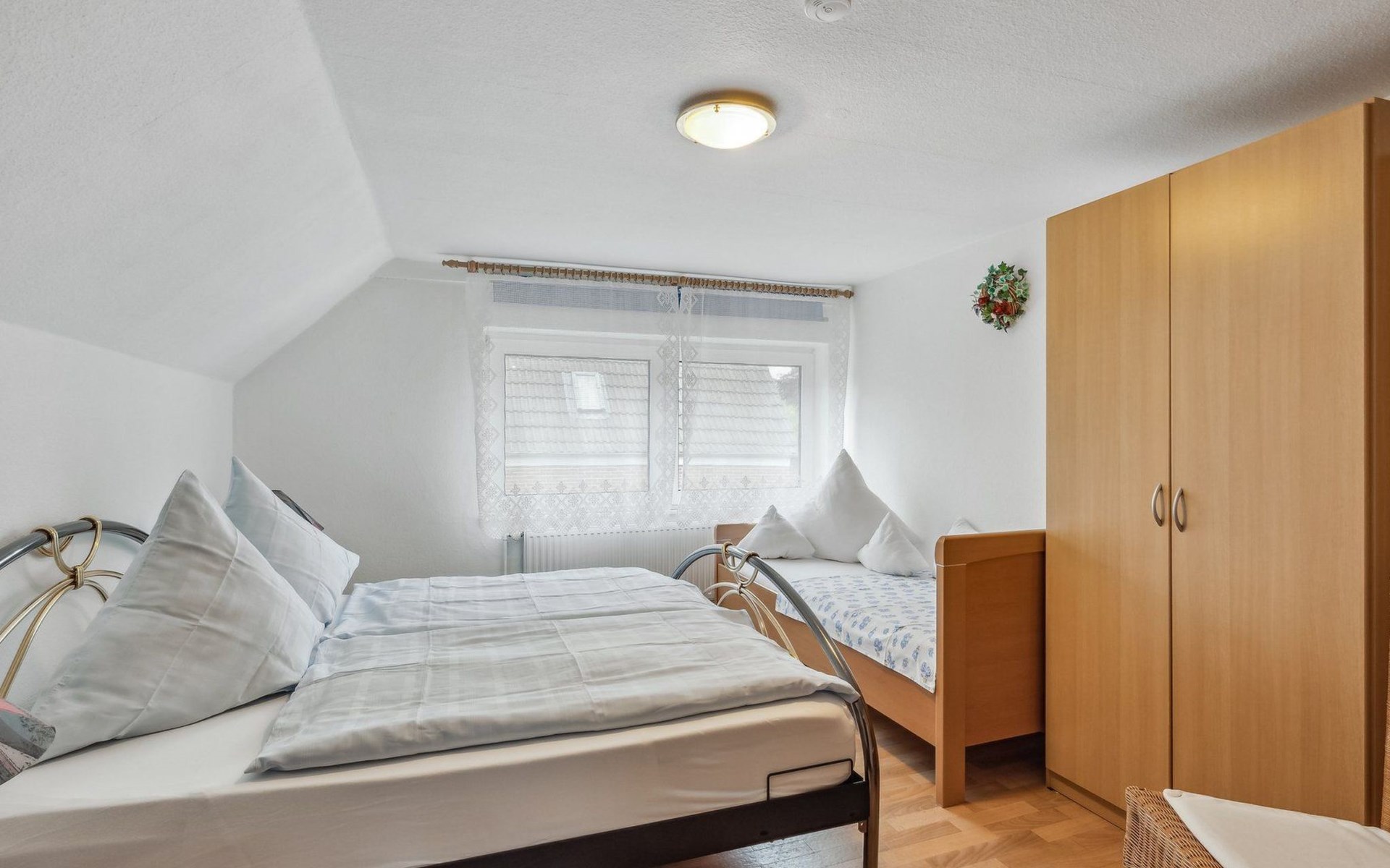 Discover an idyllic holiday home in Hage, Berumbur - a perfect escape from everyday life. This spacious holiday flat of approx. 70 sqm is located on the first floor of a quiet house and, although accessible via a steep staircase, is a real treasure. Directly opposite the Hage Berum holiday park, you can expect not only a picturesque view but also proximity to the nearest restaurant. Inside you will find a fully equipped fitted kitchen with dishwasher, toaster, egg cooker, electric cooker, microwave, fridge, radio and a cosy table with four chairs. An inviting living room with a sofa bed, a couch, a TV armchair, a dining table with four chairs, satellite TV and WLAN Internet access leaves nothing to be desired. The bathroom is equipped with a shower, WC and an anteroom with washing machine. There is also a large master bedroom and a child-friendly room, both lovingly furnished. Enjoy the spacious outdoor area with garden, which is available for exclusive use. Covered seating, garden furniture and a beach chair invite you to spend relaxing hours outdoors. A parking space for your car and a bicycle shed are also available to make your stay as pleasant as possible.With its proximity to various coastal towns such as Norddeich, Neßmersiel and Dornumersiel (all between 10 and 15 km away) and their beaches as well as ferry connections to the islands of Norderney and Juist, the surrounding area offers a wide range of leisure activities. Shopping facilities, other restaurants, a golf course, mini-golf, an indoor pool, outdoor pool, opportunities for cycling tours, a sports centre including surfing, tennis and water skiing are all available within a radius of just 1 km.Let yourself be enchanted by this lovingly furnished holiday flat in Hage, Berumbur. With its comprehensive facilities, enchanting outdoor area and ideal location in the middle of a varied recreational and leisure landscape, it is the perfect starting point for an unforgettable holiday. The non-smoking house with WLAN, landline connection and Smart TV makes your stay comfortable and relaxing. Experience an incomparable holiday that you won't forget!