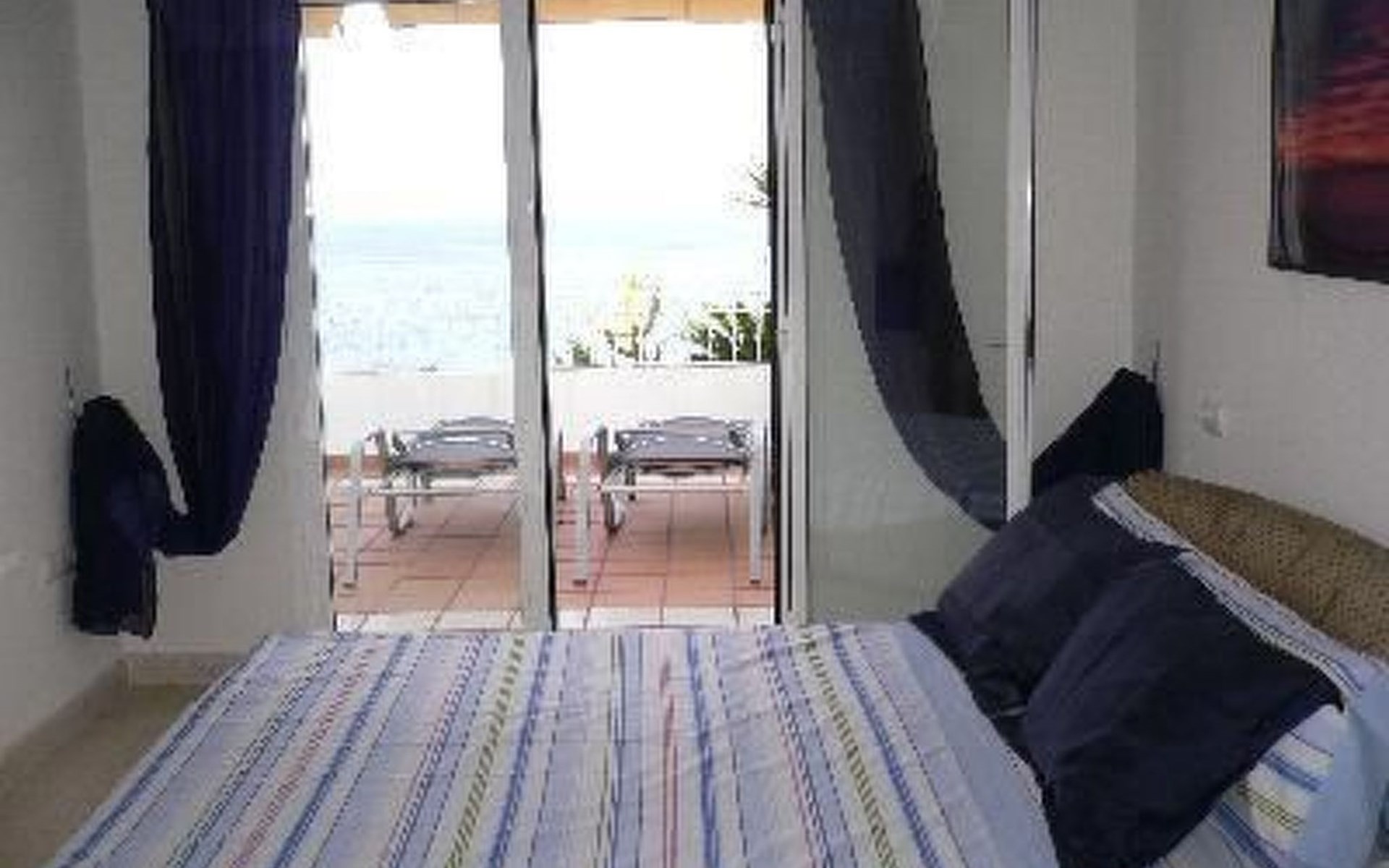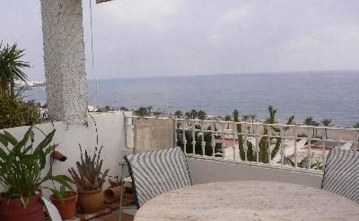 2 bedrooms with 2 bathrooms "en suite", kitchen and living-dining room offer all the comfort you could wish for. The flat is called SOLYSOMBRA, meaning sun and shade, because you can feel incomparably comfortable both inside and outside on the terrace shaded by awnings. Everything is modern and comfortably furnished, including the terrace. Additional comfort is provided by a swimming pool integrated into the garden area and a parking space in the underground car park.The property is completely fenced and there is also a large pool with lawn.The flat has 2 bedrooms, one with a 150 x 200 upholstered bed, en-suite shower room with washbasin and WC, hairdryer and infrared heating for the winter. Through the patio door you are also directly on the terrace or can watch the sunrise. The other bedroom is slightly smaller with a choice of 1 or 2 beds, an en-suite shower room with WC, washbasin and washing machine. The modern open-plan kitchen with dishwasher, ceramic hob, oven, extractor fan, microwave, filter coffee machine, kettle and crockery, cutlery, glasses, pots/pans, bowls, fridge/freezer is complemented by a bar/shelf facing the room. Living/dining room with an extendable glass table with 4 chairs, large sofa, 1 armchair, low glass table, flat screen TV with digital Spanish programme and Astra satellite dish to receive German channels, limited English and French channels. The large terrace is shaded by 2 horizontal and 2 sloping awnings, a glass dining table with 4 chairs and 2 sun loungers.I have already described the marvellous view over the beach and the sea, you walk down to the street, cross it and you are on the finest sandy beach. The urbanisation BAJO DEL BANCAL is quiet, the nearest chiringuito is Tito's, one of the oldest or even the oldest in Mojácar-Playa, but it is far enough away not to disturb you, but you are still within walking distance.Due to the size of the 2nd bedroom, the flat is only partially suitable for 2 couples. It is ideal for a family with 1 - 2 children. ESFCTU0000040100008342970000000000000000VFT/AL/02