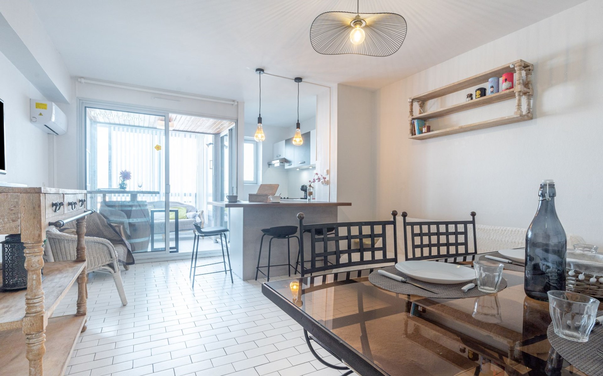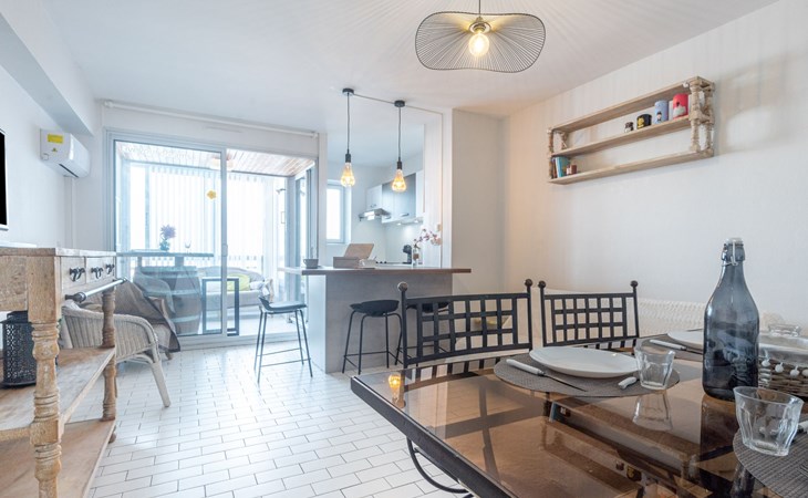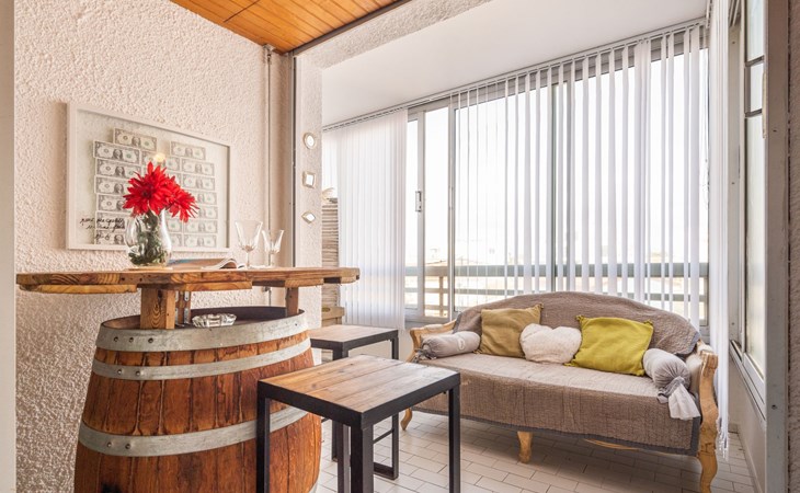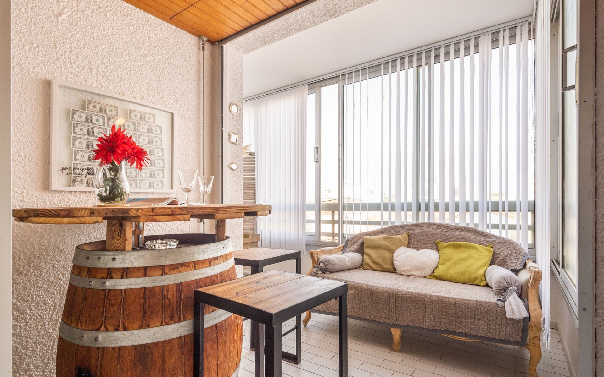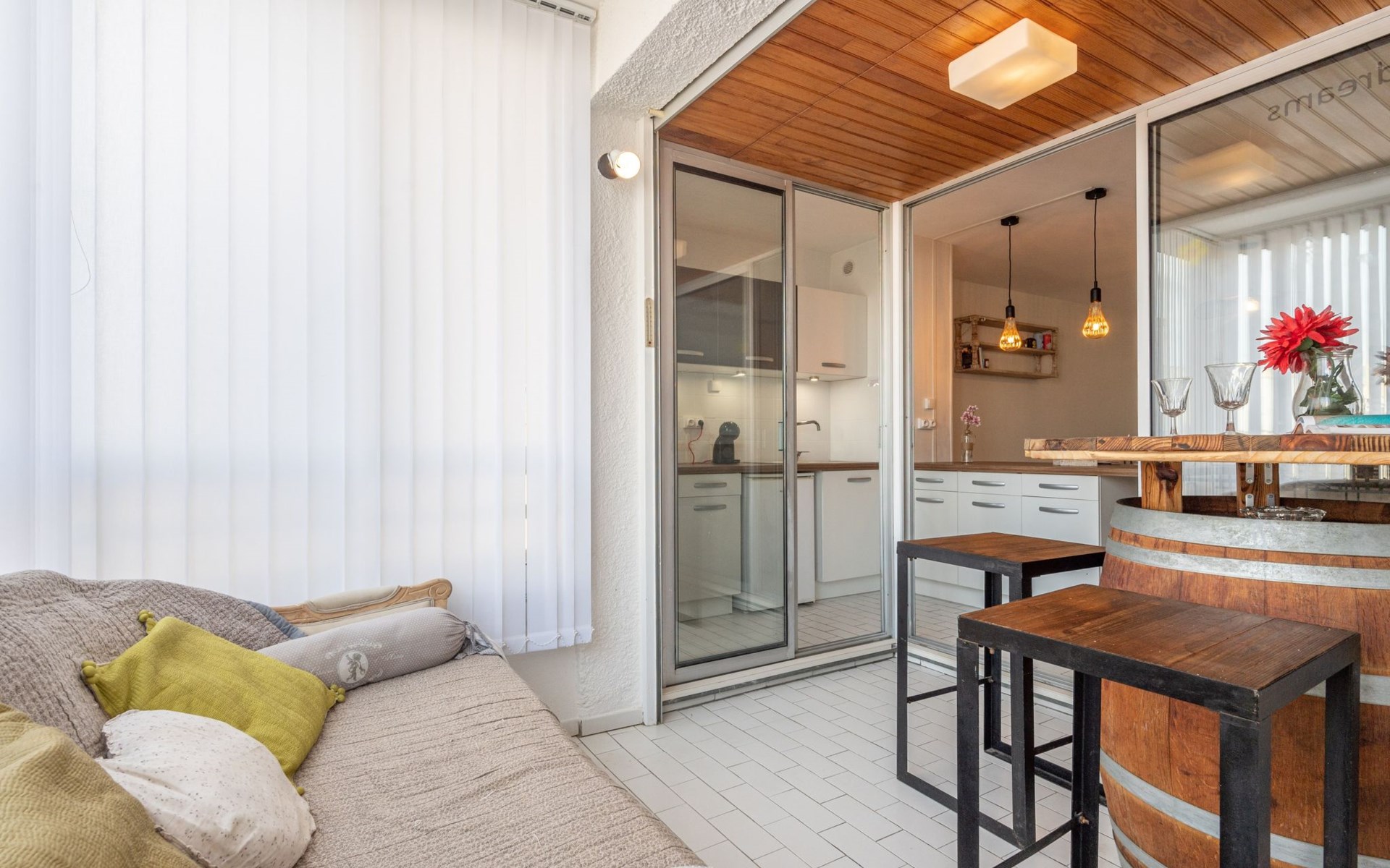 Canet Plage: Residentie "Hacienda", van 6 verdiepingen. In de wijk la place de la méditerranée, in het centrum van Canet Plage, 100 m van zee. In het complex: lift. Openbare parkeergarage op 20 m. Winkel 50 m, winkelcentrum 8 km, restaurant, bar 50 m, bakkerij 200 m, café, bushalte 50 m, station "Perpignan" 12 km, zandstrand 20 m, park "Aqualand St Cyprien" 12 km, duikschool 18 km, openluchtzwembad 2 km, overdekt zwembad 2 km. Jachthaven 1.5 km, golfterrein (18 holes) 8 km, tennis 2 km, midgetgolf 1 km. Attracties in de buurt: Perpignan 12 km, Collioure 25 km, Banyuls 37 km, Espagne 35 km, Andorre 180 km, Barcelone 200 km. Bekende meren kunnen gemakkelijk worden bereikt: Villeneuve de la Raho 19 km, St Jean Pla de Corts 39 km, Gorges du Gouleyrous 42 km. Wandelgebied St Martin du Canigou 70 km, Massif du Canigou 77 km, Lac des Bouillouses 105 km.