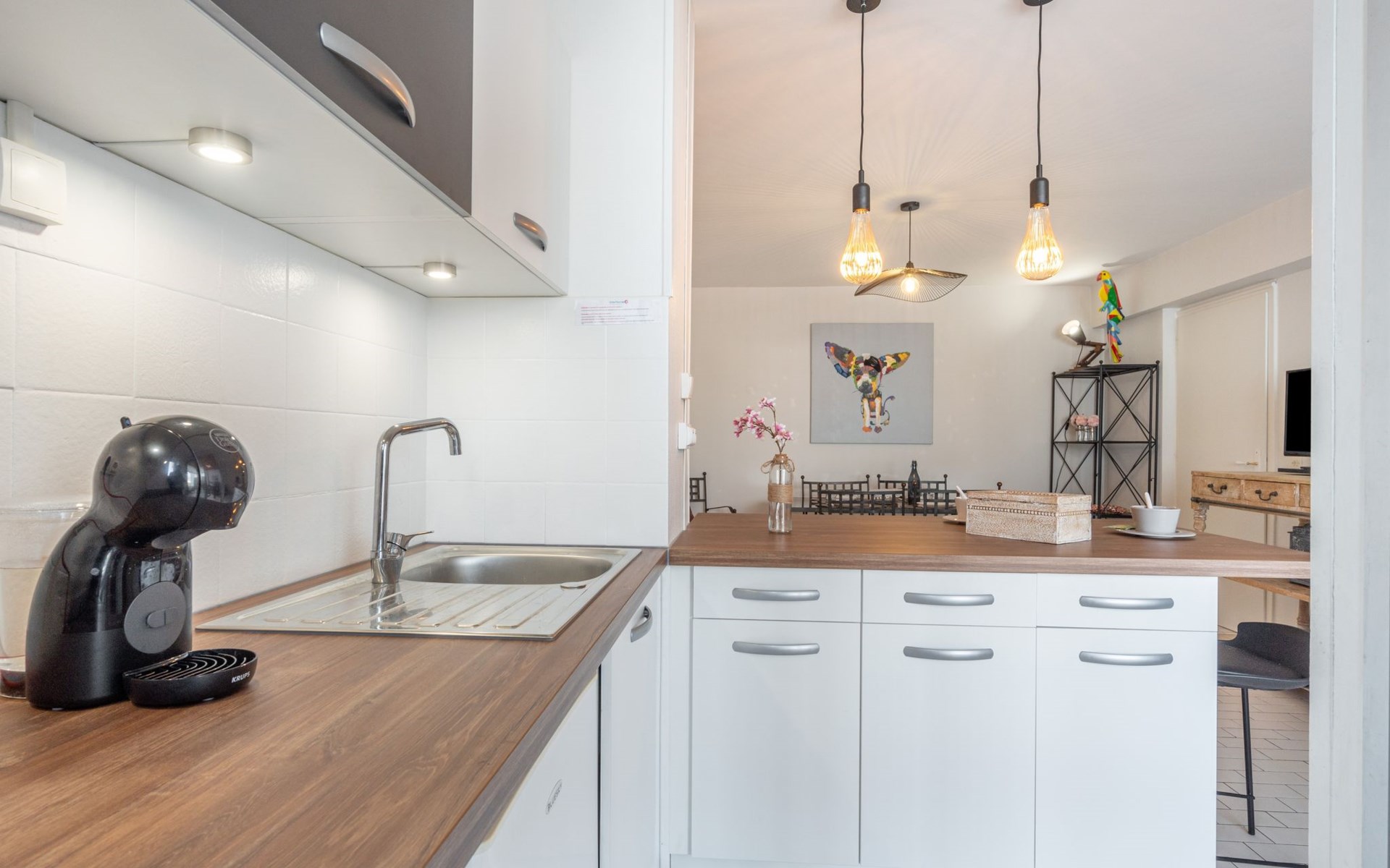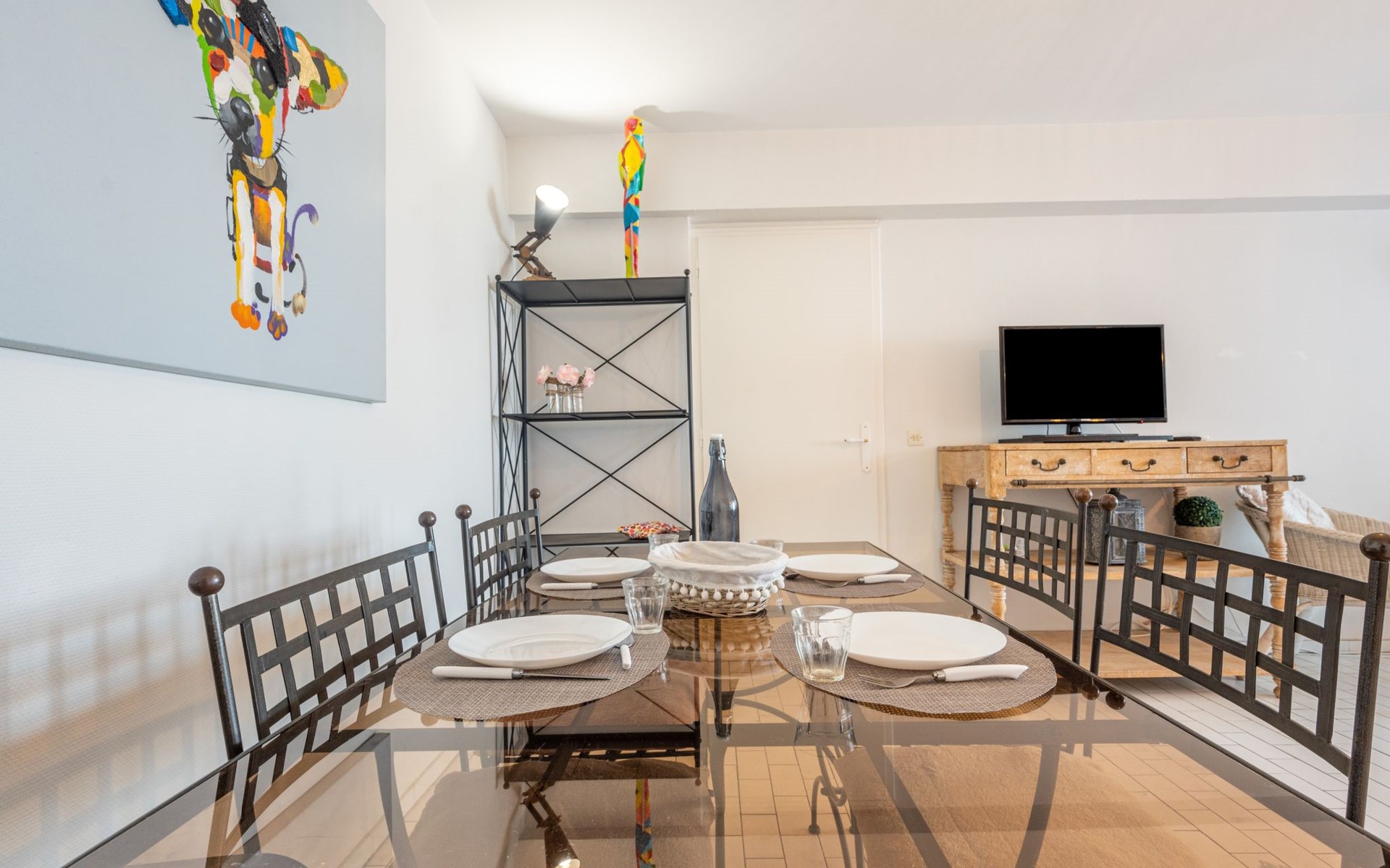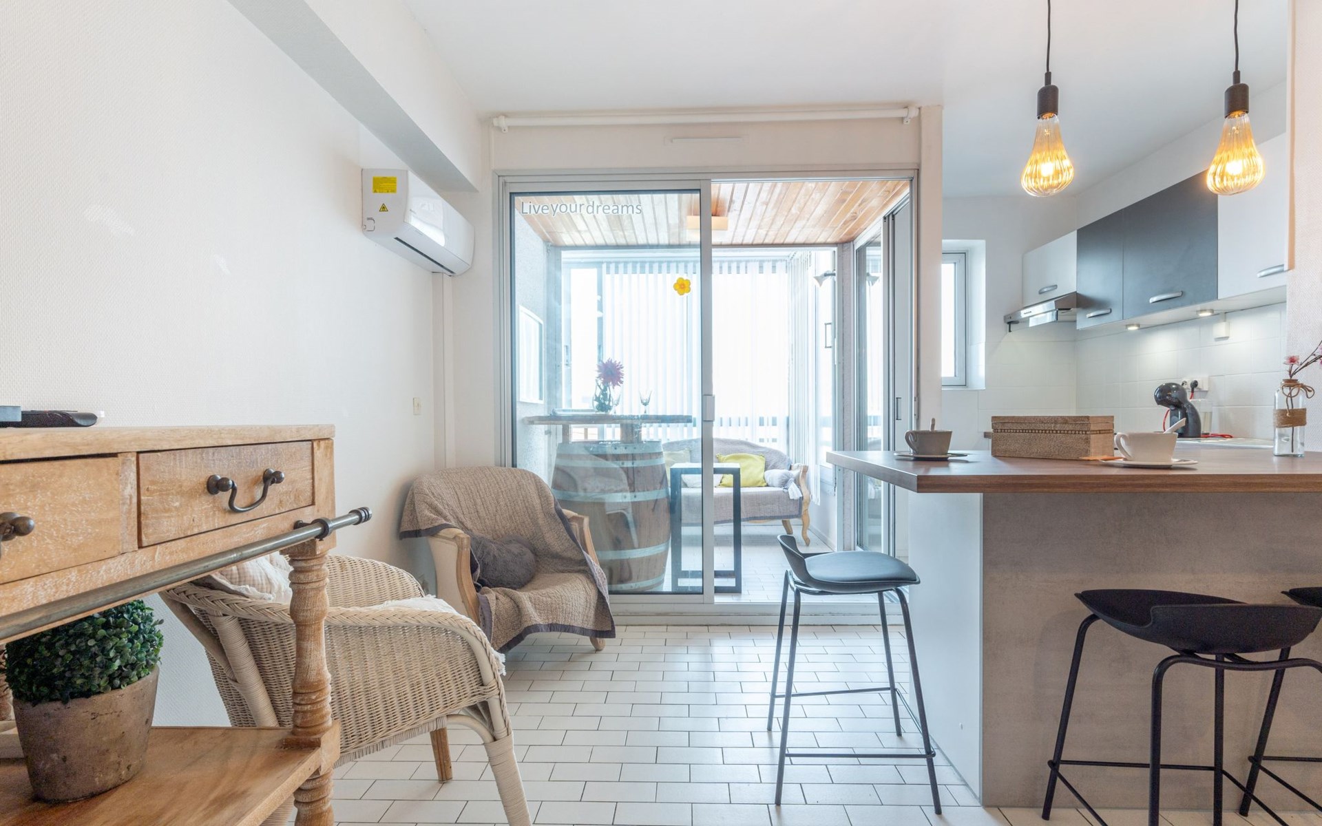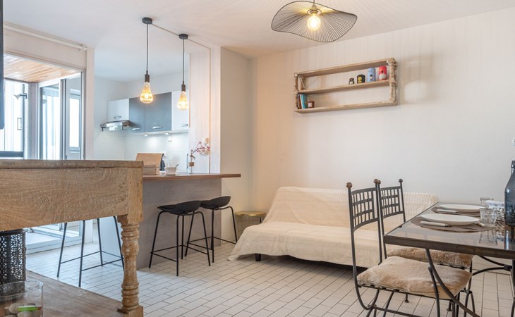 Canet Plage: Residentie "Hacienda", van 6 verdiepingen. In de wijk la place de la méditerranée, in het centrum van Canet Plage, 100 m van zee. In het complex: lift. Openbare parkeergarage op 20 m. Winkel 50 m, winkelcentrum 8 km, restaurant, bar 50 m, bakkerij 200 m, café, bushalte 50 m, station "Perpignan" 12 km, zandstrand 20 m, park "Aqualand St Cyprien" 12 km, duikschool 18 km, openluchtzwembad 2 km, overdekt zwembad 2 km. Jachthaven 1.5 km, golfterrein (18 holes) 8 km, tennis 2 km, midgetgolf 1 km. Attracties in de buurt: Perpignan 12 km, Collioure 25 km, Banyuls 37 km, Espagne 35 km, Andorre 180 km, Barcelone 200 km. Bekende meren kunnen gemakkelijk worden bereikt: Villeneuve de la Raho 19 km, St Jean Pla de Corts 39 km, Gorges du Gouleyrous 42 km. Wandelgebied St Martin du Canigou 70 km, Massif du Canigou 77 km, Lac des Bouillouses 105 km.