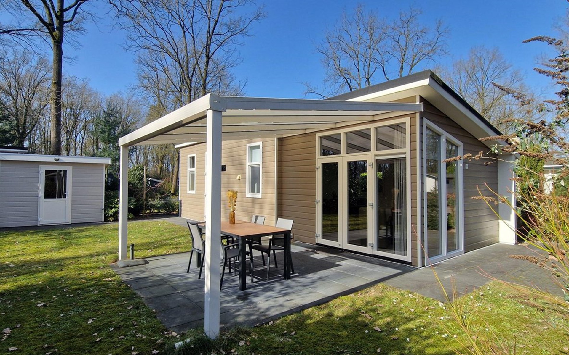 Met twee slaapkamers – één met twee eenpersoonsbedden en de ander met een tweede set eenpersoonsbedden of een stapelbed – is dit chalet geschikt voor gezinnen of vriendengroepen. De badkamer is modern ingericht met een douche, wastafel en toilet. Buiten geniet je op het terras van de frisse Drentse lucht, compleet met parasol en comfortabel tuinmeubilair.