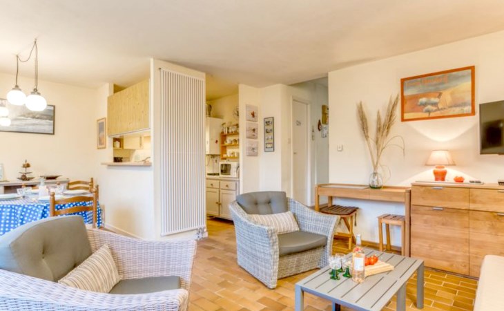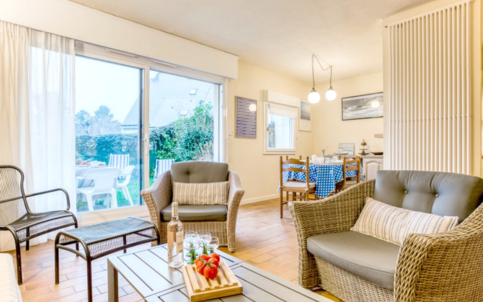 Residentie "Les Galiotes", van 2 verdiepingen. Aan de rand van de plaats, 1.7 km van het centrum, 300 m van zee, 300 m van het strand, op het zuiden. Parkeerplaats. Winkel 1.1 km, levensmiddelenwinkel 200 m, supermarkt 200 m, station "Auray" 13 km, zandstrand "Men dû, baie Beaumer, gde plage" 300 m, overdekt zwembad 1.7 km, thermaalbad "Thalassothérapie" 1.7 km. Jachthaven 3 km, jachthaven 1.7 km, golfterrein (18 holes) 13 km, zeilschool 2 km, tennis 100 m. Attracties in de buurt: Thalasso & Spa Resort - Carnac 3 km, Alignements de Carnac 4.6 km, La Trinité sur Mer 3 km, Presqu'île de Quiberon 14 km, Auray et le Golfe du Morbihan 16 km, Vannes 35 km.