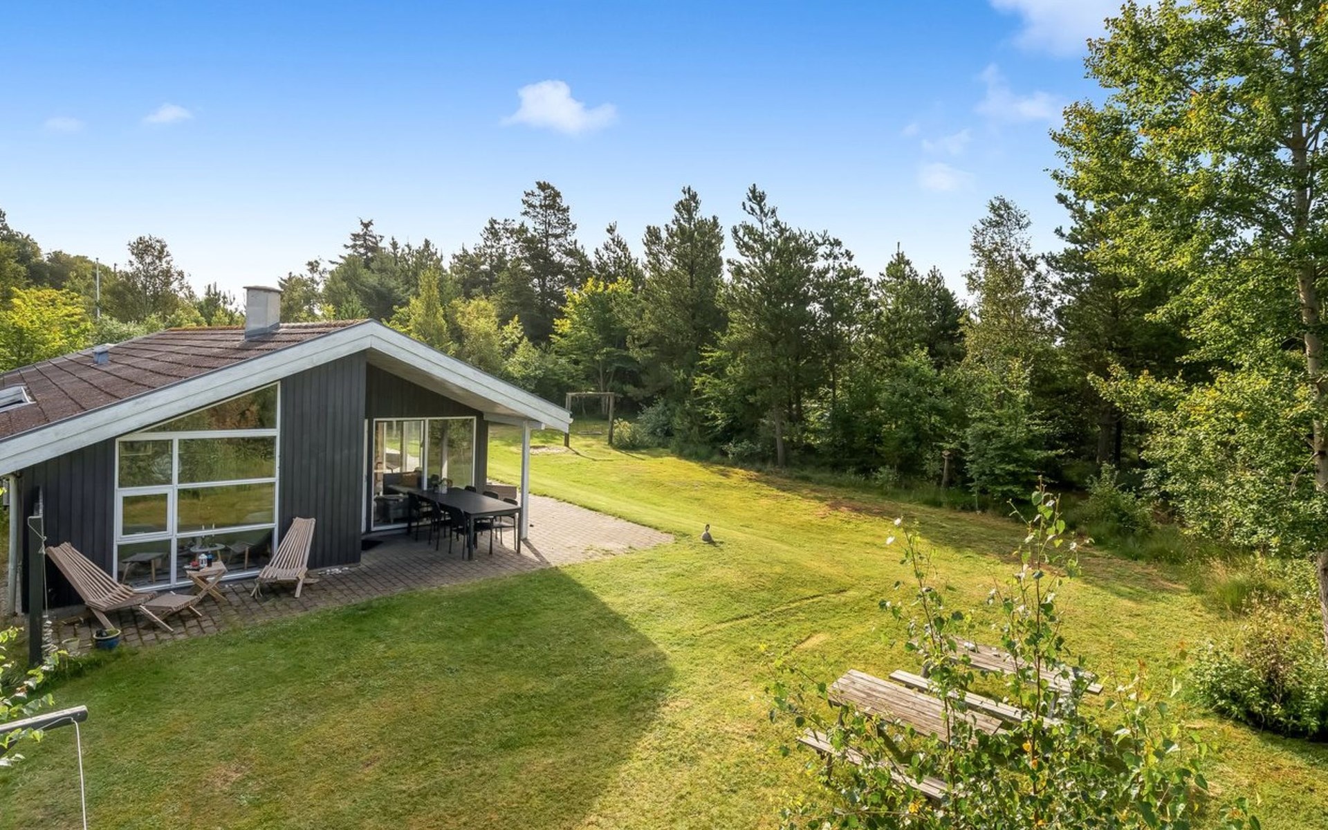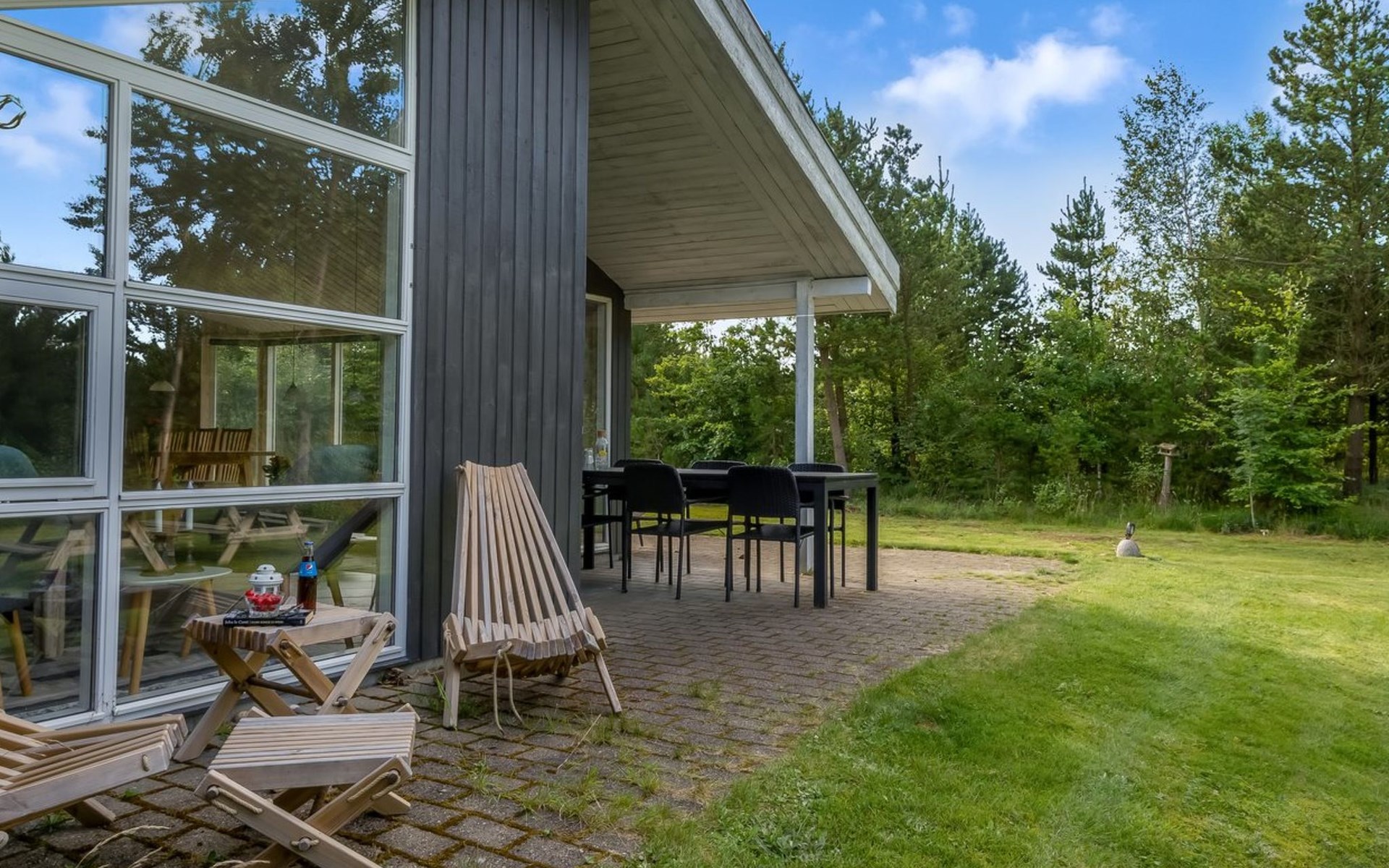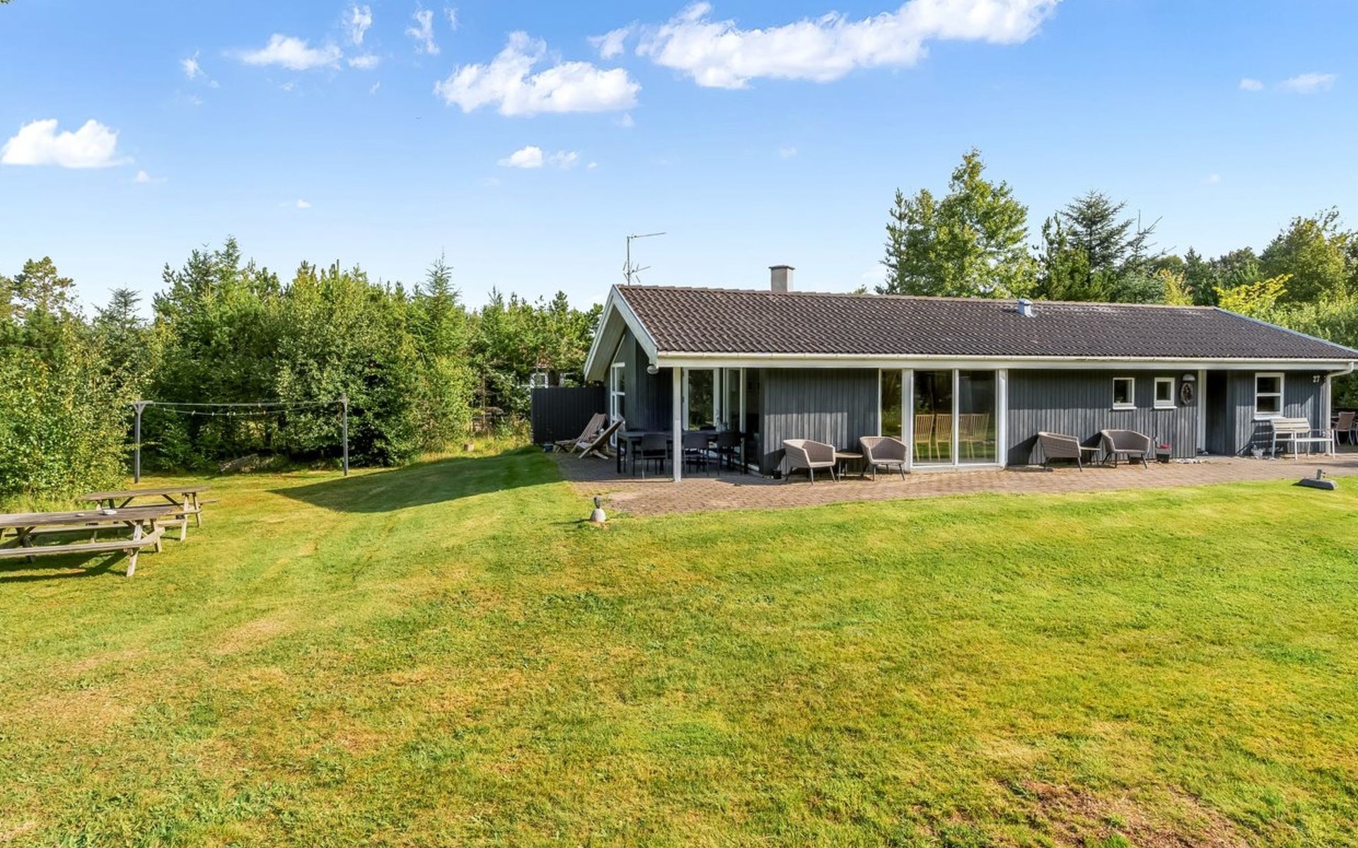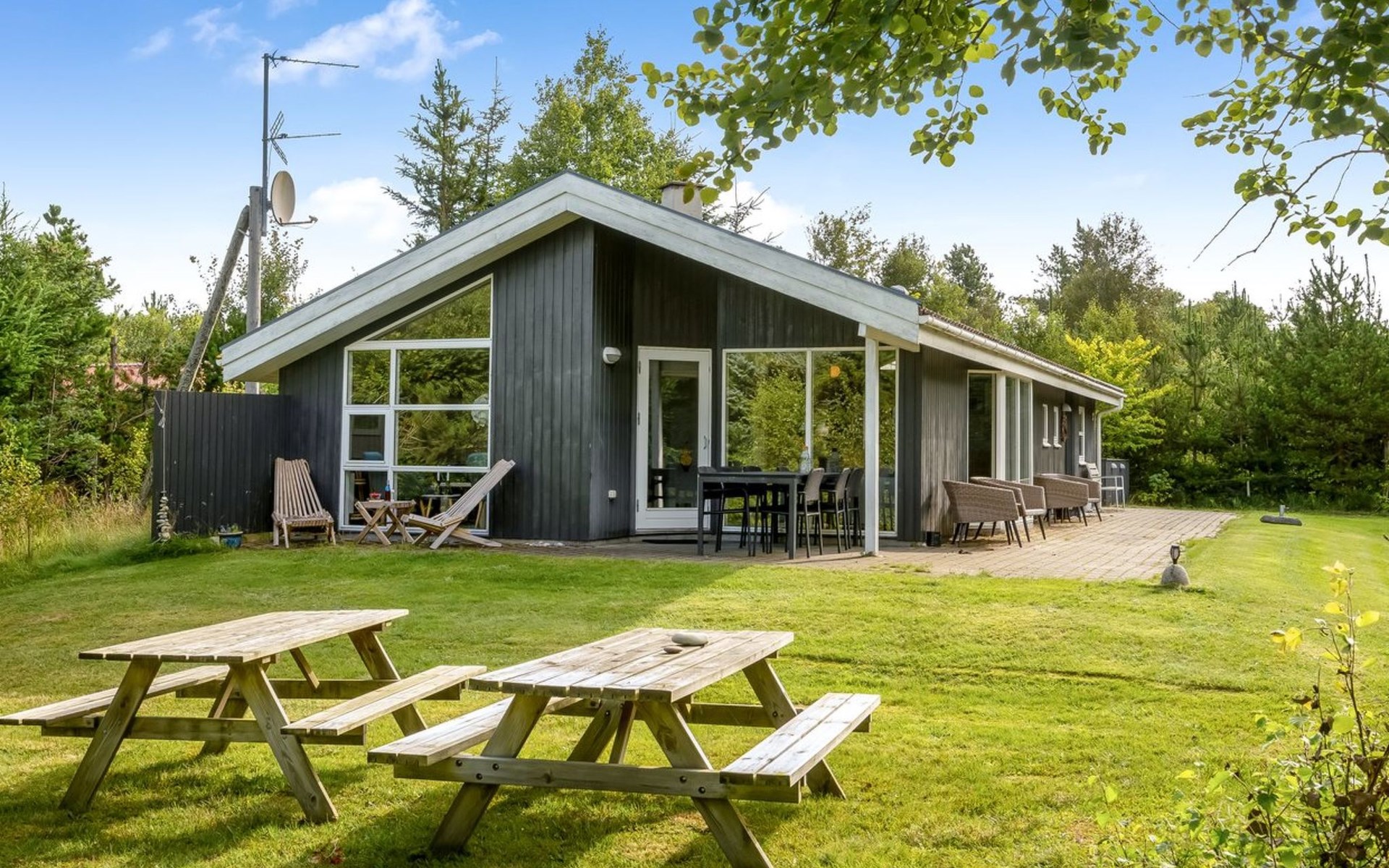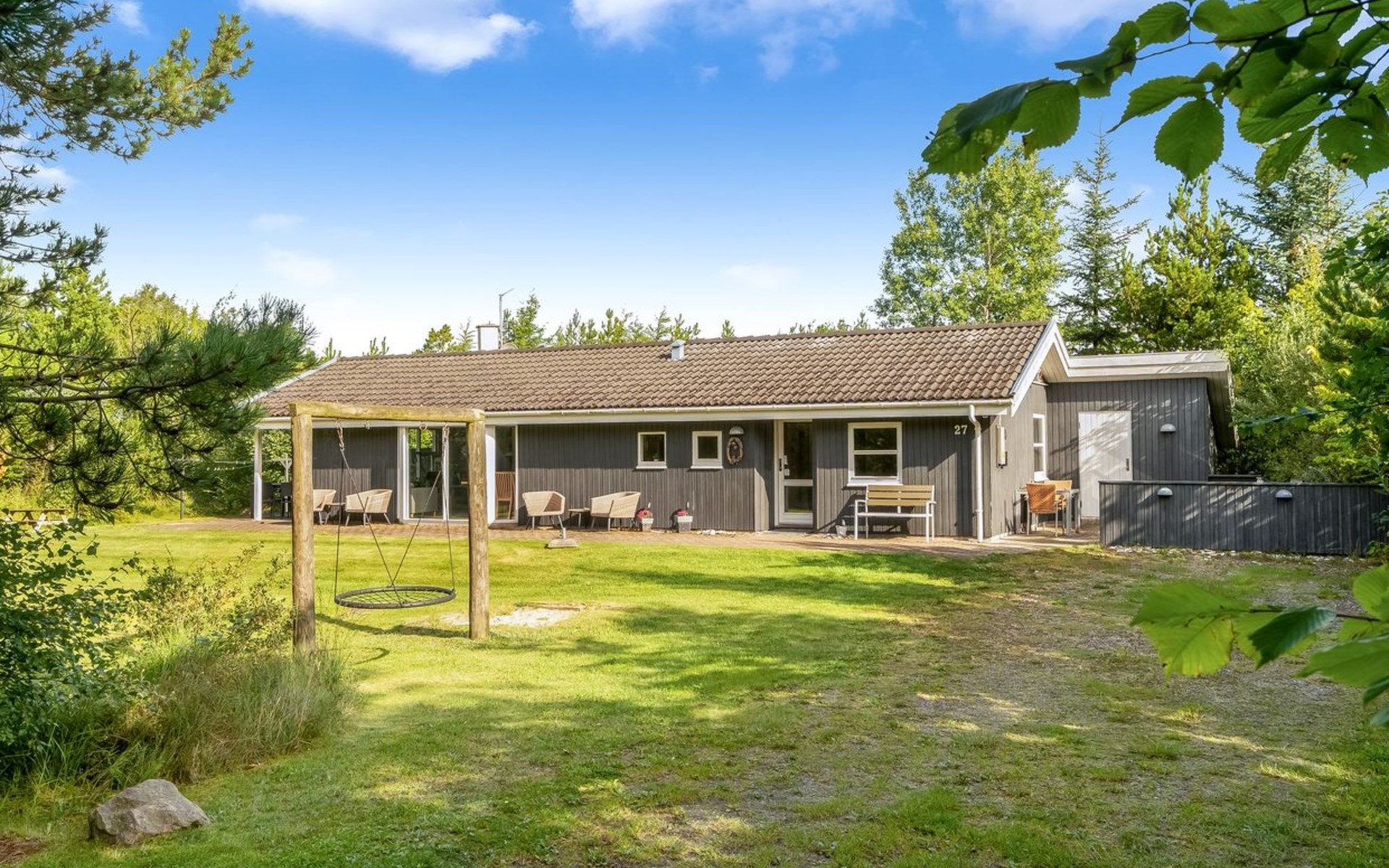 Eengezinswoning, bouwjaar 2000. 800 m van zee. Voor alleengebruik: wild terrein 1.300 m2. Terras (35 m2), barbecue, kinderspeelplaats (schommel). In het huis: sauna, wasmachine, droger. Parkeerplaats bij het huis. Oplaadstation. Levensmiddelenwinkel 2 km. Golfterrein 10 km. De eigenaar accepteert geen jeugdgroepen.