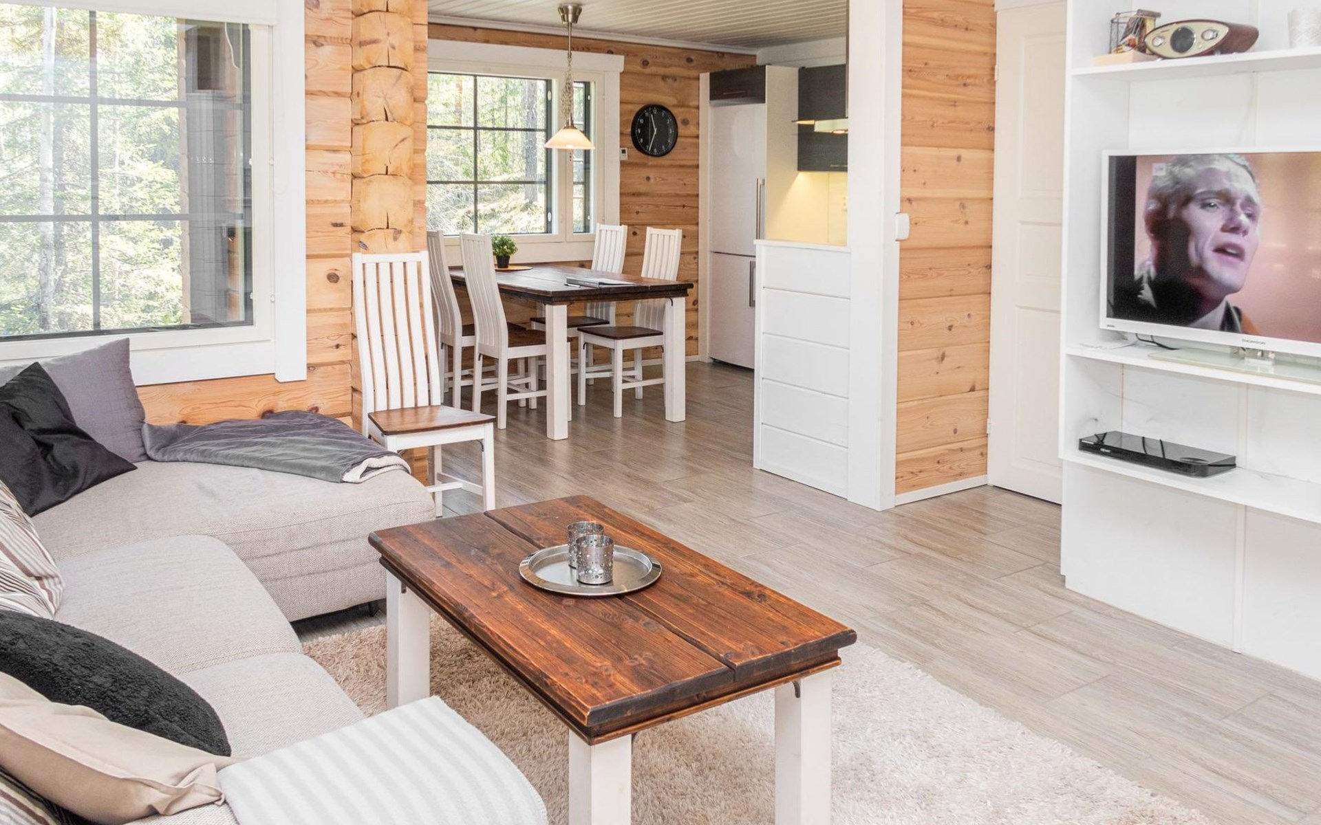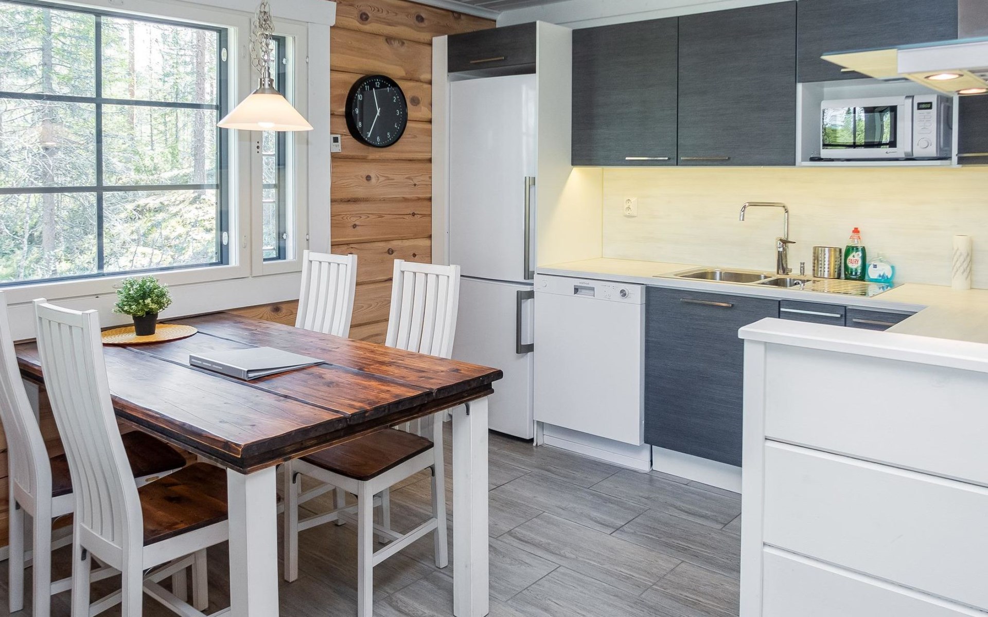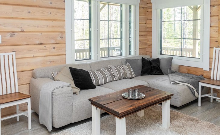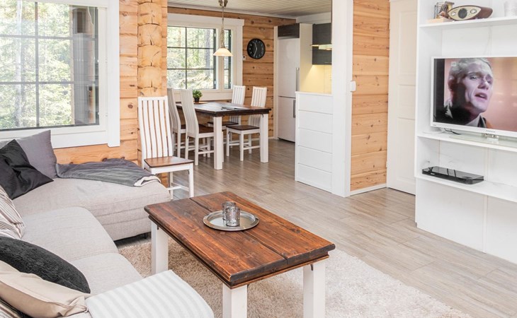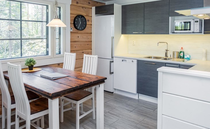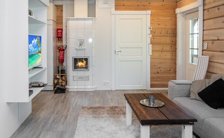 The cabin has one bedroom with a comfortable double bed, and the loft provides four additional sleeping places, accommodating up to six guests. The beautiful nature of Kuusamo begins right at the cabin’s doorstep, perfect for year-round outdoor activities and relaxation. The living room/kitchen and electric sauna complete the experience, offering comfort and relaxation in every season.