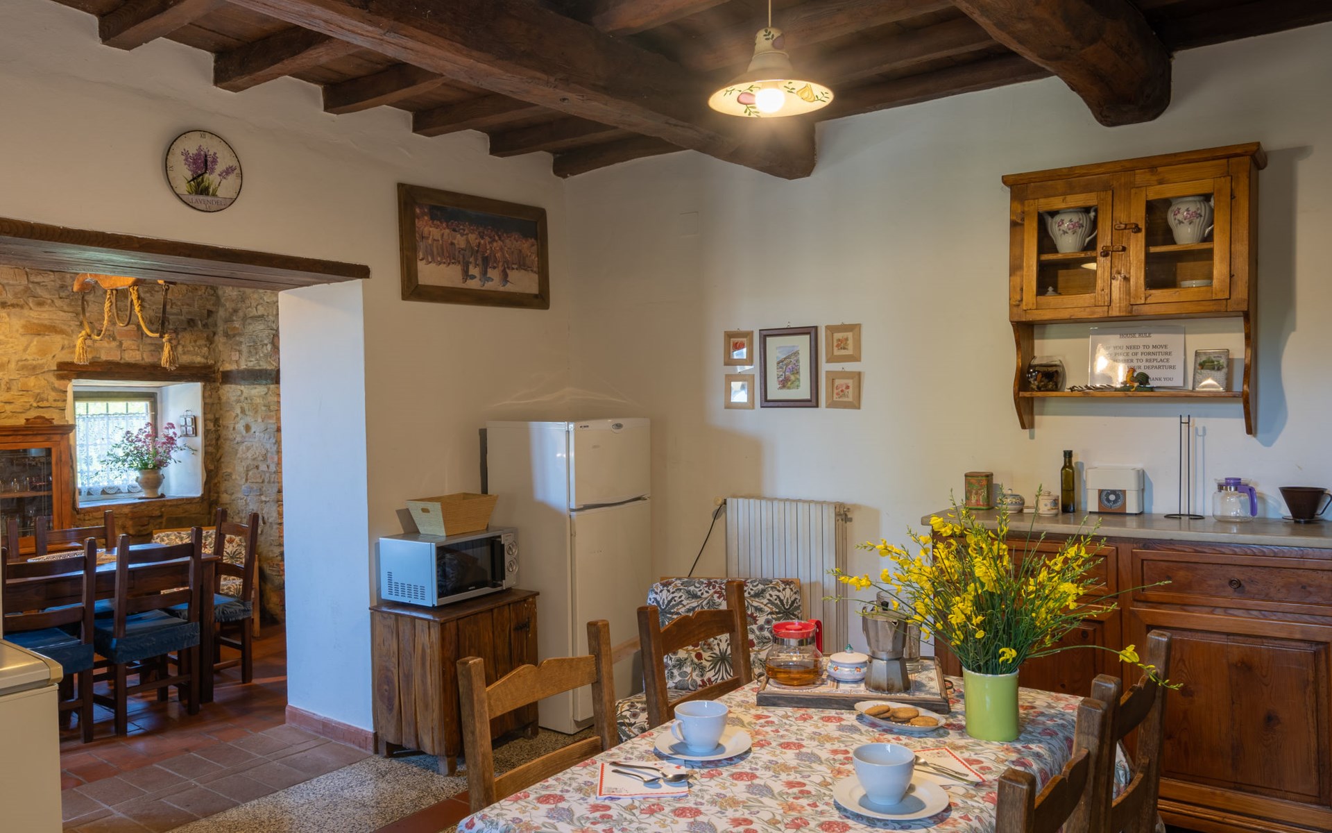 Boerderij "Il Castagneto", 400 m boven zeeniveau. 2 huizen in de plaats. 8 km van het centrum van Rufina, 16 km van het centrum van Pontassieve, 35 km van het centrum van Firenze, geïsoleerde, rustige ligging, te midden van groen, in het bos. Voor medegebruik: tuin 1 ha (niet omheind). Voor alleengebruik: openluchtzwembad (verhoogd) (8 x 5 m, 150 - 150 cm diepte, seizoensgebonden beschikbaarheid: 03.Mei. - 27.Sep.). Tuinmeubelen, barbecue. In het huis: centrale verwarming, wasmachine (voor medegebruik), Verwarming ter plaatse te betalen, verwarming alleen beschikbaar van 01.Nov. - 07.Apr.. Smalle toegangsweg tot aan het huis (500 m onverharde weg). Parkeerplaats op het terrein. Winkel 8 km, supermarkt 8 km, meer (zwemmen) "Lago di Bilancino" 48 km. Attracties in de buurt: Dicomano 12 km, Vicchio 27 km, Fiesole 33 km. Auto noodzakelijk. De eigenaar woont op hetzelfde terrein. Let op: de huiseigenaar produceert honing en olie hetgeen in de zomer bijen kan aantrekken nabij de woning.