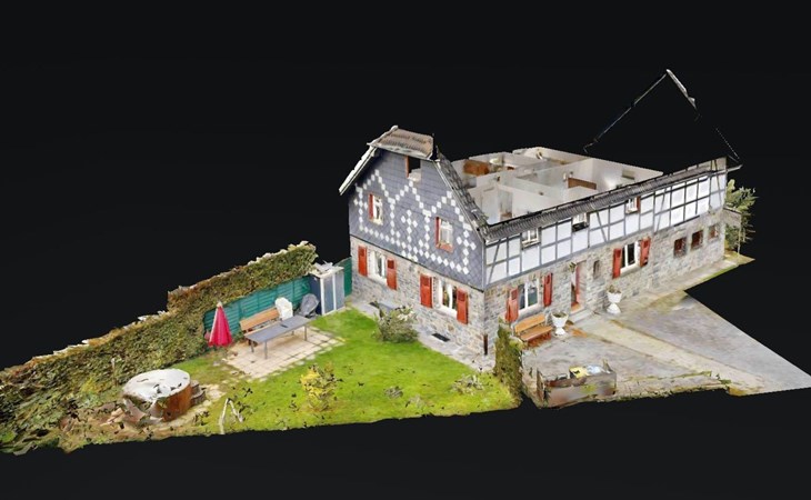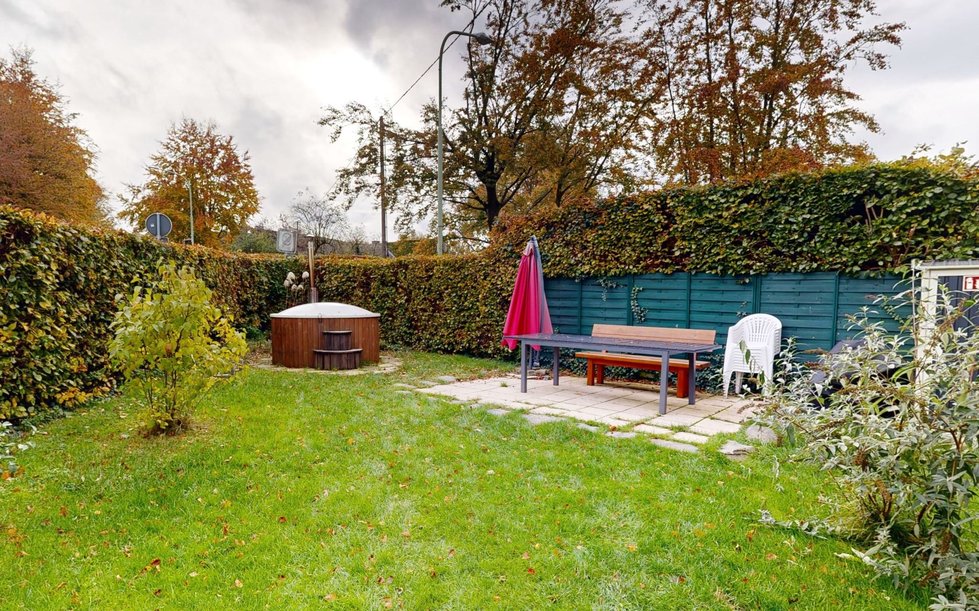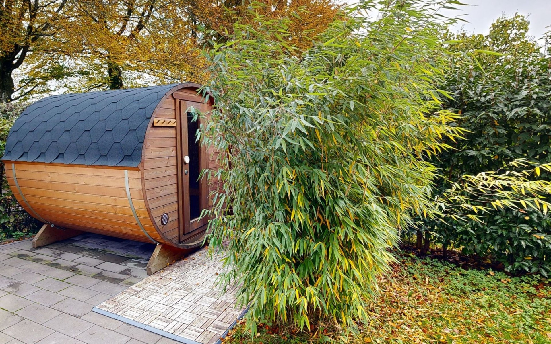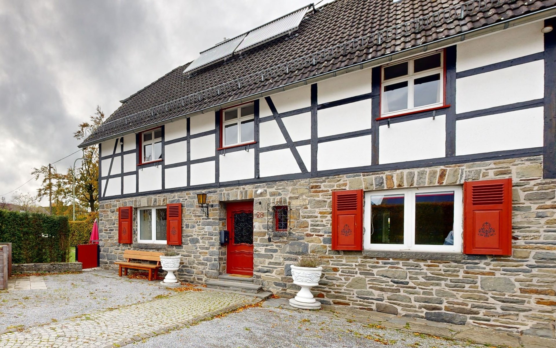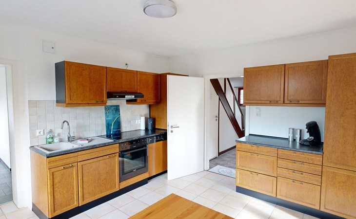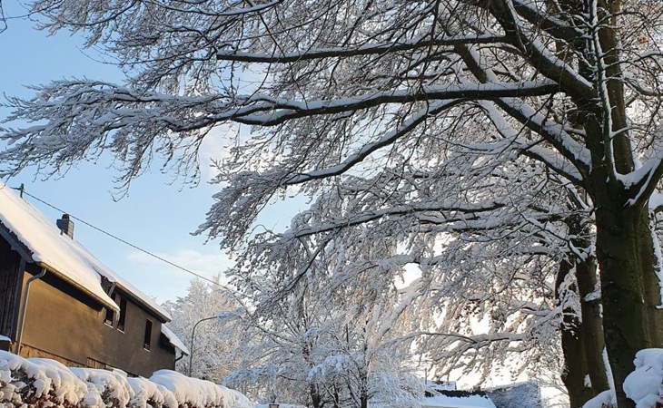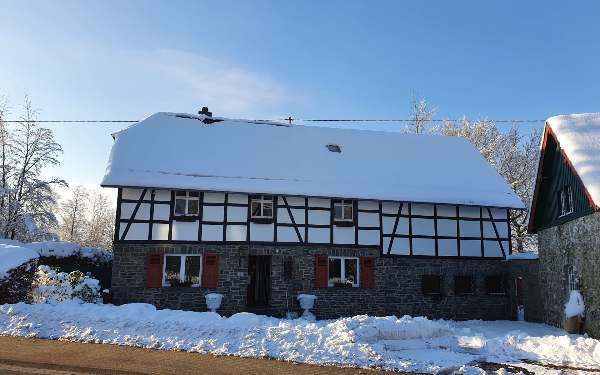 Dreamlike former farmhouse for 10-12 people in Monschau-Höfen Are you looking for a sustainable holiday home in the middle of the beautiful nature of the Eifel, where you can spend a cosy (short) holiday with up to 12 people? Would you also like to enjoy a little wellness in a sauna and a wood-fired hot tub? Then welcome to the Eifel Oasis Monschau.On two floors, the house offers 5 bedrooms with a total of 12 beds; 4 double beds (2 x 160 cm; 2 x 200 cm) and 1 bunk bed ensure a good night's sleep. There is also a sofa bed in 2 of the bedrooms to accommodate a maximum of 2 more people. In a large living room, 2 kitchens, a dining room and 2 bathrooms plus guest toilet, our guests have plenty of space in the house.both kitchens are fully equipped with electric cooker, oven and dishwasher as well as a microwave.in order to take account of the sustainability concept, we have implemented numerous measures, such as a modern pellet heating system, solar thermal energy, biodegradable detergents and cleaning agents, green electricity from Lichtblick, and of course waste separation.a TV set is of course part of the basic equipment of the Eifel Oasis. Younger guests are also catered for: a Playstation 4 with games for the older children is available, as is free Wi-Fi for exclusive use throughout the house (100 Mbit). Toys, a travel cot and a high chair are available for younger guests. Various toys and books are also freely available to our guests, as well as amenities such as a washing machine, iron and ironing board, and dogs are welcome on request. Bowls and a bed are available in the house if required.The outdoor areas of the Eifel Oasis are also spacious: two gardens with a sauna, a hot tub, plenty of seating and a charcoal barbecue promise relaxing moments. There are also 3 car parking spaces directly in front of the house. Use of the sauna is included per stay (usage times 08:00 to 22:00).Wellness area with barrel sauna and hot tub.The Eifel-Oase holiday home is less than 4 kilometres from the historic old town of Monschau and offers a wide range of leisure activities such as hiking, cycling and sightseeing on the edge of the Eifel National Park - Tor Höfen. The Vennradweg, the Eifelsteig, Vogelsang Castle and the Monschau Mustard Museum are all within easy reach of the holiday home. In winter, the beautiful Christmas market in the medieval old town is also enchanting. Regular shuttle buses ensure a smooth arrival and departure.
