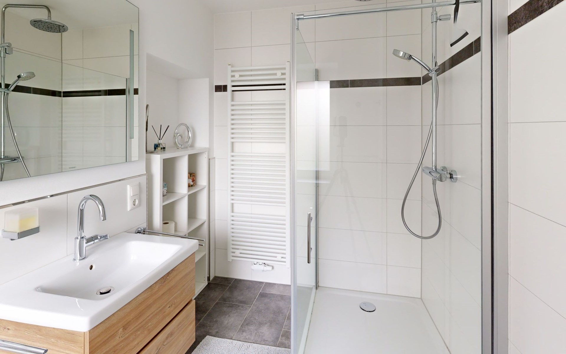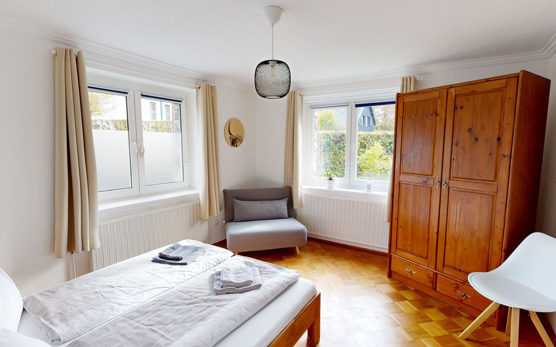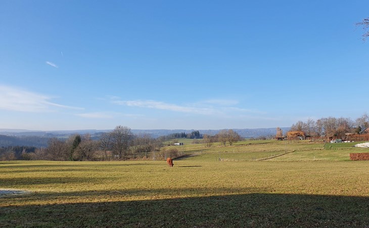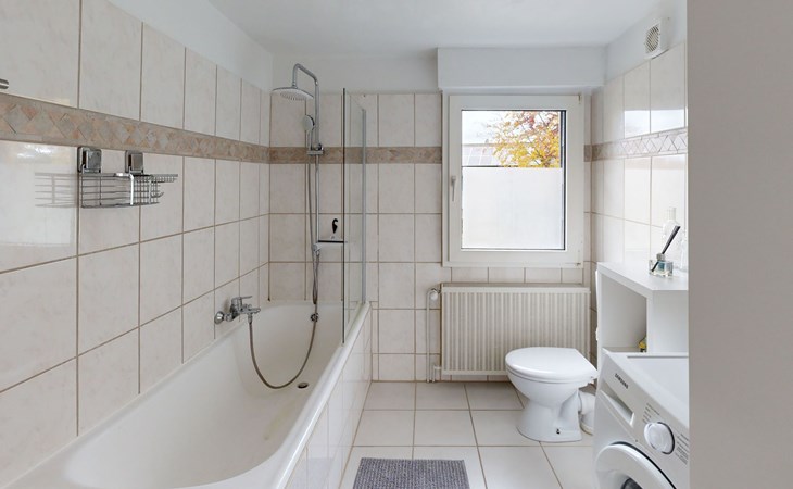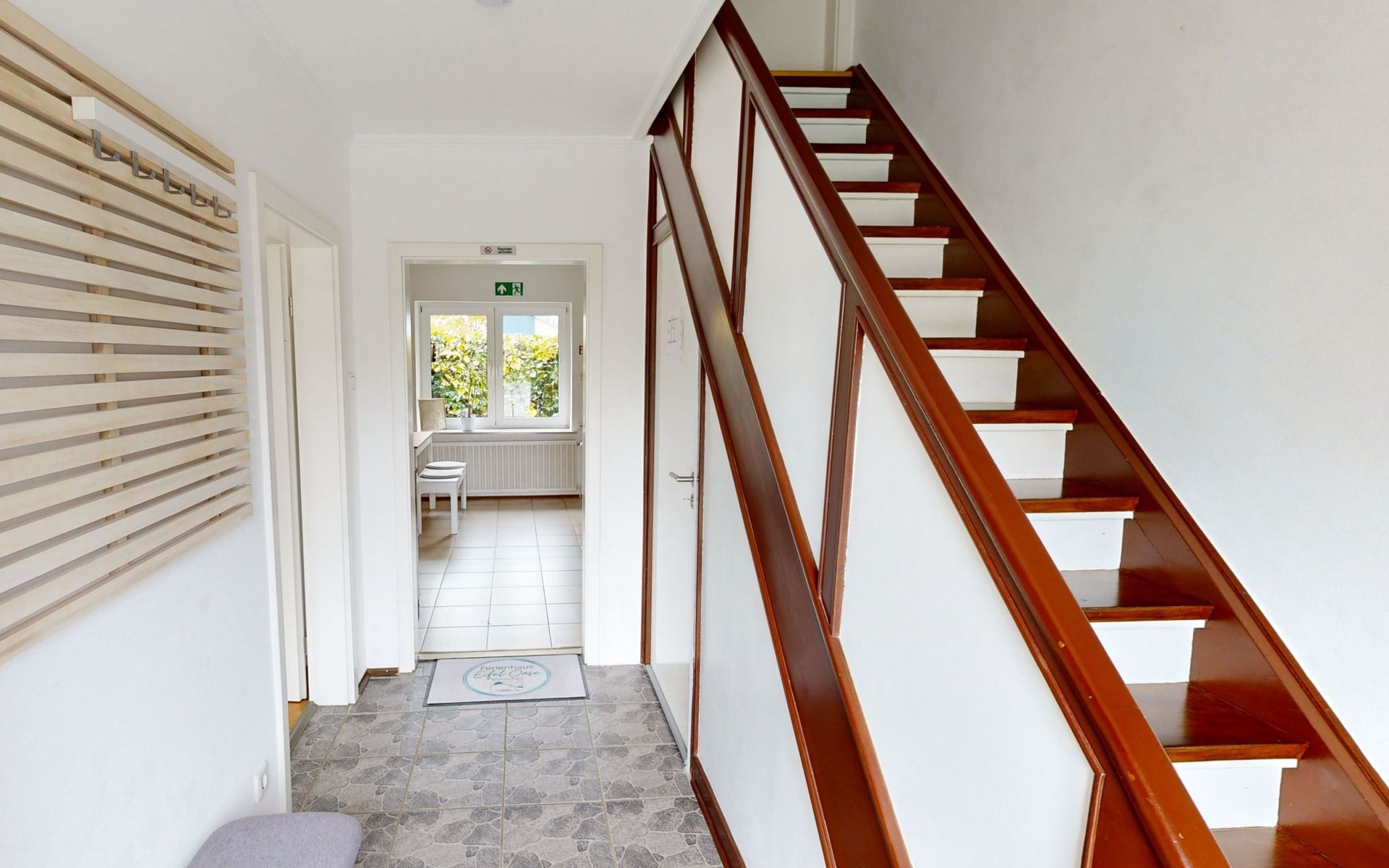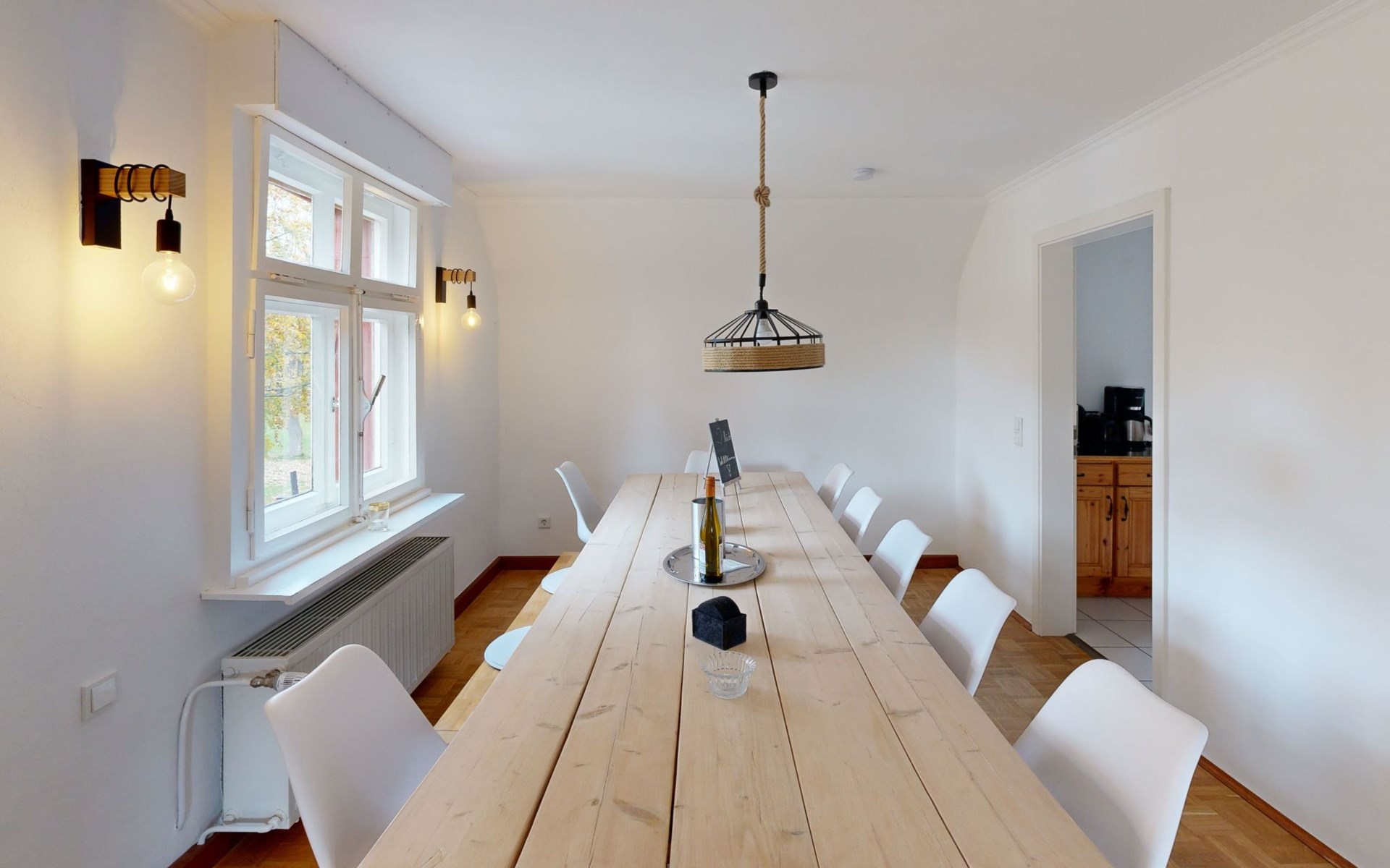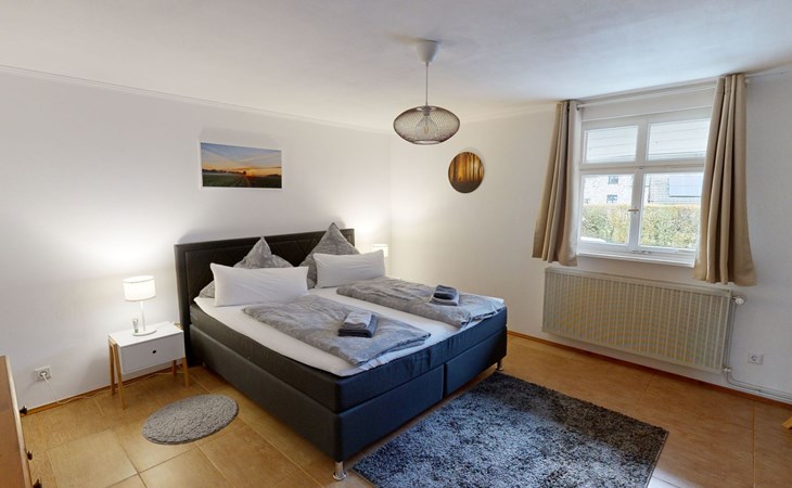 Dreamlike former farmhouse for 10-12 people in Monschau-Höfen Are you looking for a sustainable holiday home in the middle of the beautiful nature of the Eifel, where you can spend a cosy (short) holiday with up to 12 people? Would you also like to enjoy a little wellness in a sauna and a wood-fired hot tub? Then welcome to the Eifel Oasis Monschau.On two floors, the house offers 5 bedrooms with a total of 12 beds; 4 double beds (2 x 160 cm; 2 x 200 cm) and 1 bunk bed ensure a good night's sleep. There is also a sofa bed in 2 of the bedrooms to accommodate a maximum of 2 more people. In a large living room, 2 kitchens, a dining room and 2 bathrooms plus guest toilet, our guests have plenty of space in the house.both kitchens are fully equipped with electric cooker, oven and dishwasher as well as a microwave.in order to take account of the sustainability concept, we have implemented numerous measures, such as a modern pellet heating system, solar thermal energy, biodegradable detergents and cleaning agents, green electricity from Lichtblick, and of course waste separation.a TV set is of course part of the basic equipment of the Eifel Oasis. Younger guests are also catered for: a Playstation 4 with games for the older children is available, as is free Wi-Fi for exclusive use throughout the house (100 Mbit). Toys, a travel cot and a high chair are available for younger guests. Various toys and books are also freely available to our guests, as well as amenities such as a washing machine, iron and ironing board, and dogs are welcome on request. Bowls and a bed are available in the house if required.The outdoor areas of the Eifel Oasis are also spacious: two gardens with a sauna, a hot tub, plenty of seating and a charcoal barbecue promise relaxing moments. There are also 3 car parking spaces directly in front of the house. Use of the sauna is included per stay (usage times 08:00 to 22:00).Wellness area with barrel sauna and hot tub.The Eifel-Oase holiday home is less than 4 kilometres from the historic old town of Monschau and offers a wide range of leisure activities such as hiking, cycling and sightseeing on the edge of the Eifel National Park - Tor Höfen. The Vennradweg, the Eifelsteig, Vogelsang Castle and the Monschau Mustard Museum are all within easy reach of the holiday home. In winter, the beautiful Christmas market in the medieval old town is also enchanting. Regular shuttle buses ensure a smooth arrival and departure.
