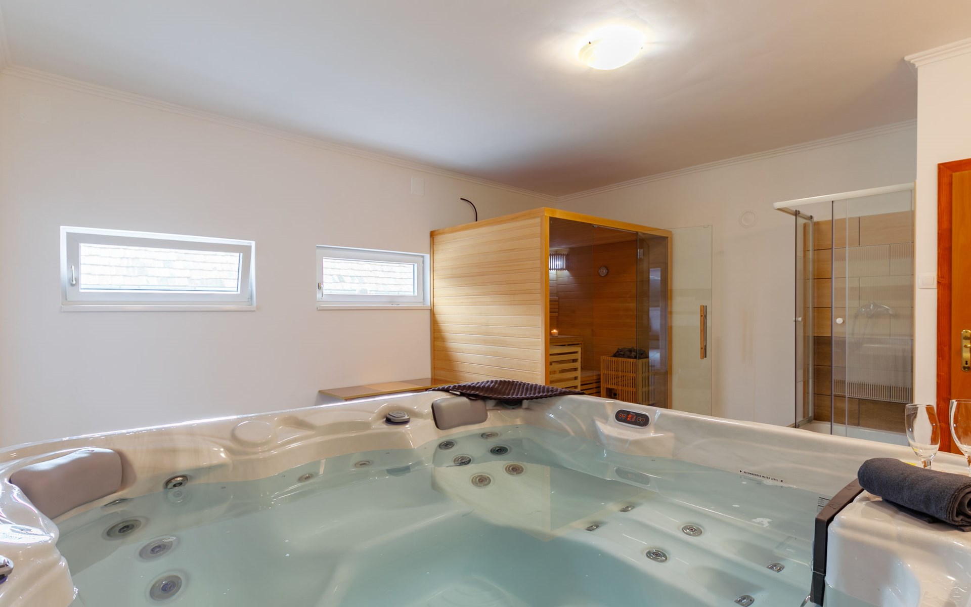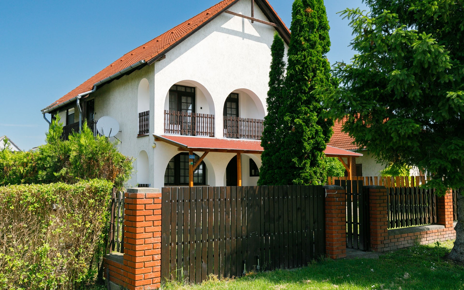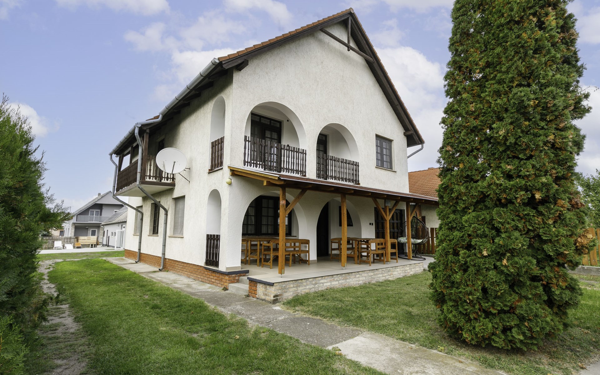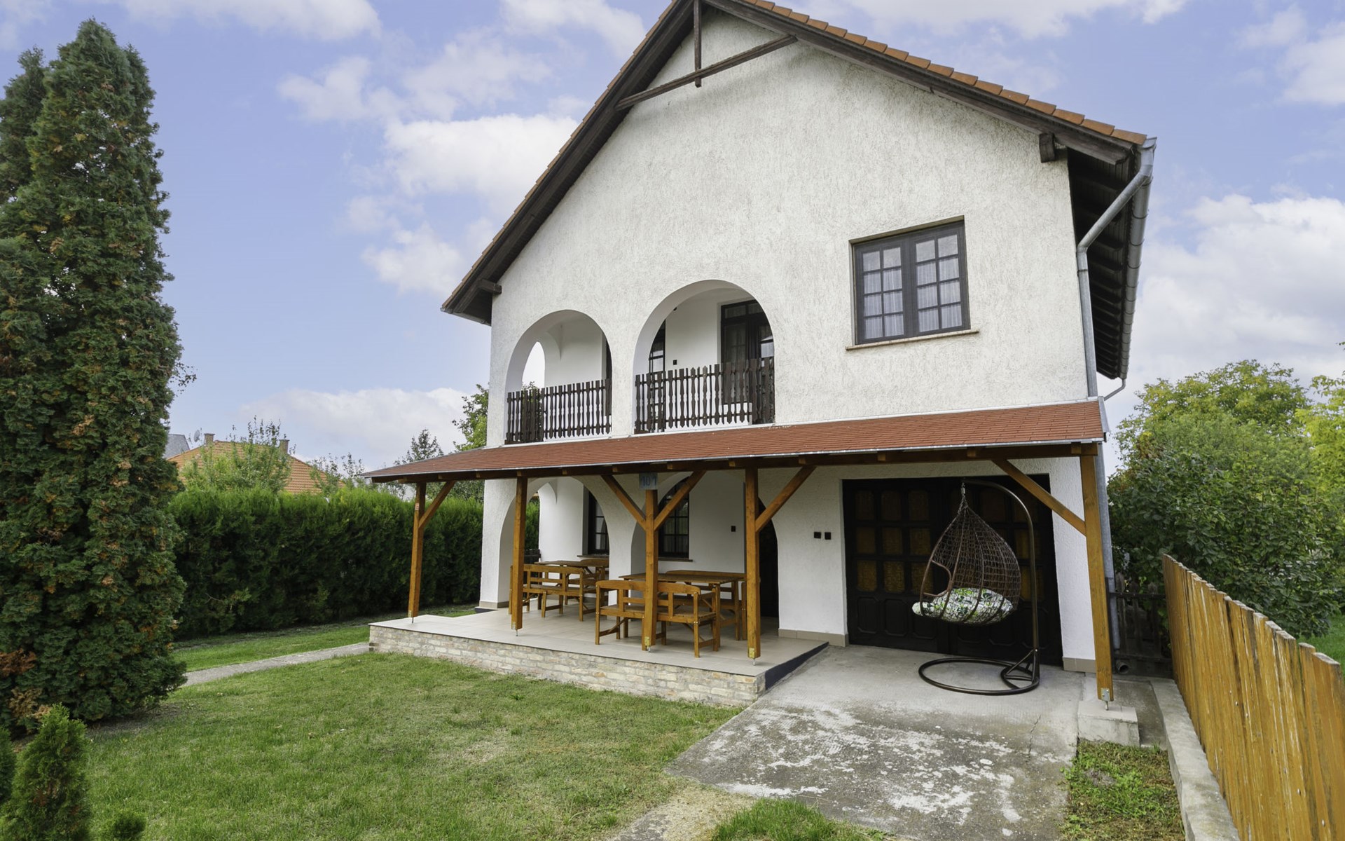 Balatonfenyves 25 km van Keszthely: Gezellig Huis met 2 woningen "Nimrod", van 2 verdiepingen. In de plaats, 800 m van het meer, 1.4 km van het strand. Voor alleengebruik: terrein 300 m2, overdekt zwembad verwarmd, geen inkijk (3 x 4 m, 120 cm diepte). Poolhouse met douche. In het huis: sauna, hot tub. Levensmiddelenwinkel 200 m, supermarkt 1.5 km, fietsverhuur 1.5 km, treinstation "Balatonfenyves alsó" 1.3 km, grasstrand 800 m, thermaalbad "Csisztapuszta" 13 km. Tennis 1 km, manege 1.8 km, fietspad 500 m, kinderspeelplaats 1 km. Attracties in de buurt: Kereki Dino Park 47 km, Kis-Balaton Visitor Center 20 km, Festetics Castle 27 km, Keszthely Giant Wheel 27 km, Kristinus Wine Estate 14 km, Hévíz Thermal Bath 32 km.