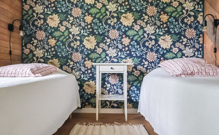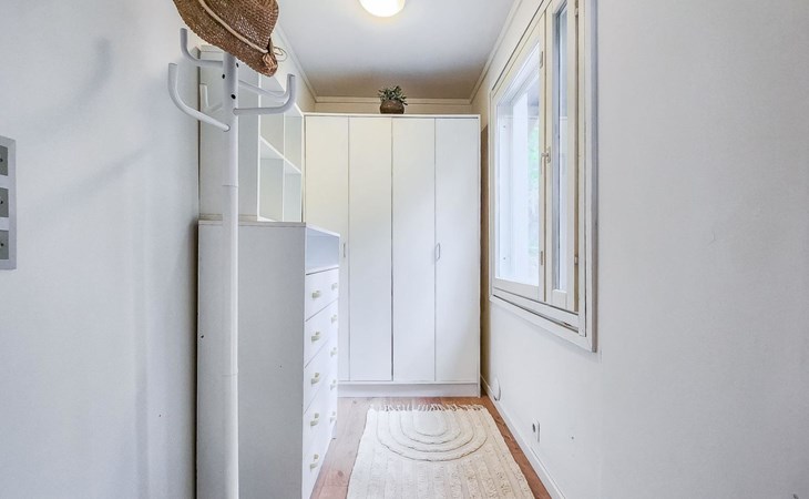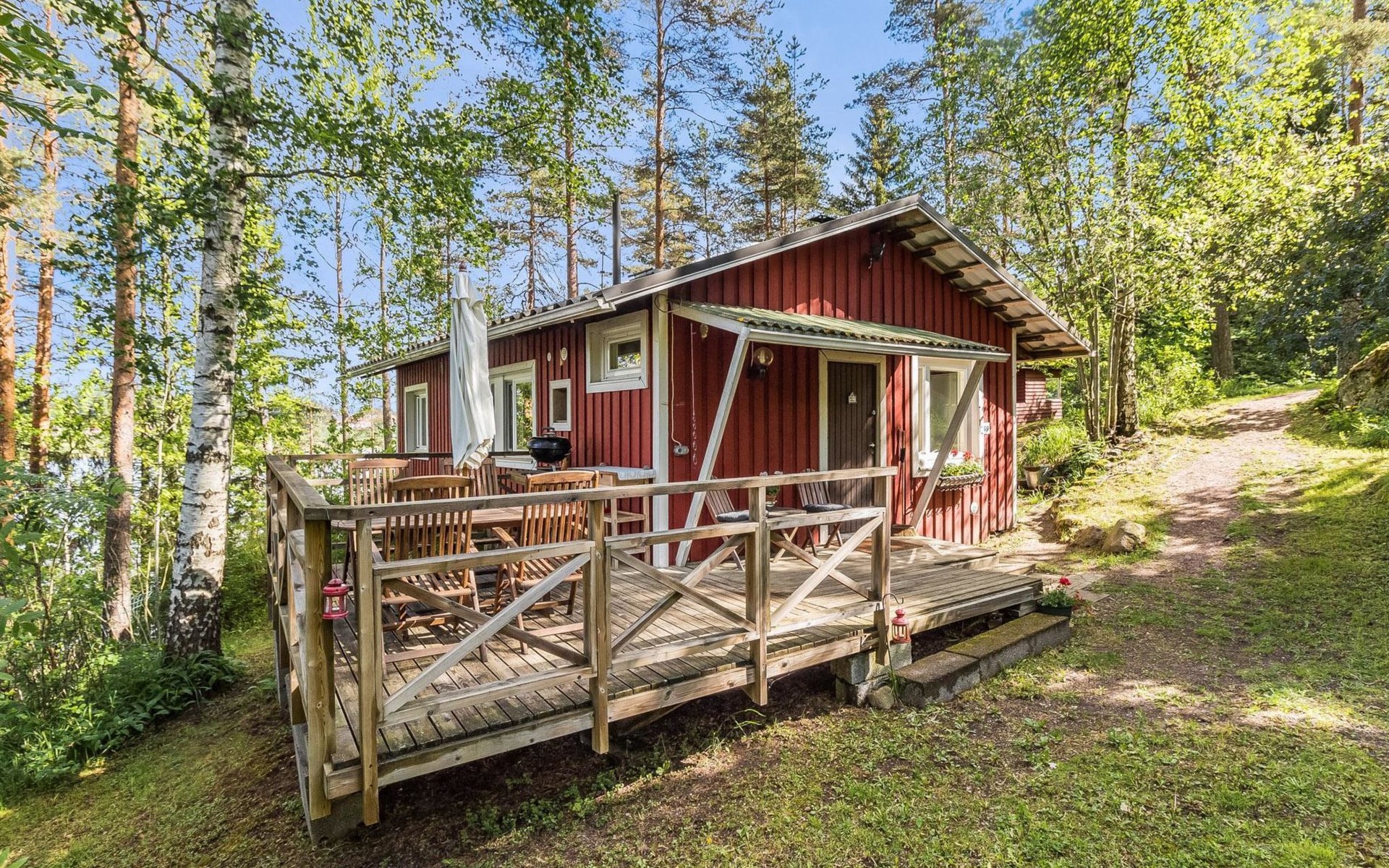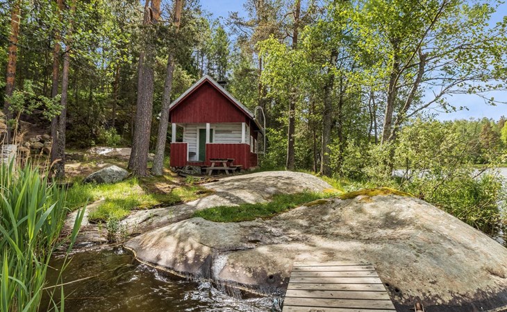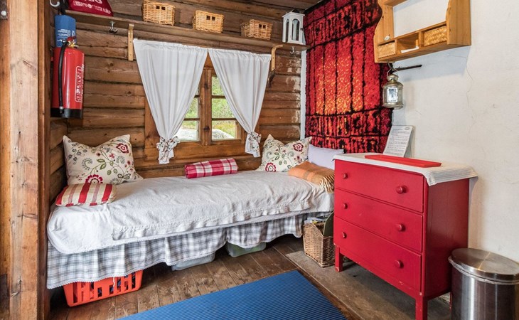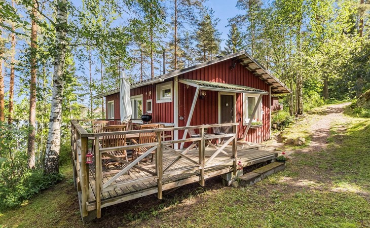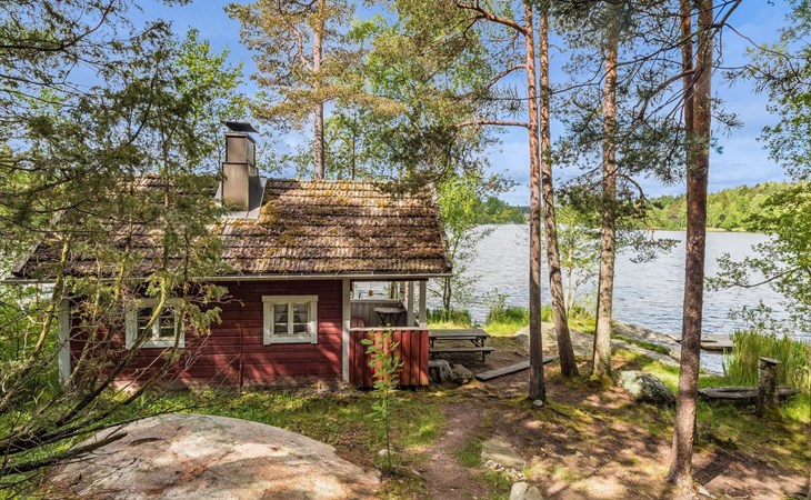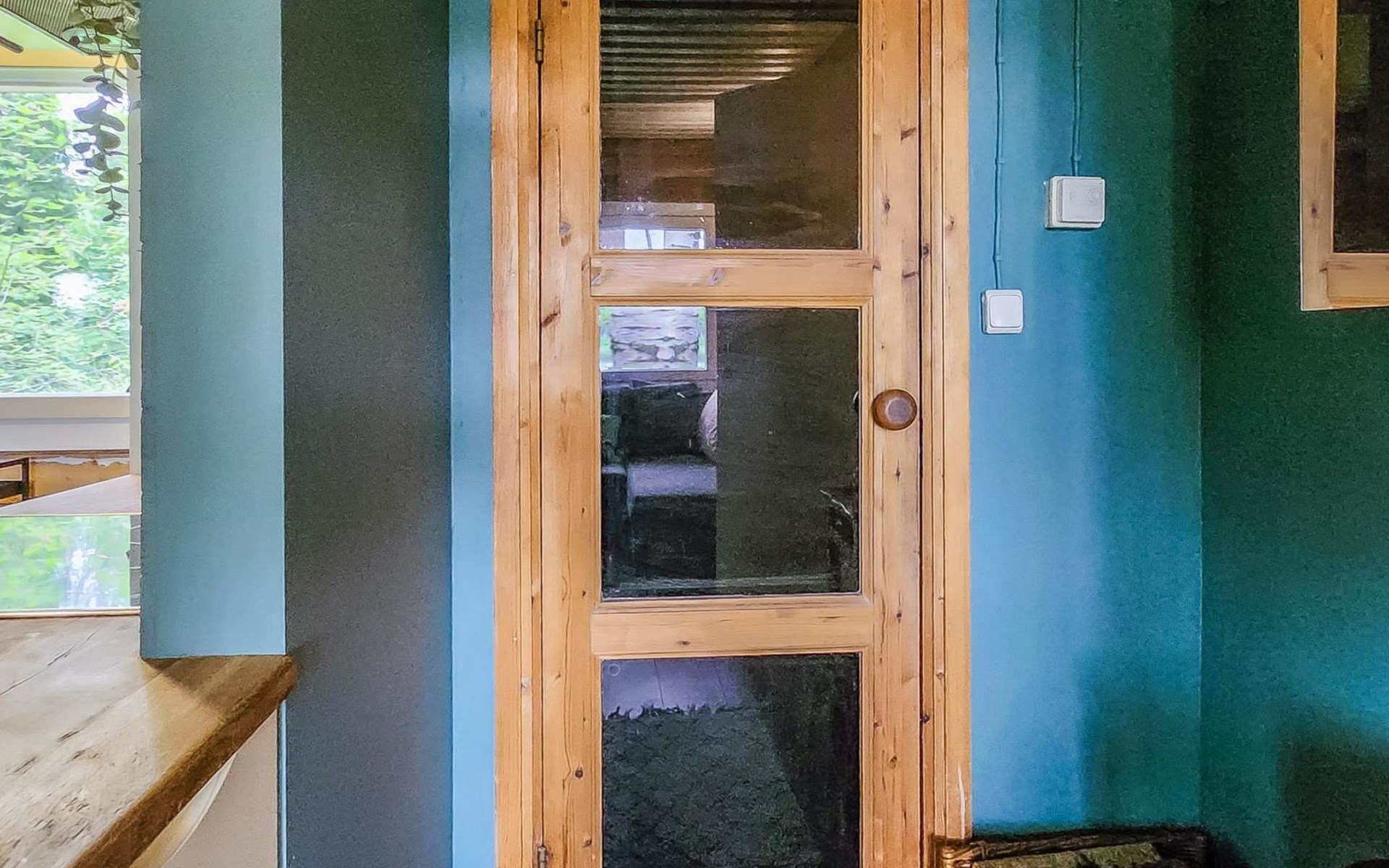 Wooden cottage 1959, renovated 1994, refurbished 2006 and 2024, living room/ kitchen sofa bed (1-2 persons, 140 cm) sleeping alcove with door: twin bed for 2, sleeping alcove with door: separate beds 2 x 80 cm, small (wood heated) sauna indoors, shower is in sauna, laundry area with sink.