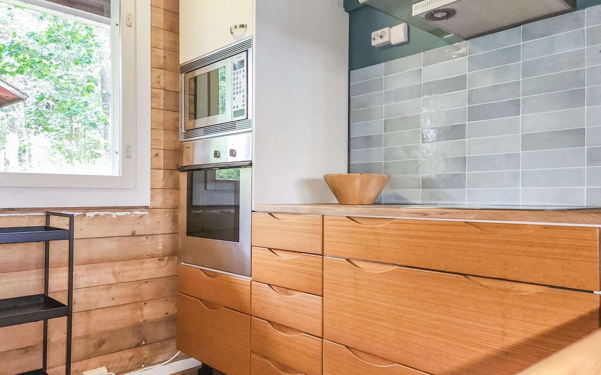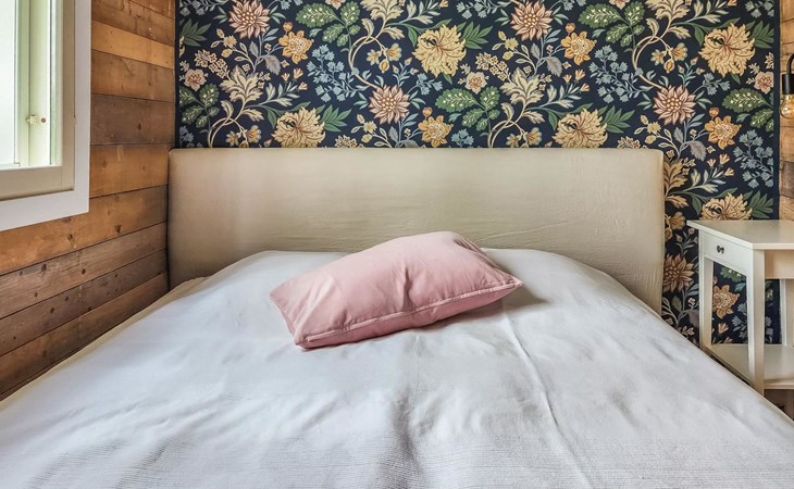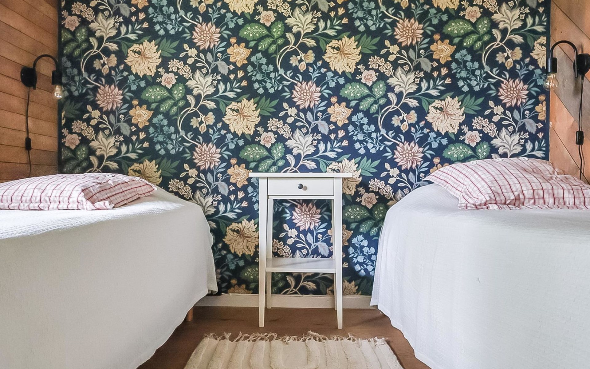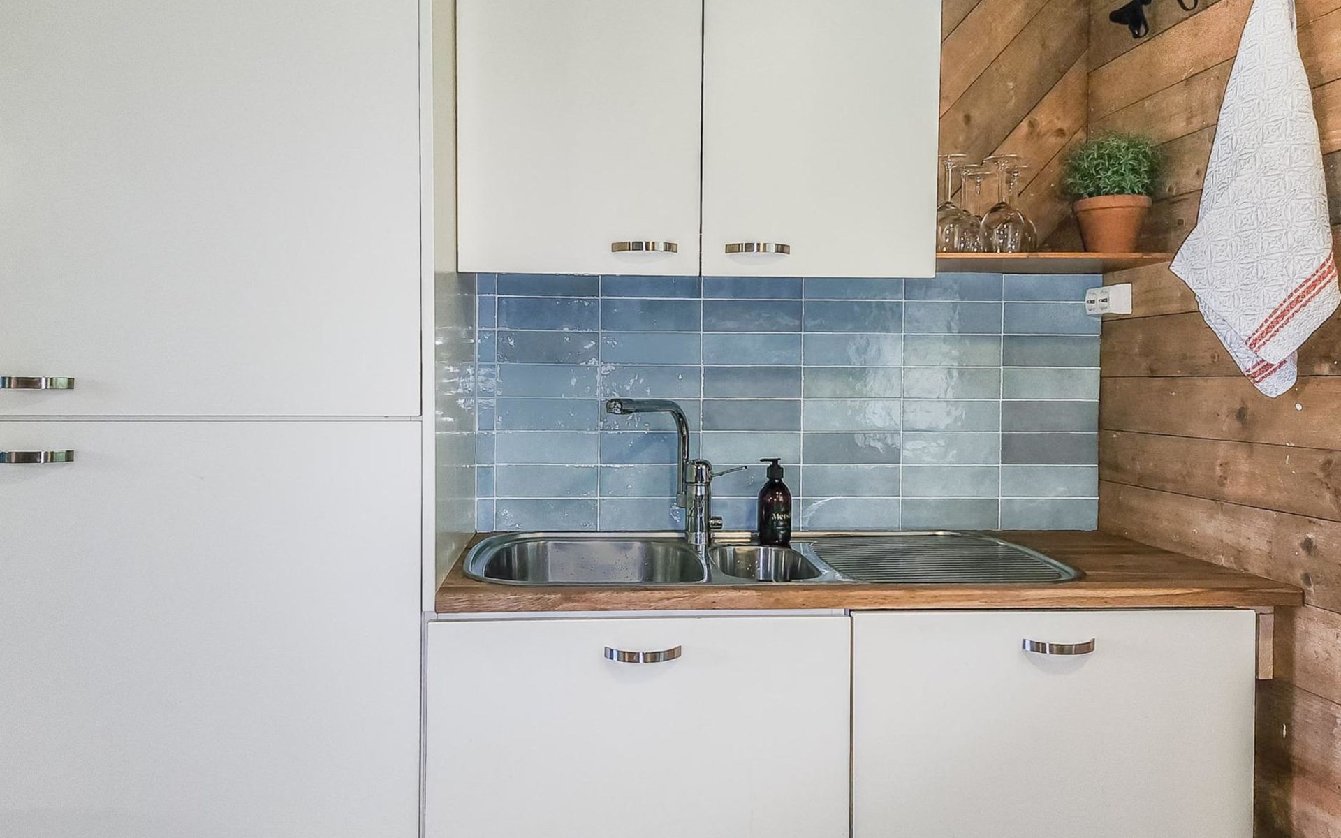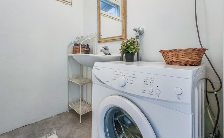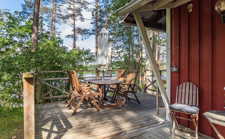Wooden cottage 1959, renovated 1994, refurbished 2006 and 2024, living room/ kitchen sofa bed (1-2 persons, 140 cm) sleeping alcove with door: twin bed for 2, sleeping alcove with door: separate beds 2 x 80 cm, small (wood heated) sauna indoors, shower is in sauna, laundry area with sink.
