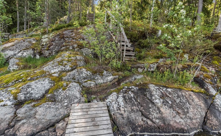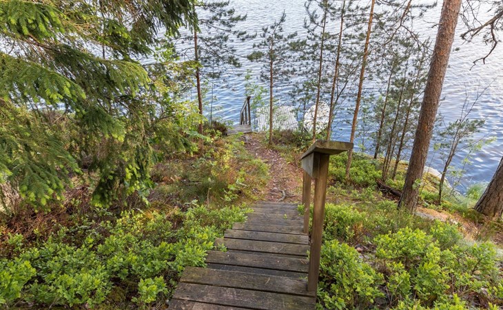 Steep slope to the shore (about 30 m), several stairs on the way.