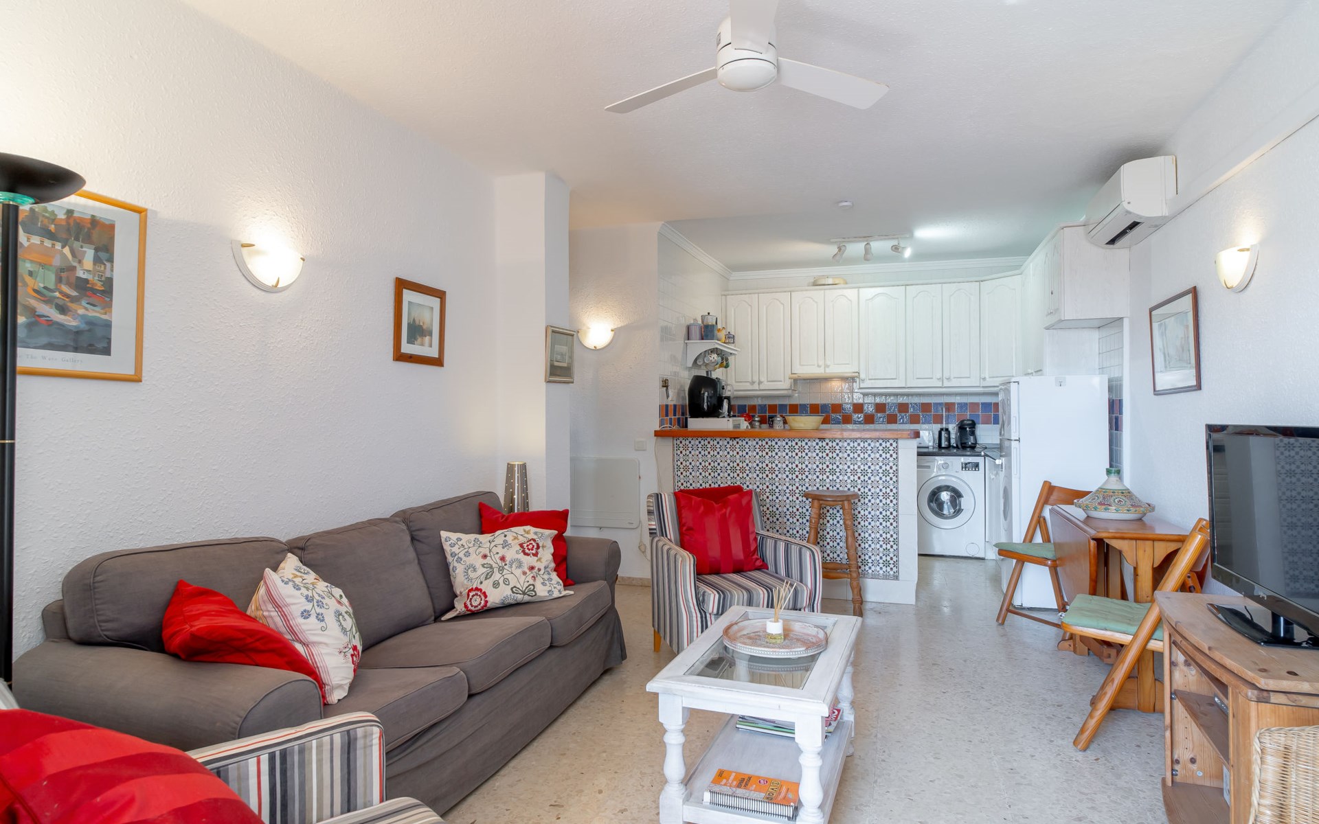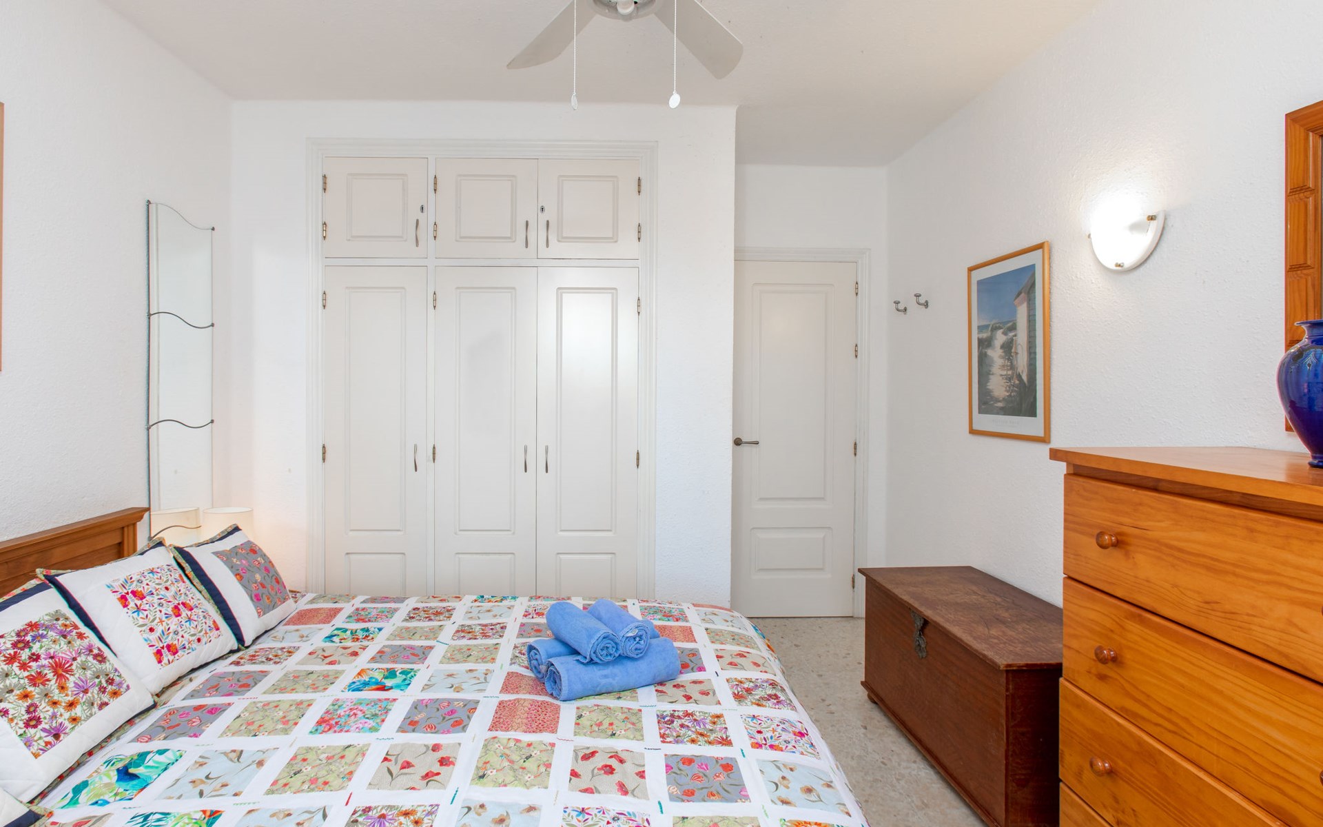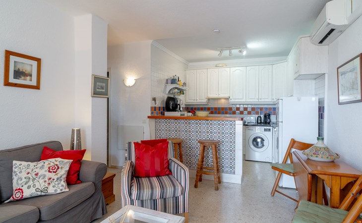 Nerja: Gezellig, comfortabel flatgebouw "Capuchinos San Juan de Capistrano". In de plaats, 2 km van het centrum van Nerja, rustige, zonnige ligging villa wijk, 2 km van zee, 2 km van het strand, op het zuiden. Voor medegebruik: tuin, openluchtzwembad omheind (15 x 8 m, 100 - 200 cm diepte, seizoensgebonden beschikbaarheid: 01.Apr. - 01.Nov.). Douche/WC bij het zwembad. Voor alleengebruik: binnenplaats. Winkel, levensmiddelenwinkel, supermarkt 1 km, winkelcentrum 24 km, restaurant, bakkerij 200 m, café 200 m, voetgangersgebied 2 km, biertuin 1 km, bushalte 50 m, station "Malaga" 50 km, zandstrand "Burriana" 2 km, duikschool 2 km. Jachthaven 20 km, jachthaven 20 km, golfterrein (18 holes) 24 km, surfschool 17 km, tennis 1 km. Attracties in de buurt: Frigiliana, Almuñecar, Malaga, Granada, Maro, Competa. Bekende skigebieden kunnen gemakkelijk worden bereikt: Sierra Nevada. Wandelgebied Sierra Tejeda, Sierra Almijara. Auto noodzakelijk. De eigenaar accepteert geen jeugdgroepen. Laden en lossen van de baggage is mogelijk bij het huis.