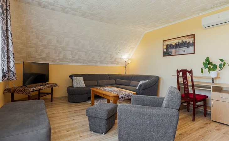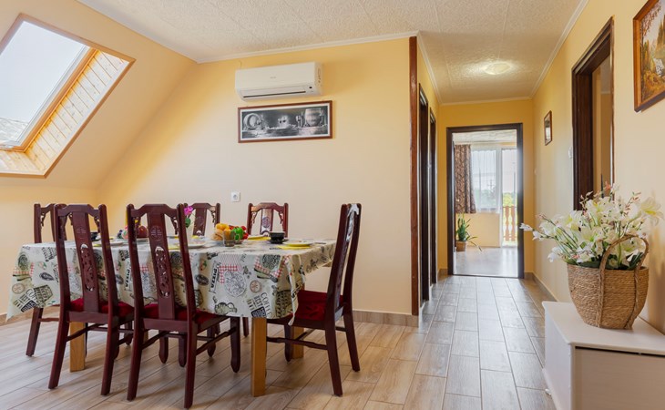 Balatonfenyves 25 km van Keszthely: Comfortabel Huis met 2 woningen van 2 verdiepingen, gerenoveerd in 2022. 2 appartementen in de woning. In de plaats, in een woonwijk, 700 m van het meer, 1.6 km van het strand. Voor alleengebruik: terrein (omheind), kleine tuin. Tuinmeubelen, barbecue. In het huis: Internet (WiFi), air-conditioning, wasmachine. Parkeerplaats (voor 2 auto's) bij het huis. Levensmiddelenwinkel 200 m, supermarkt 1.5 km, fietsverhuur 1.5 km, grasstrand 800 m, thermaalbad "Csisztapuszta" 13 km. Tennis 1 km, manege 1.8 km, fietspad 500 m, kinderspeelplaats 1 km. Attracties in de buurt: Kereki Dino Park 47 km, Kis-Balaton Visitor Center 20 km, Festetics Castle 27 km, Keszthely Giant Wheel 27 km, Kristinus Wine Estate 14 km, Hévíz Thermal Bath 32 km. Eigenaar woont in apart huisgedeelte.