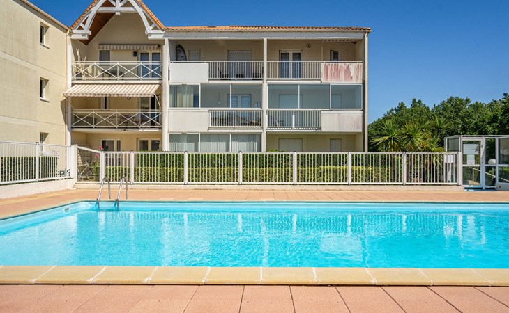 Vaux sur Mer 2 km van Royan: Residentie "Les Jardins de l'Océan". In de wijk Pontaillac, aan de rand van de plaats, 1.7 km van het centrum van Vaux sur Mer, buiten de plaats, 2.5 km van het centrum van Royan, drukke ligging in een woonwijk, 300 m van zee, 300 m van het strand. Voor medegebruik: tuin (niet omheind) met gazon en bomen, openluchtzwembad hoekig beveiligd (100 - 160 cm diepte, seizoensgebonden beschikbaarheid: 01.Jul. - 31.Aug.). Parkeerplaats bij het huis, openbare parkeerplaatsen in de straat. Winkel 300 m, supermarkt 1.3 km, restaurant, bar, bakkerij, café 300 m, bushalte "Porte Océane" 300 m, station "Royan" 3 km, zandstrand "Pontaillac" 300 m, park "Luna Park (Juillet-Août)" 17 km, overdekt zwembad 3 km, thermaalbad "Thalassothérapie Thalazur Royan" 2 km, meer Métairie - Royan 1.7 km. Jachthaven 2.5 km, golfterrein (18 holes) 6 km, surfschool 300 m, zeilschool 2.5 km, tennis 2 km, tennishal 2 km, midgetgolf 700 m, manege 6 km, fietspad 100 m. Attracties in de buurt: Zoo de La Palmyre 12 km, Hippodrome - La Palmyre 13 km, Centre aquatique Iléo - Ile d'Oléron 45 km, Fort Boyard - Fouras 55 km, Aéroport La Rochelle - Ile de Ré 80 km, Aéroport Bordeaux - Merignac 130 km. De sleuteloverdracht vindt plaats bij het agentschap Interhome in Vaux sur Mer. Vergelijkbare accommodaties kunnen worden geboekt.