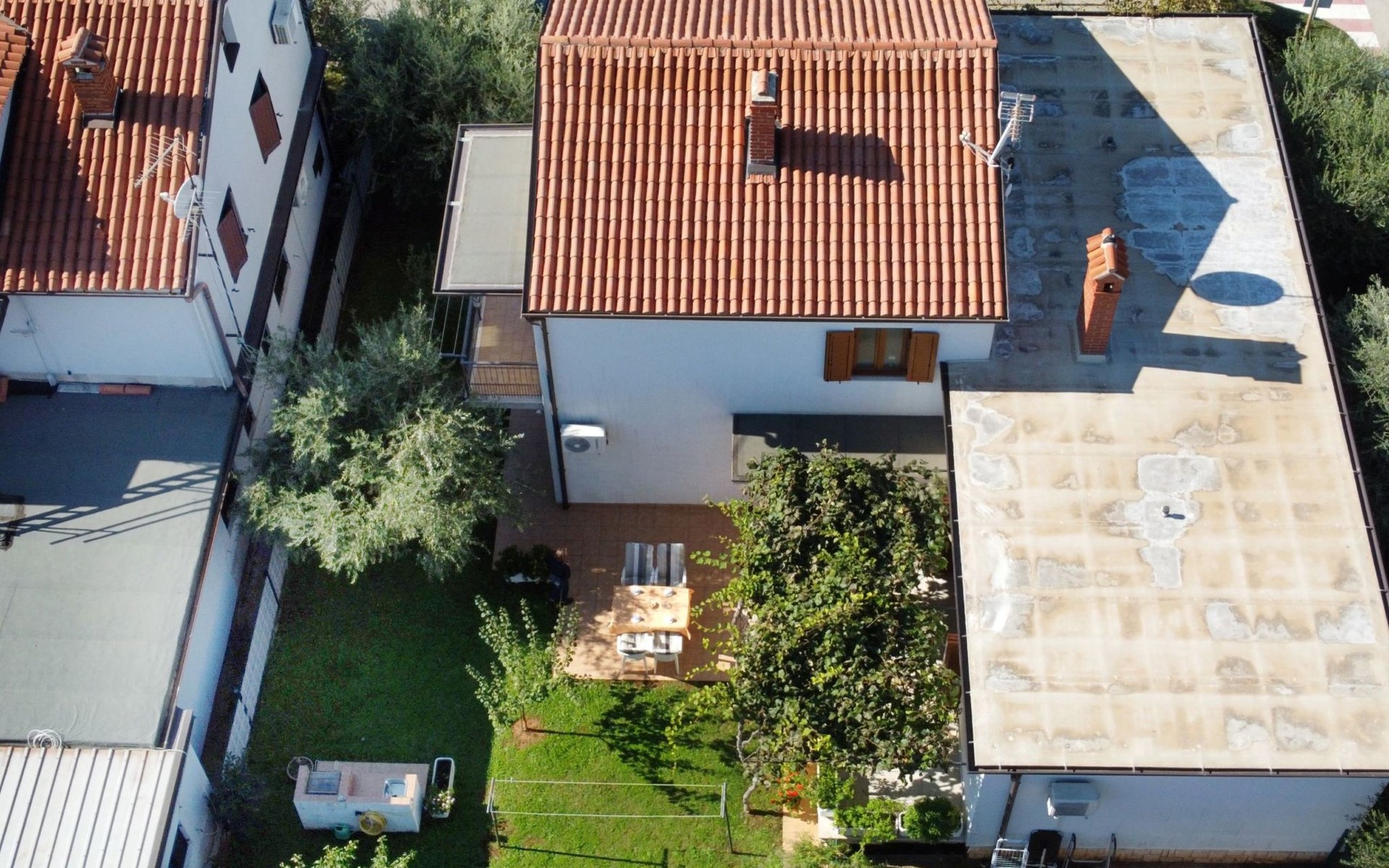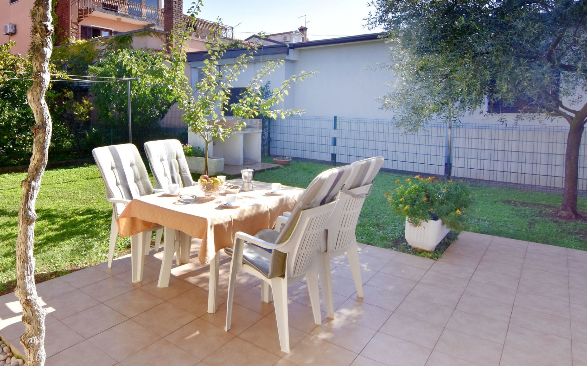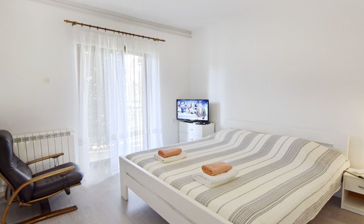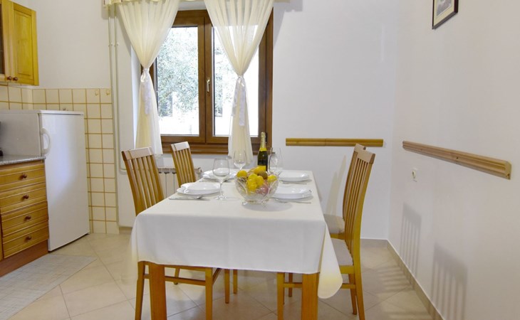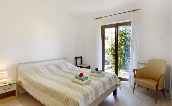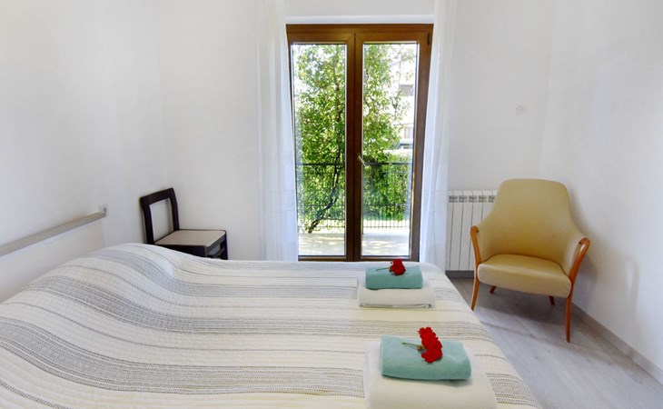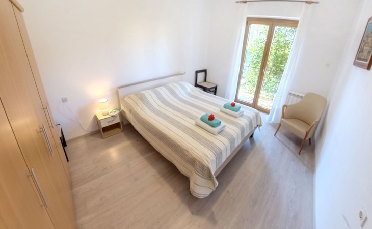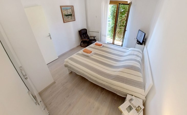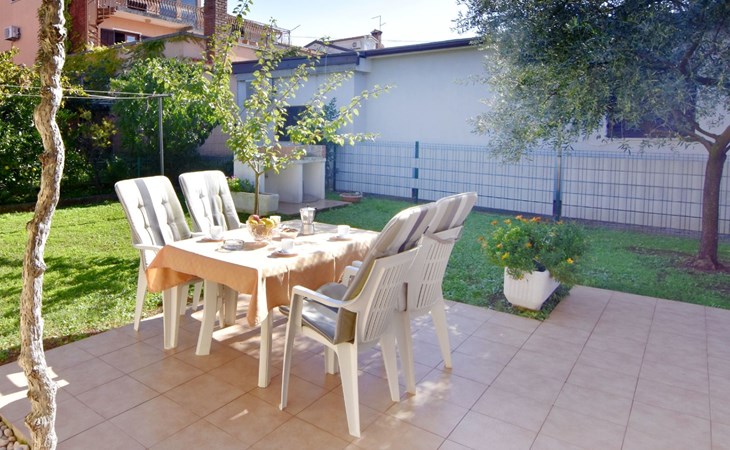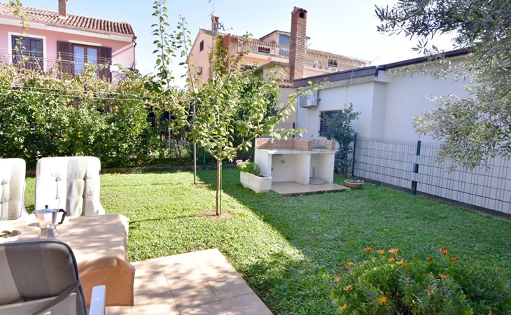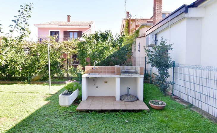 The simple, air-conditioned 55m2 apartment is located on the ground floor of a family house with garden, garden furniture and private entrance. The beach and the center of Umag are easily reachable on foot in a few minutes. The area is quiet and central. It has 2 bedrooms with double beds and a garden so it is ideal for two couples of friends, families or for those who want not to use the car during the holiday. The apartment consists of two bedrooms with double beds (160x200), bedside tables, night lamps, and wardrobes, exit to the terrace.Bed linen is provided (changed weekly).The bathroom with shower, toilet, bidet, sink with wardrobe and mirror, two towels per person are provided (changed weekly).The fully equipped eat-in kitchen with refrigerator with freezer area, oven, hob with 3 gas and one electric burner, extractor hood, kettle, coffee maker, dining table with 4 chairs, satellite TV and DVD, free Wi-Fi Internet connection, air conditioner.A utility room with a washing machine available.At the entrance, there is a terrace overlooking the garden furnished with a table, chairs, and umbrella.In the well-kept garden, the barbecue is for shared use with the owners of the house.Free parking near the house.The location is excellent for those who do not like to travel by car during the holiday due to the proximity to the beaches and the city center.The closest beach at 150m is sandy with concrete areas on the shore and a fast-food restaurant on the coast offering great menus and hammocks in the sea. . The rocky beach is called Africa is 300 meters from the apartment. Both beaches are easily reachable on foot in a few minutes.Attached to the Africa beach is a bar where you can enjoy a good coffee, cold drinks or fast food, as well as a volleyball court.The park with pine trees 200 m from the house, the city center, bakery, supermarket, bars, restaurants 300-400 m, all within easy walking distance. In the center of Umag, it is worth visiting the museum, the aquarium, the cathedral, or taking a walk along the famous Umag Dam and exploring the narrow and interesting streets of the historical center of Umag or visiting the stalls. There are various leisure facilities nearby: Tennis courts, the Adriatic Golf Club with 18 holes, horse riding, water sports, night clubs, adrenaline park, mini-golf course, fishing. It is also possible to go on various organized excursions by boat or bus. The area is full of renowned restaurants, simple restaurants, pizzerias, fast food restaurants, and bars. We recommend visiting the Istrian hinterland for days away from the beach or to spend the evenings. Very interesting is the artists' village of Grožnjan, Motovun, the typical medieval town on a hill, famous for the film festival held every year at the end of July. The village of Livade is very famous for its white truffles. For cave lovers, visit the Baredine Cave. Don't miss the opportunity to visit Hum, the smallest town in the world, only 60 km from Umag. Interesting are also the places on the coast such as NP Brijuni, Pula, Rovinj, and Poreč. Organize different fish picnic boat trips where you have the opportunity to visit Rovinj and Poreč or Novigrad. The day trip by hydrofoil to Venice. To visit the water park Istralandia 20 km from Umag to the delight of children and the Dinopark in Vrsar, there is guaranteed fun. For gourmets, various possibilities for tasting wines, cheeses, olive oil, typical Istrian ham, and much more. For organized excursions, we recommend the agency Trevitours.* Registration on the first day, to be paid on the spot on arrival. * Pets are allowed (only small ones, up to 10 kg) Additional costs, to be paid on site on arrival. * Guests are requested to use the equipment with care. * It is forbidden to smoke inside, but you can smoke on the terrace. * For damages caused, guests are asked to inform the owner or the agency that after a careful assessment of the damage, the cost of the damage will be charged on the spot.Short descriptionOther : Non-smoking houseShort description 1Number of kitchens : 1Bathroom 1Other bathroom equipment : Washing machineSurroundingNearby sports facilities : Basketball, Bike tours, Diving, Fishing, Football area, Golf course, Hunting facilities, Mountainbiking, Riding possibilities, Sailing, Sport center, Surfing, Tennis, Water skiingRental Facilities : Bicycle rental service, Boat rental service, car rentalGarden and outdoorGarden facilities : Garden furniture provided, GrillService benefitsService facilities (may incur additional costs) : Transfer service (airport etc)