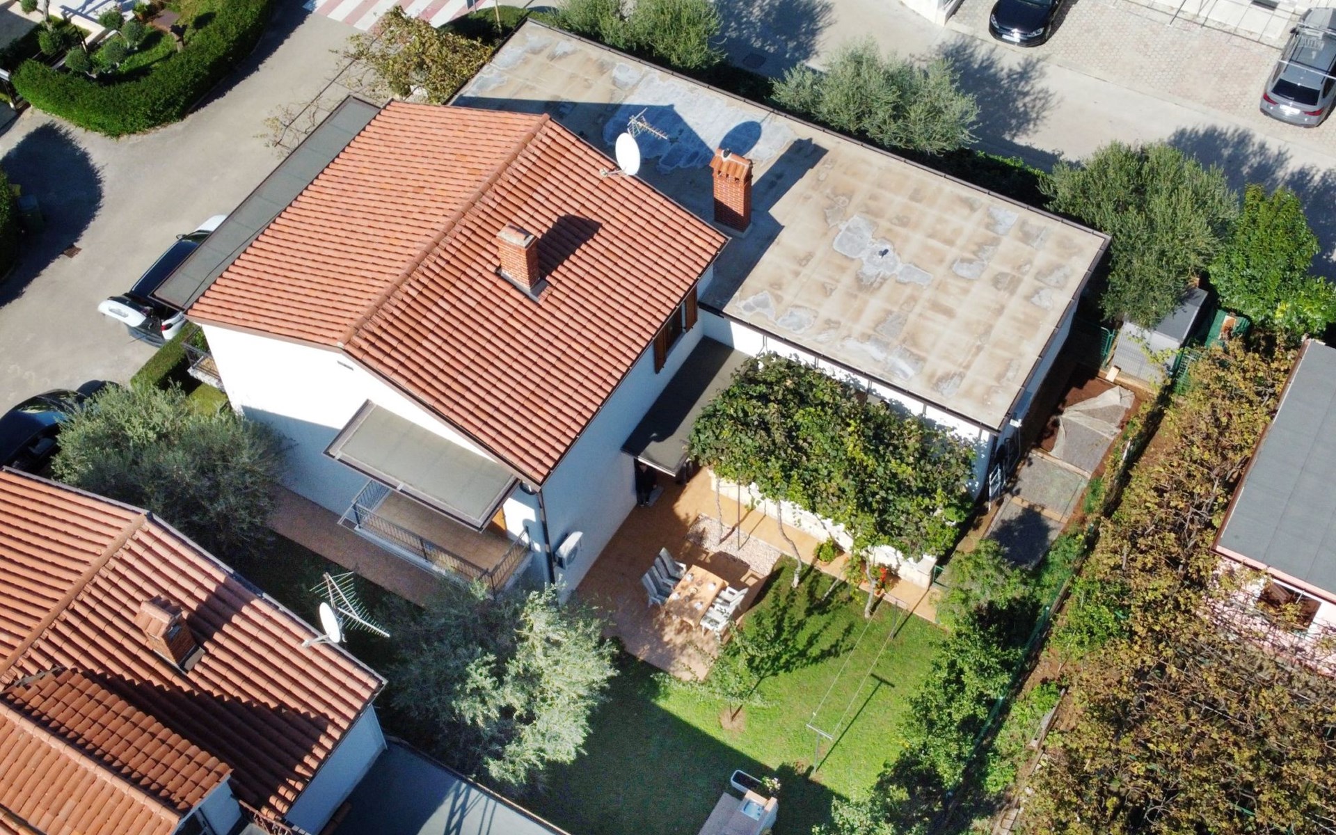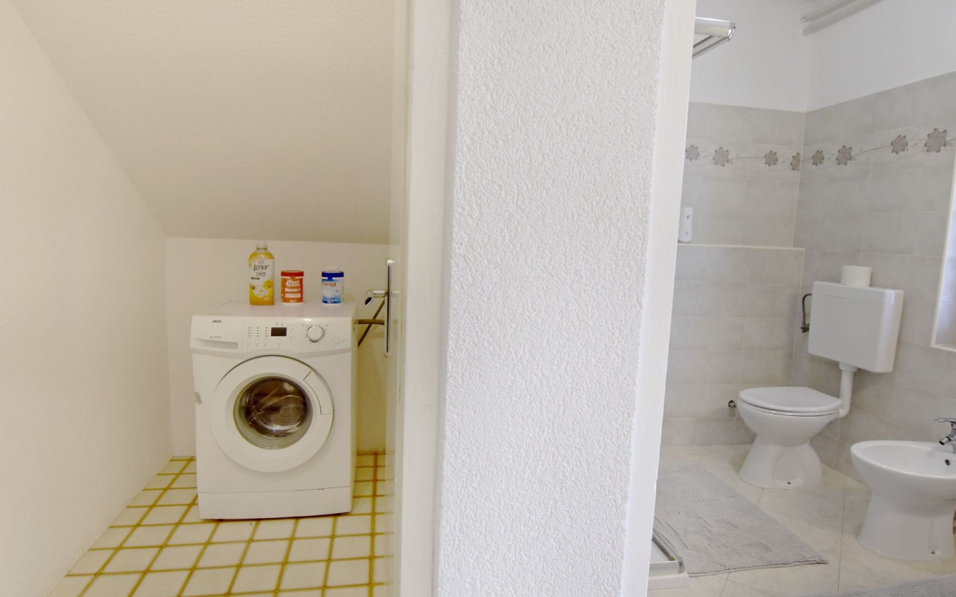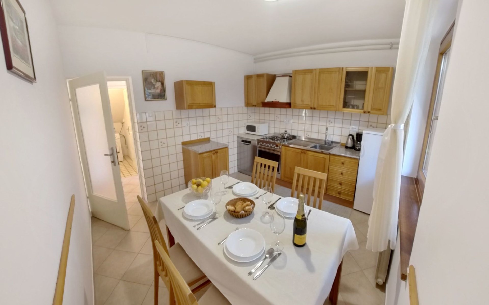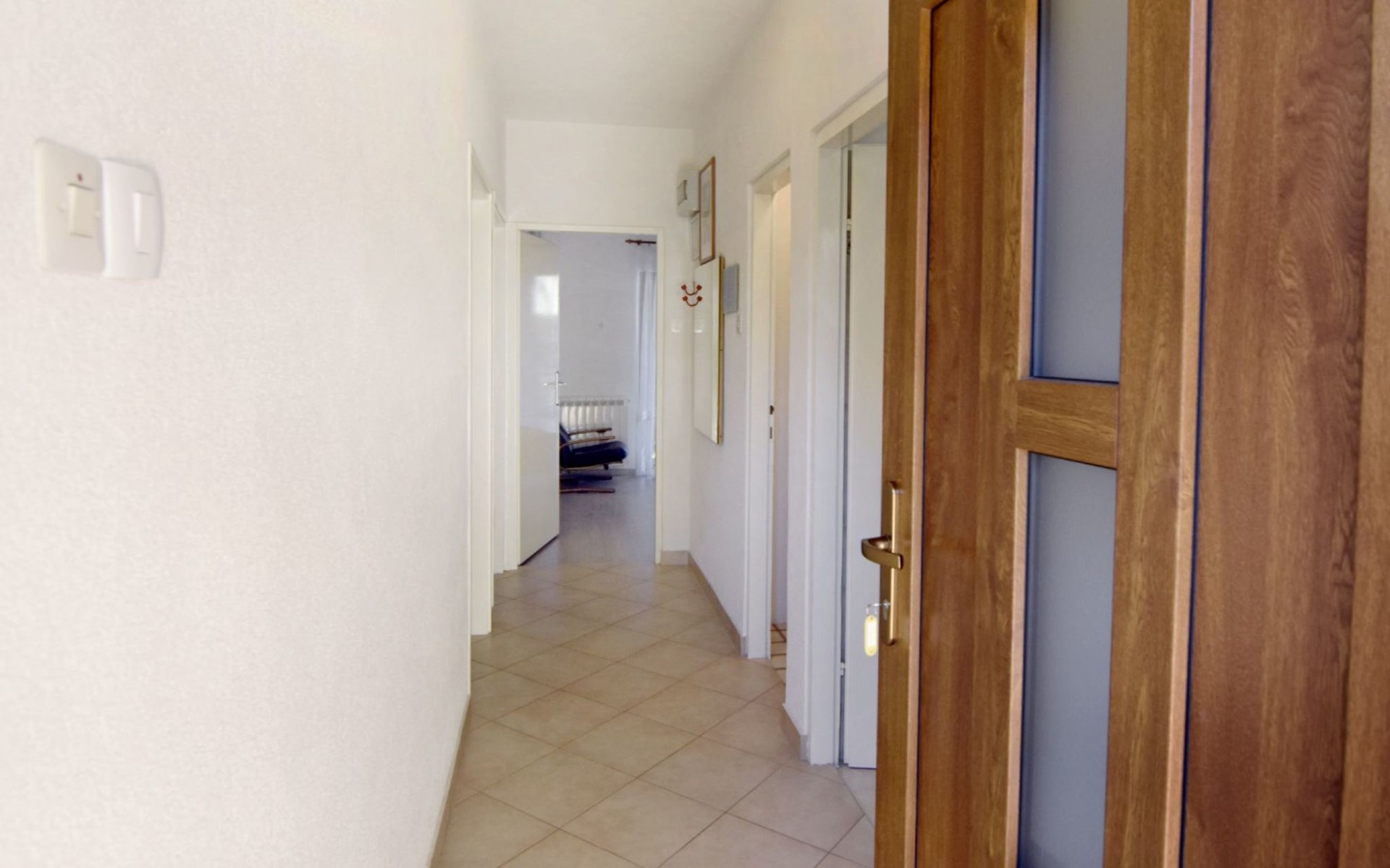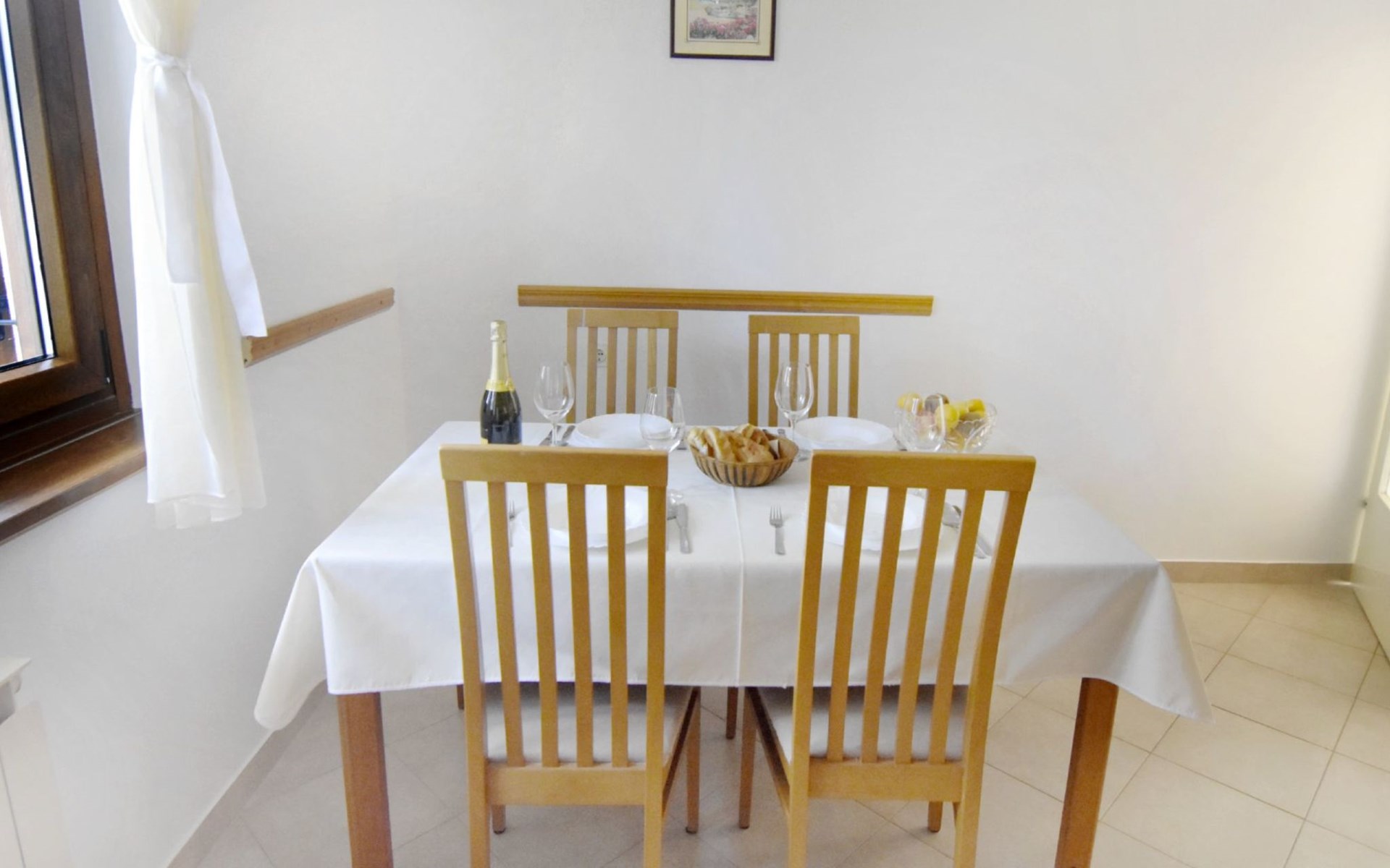 The simple, air-conditioned 55m2 apartment is located on the ground floor of a family house with garden, garden furniture and private entrance. The beach and the center of Umag are easily reachable on foot in a few minutes. The area is quiet and central. It has 2 bedrooms with double beds and a garden so it is ideal for two couples of friends, families or for those who want not to use the car during the holiday. The apartment consists of two bedrooms with double beds (160x200), bedside tables, night lamps, and wardrobes, exit to the terrace.Bed linen is provided (changed weekly).The bathroom with shower, toilet, bidet, sink with wardrobe and mirror, two towels per person are provided (changed weekly).The fully equipped eat-in kitchen with refrigerator with freezer area, oven, hob with 3 gas and one electric burner, extractor hood, kettle, coffee maker, dining table with 4 chairs, satellite TV and DVD, free Wi-Fi Internet connection, air conditioner.A utility room with a washing machine available.At the entrance, there is a terrace overlooking the garden furnished with a table, chairs, and umbrella.In the well-kept garden, the barbecue is for shared use with the owners of the house.Free parking near the house.The location is excellent for those who do not like to travel by car during the holiday due to the proximity to the beaches and the city center.The closest beach at 150m is sandy with concrete areas on the shore and a fast-food restaurant on the coast offering great menus and hammocks in the sea. . The rocky beach is called Africa is 300 meters from the apartment. Both beaches are easily reachable on foot in a few minutes.Attached to the Africa beach is a bar where you can enjoy a good coffee, cold drinks or fast food, as well as a volleyball court.The park with pine trees 200 m from the house, the city center, bakery, supermarket, bars, restaurants 300-400 m, all within easy walking distance. In the center of Umag, it is worth visiting the museum, the aquarium, the cathedral, or taking a walk along the famous Umag Dam and exploring the narrow and interesting streets of the historical center of Umag or visiting the stalls. There are various leisure facilities nearby: Tennis courts, the Adriatic Golf Club with 18 holes, horse riding, water sports, night clubs, adrenaline park, mini-golf course, fishing. It is also possible to go on various organized excursions by boat or bus. The area is full of renowned restaurants, simple restaurants, pizzerias, fast food restaurants, and bars. We recommend visiting the Istrian hinterland for days away from the beach or to spend the evenings. Very interesting is the artists' village of Grožnjan, Motovun, the typical medieval town on a hill, famous for the film festival held every year at the end of July. The village of Livade is very famous for its white truffles. For cave lovers, visit the Baredine Cave. Don't miss the opportunity to visit Hum, the smallest town in the world, only 60 km from Umag. Interesting are also the places on the coast such as NP Brijuni, Pula, Rovinj, and Poreč. Organize different fish picnic boat trips where you have the opportunity to visit Rovinj and Poreč or Novigrad. The day trip by hydrofoil to Venice. To visit the water park Istralandia 20 km from Umag to the delight of children and the Dinopark in Vrsar, there is guaranteed fun. For gourmets, various possibilities for tasting wines, cheeses, olive oil, typical Istrian ham, and much more. For organized excursions, we recommend the agency Trevitours.* Registration on the first day, to be paid on the spot on arrival. * Pets are allowed (only small ones, up to 10 kg) Additional costs, to be paid on site on arrival. * Guests are requested to use the equipment with care. * It is forbidden to smoke inside, but you can smoke on the terrace. * For damages caused, guests are asked to inform the owner or the agency that after a careful assessment of the damage, the cost of the damage will be charged on the spot.Short descriptionOther : Non-smoking houseShort description 1Number of kitchens : 1Bathroom 1Other bathroom equipment : Washing machineSurroundingNearby sports facilities : Basketball, Bike tours, Diving, Fishing, Football area, Golf course, Hunting facilities, Mountainbiking, Riding possibilities, Sailing, Sport center, Surfing, Tennis, Water skiingRental Facilities : Bicycle rental service, Boat rental service, car rentalGarden and outdoorGarden facilities : Garden furniture provided, GrillService benefitsService facilities (may incur additional costs) : Transfer service (airport etc)