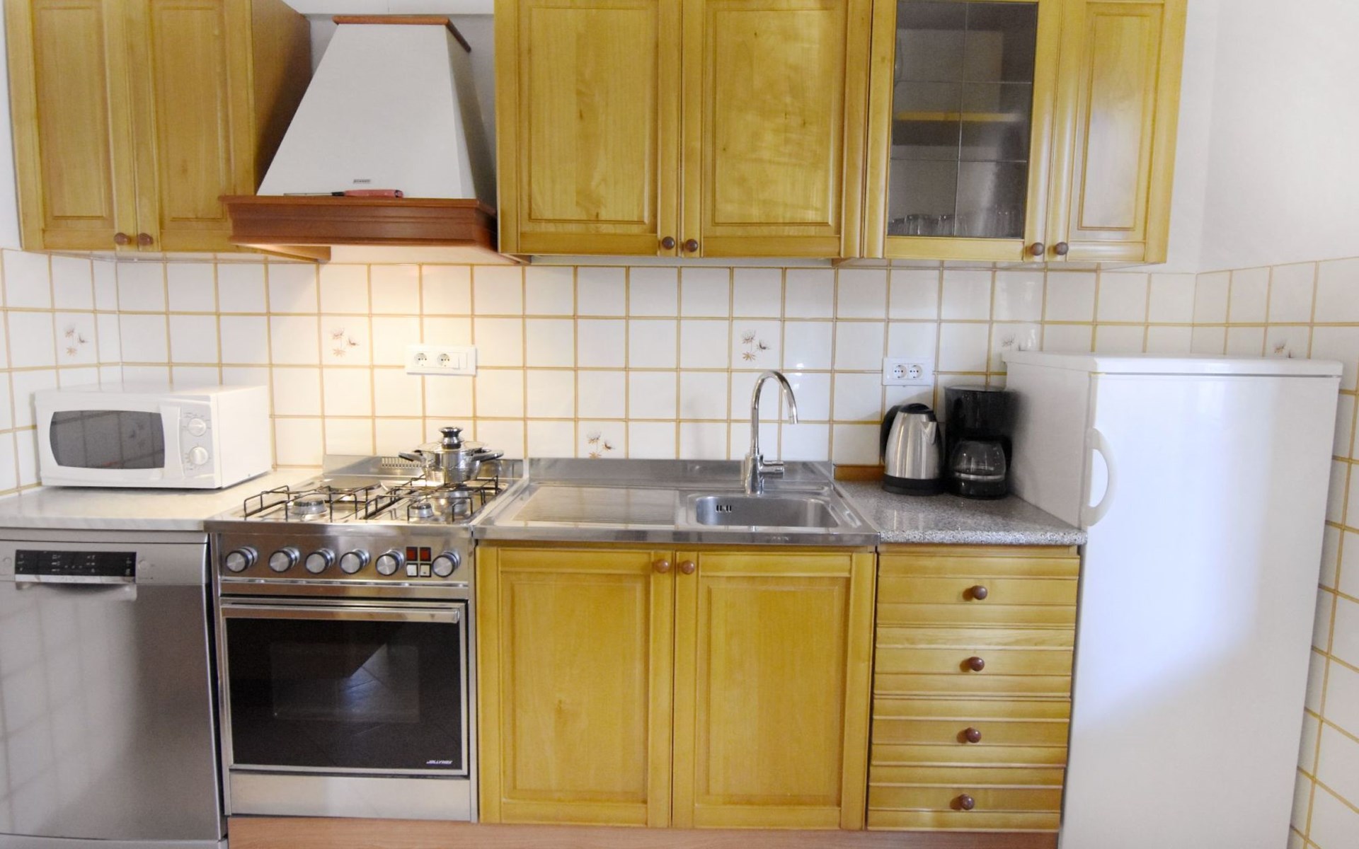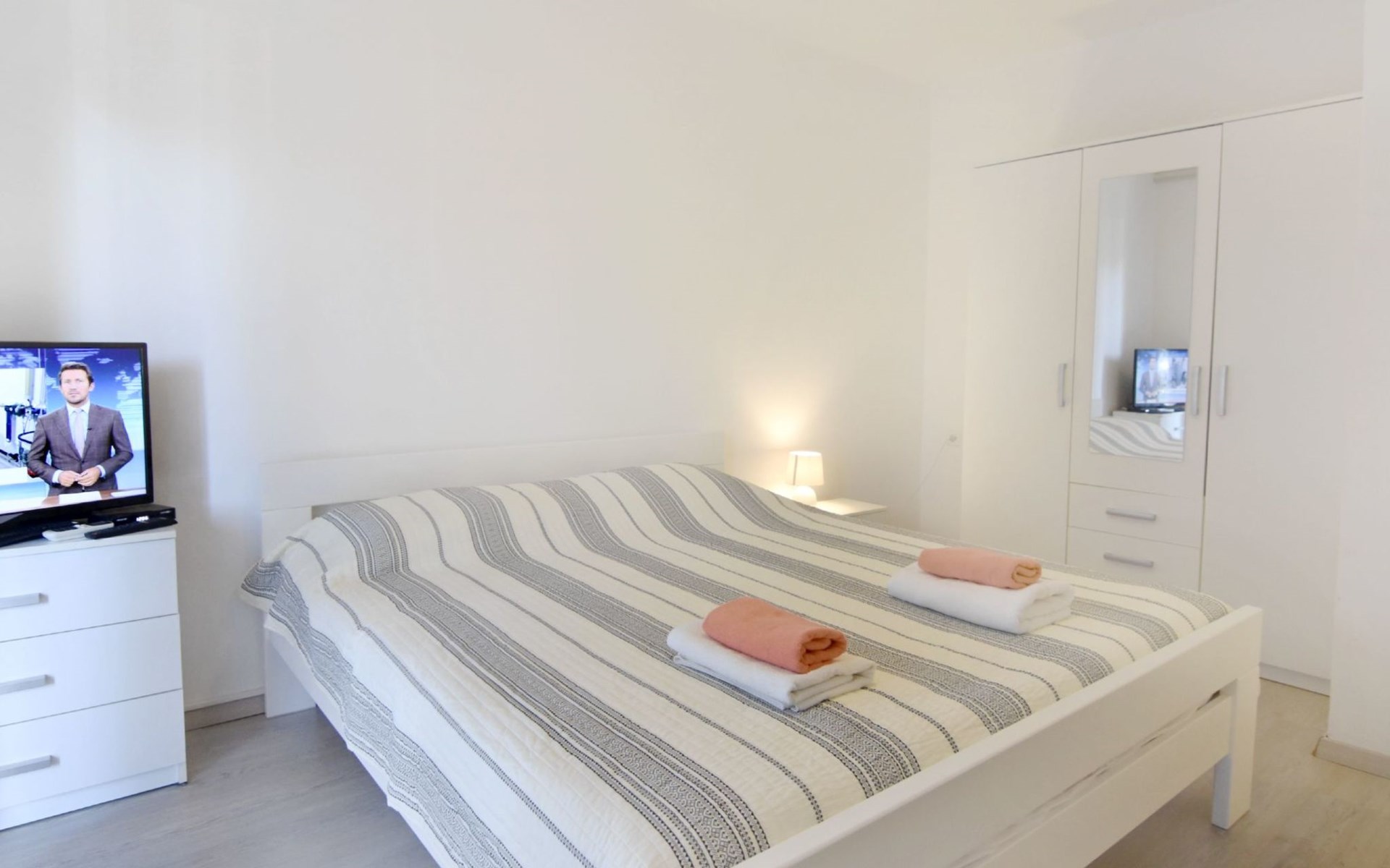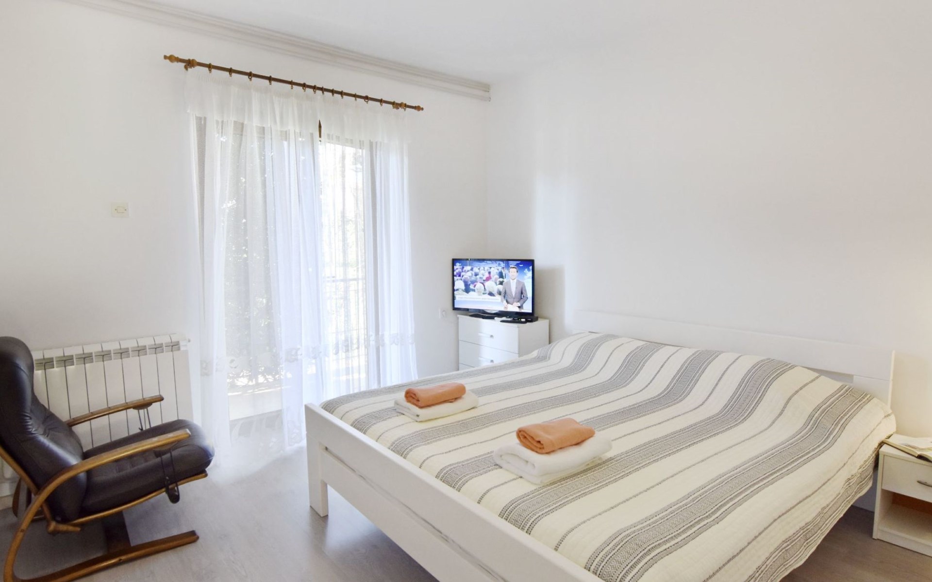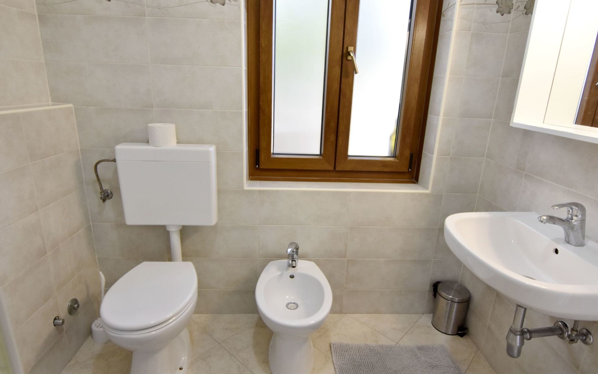 The simple, air-conditioned 55m2 apartment is located on the ground floor of a family house with garden, garden furniture and private entrance. The beach and the center of Umag are easily reachable on foot in a few minutes. The area is quiet and central. It has 2 bedrooms with double beds and a garden so it is ideal for two couples of friends, families or for those who want not to use the car during the holiday. The apartment consists of two bedrooms with double beds (160x200), bedside tables, night lamps, and wardrobes, exit to the terrace.Bed linen is provided (changed weekly).The bathroom with shower, toilet, bidet, sink with wardrobe and mirror, two towels per person are provided (changed weekly).The fully equipped eat-in kitchen with refrigerator with freezer area, oven, hob with 3 gas and one electric burner, extractor hood, kettle, coffee maker, dining table with 4 chairs, satellite TV and DVD, free Wi-Fi Internet connection, air conditioner.A utility room with a washing machine available.At the entrance, there is a terrace overlooking the garden furnished with a table, chairs, and umbrella.In the well-kept garden, the barbecue is for shared use with the owners of the house.Free parking near the house.The location is excellent for those who do not like to travel by car during the holiday due to the proximity to the beaches and the city center.The closest beach at 150m is sandy with concrete areas on the shore and a fast-food restaurant on the coast offering great menus and hammocks in the sea. . The rocky beach is called Africa is 300 meters from the apartment. Both beaches are easily reachable on foot in a few minutes.Attached to the Africa beach is a bar where you can enjoy a good coffee, cold drinks or fast food, as well as a volleyball court.The park with pine trees 200 m from the house, the city center, bakery, supermarket, bars, restaurants 300-400 m, all within easy walking distance. In the center of Umag, it is worth visiting the museum, the aquarium, the cathedral, or taking a walk along the famous Umag Dam and exploring the narrow and interesting streets of the historical center of Umag or visiting the stalls. There are various leisure facilities nearby: Tennis courts, the Adriatic Golf Club with 18 holes, horse riding, water sports, night clubs, adrenaline park, mini-golf course, fishing. It is also possible to go on various organized excursions by boat or bus. The area is full of renowned restaurants, simple restaurants, pizzerias, fast food restaurants, and bars. We recommend visiting the Istrian hinterland for days away from the beach or to spend the evenings. Very interesting is the artists' village of Grožnjan, Motovun, the typical medieval town on a hill, famous for the film festival held every year at the end of July. The village of Livade is very famous for its white truffles. For cave lovers, visit the Baredine Cave. Don't miss the opportunity to visit Hum, the smallest town in the world, only 60 km from Umag. Interesting are also the places on the coast such as NP Brijuni, Pula, Rovinj, and Poreč. Organize different fish picnic boat trips where you have the opportunity to visit Rovinj and Poreč or Novigrad. The day trip by hydrofoil to Venice. To visit the water park Istralandia 20 km from Umag to the delight of children and the Dinopark in Vrsar, there is guaranteed fun. For gourmets, various possibilities for tasting wines, cheeses, olive oil, typical Istrian ham, and much more. For organized excursions, we recommend the agency Trevitours.* Registration on the first day, to be paid on the spot on arrival. * Pets are allowed (only small ones, up to 10 kg) Additional costs, to be paid on site on arrival. * Guests are requested to use the equipment with care. * It is forbidden to smoke inside, but you can smoke on the terrace. * For damages caused, guests are asked to inform the owner or the agency that after a careful assessment of the damage, the cost of the damage will be charged on the spot.Short descriptionOther : Non-smoking houseShort description 1Number of kitchens : 1Bathroom 1Other bathroom equipment : Washing machineSurroundingNearby sports facilities : Basketball, Bike tours, Diving, Fishing, Football area, Golf course, Hunting facilities, Mountainbiking, Riding possibilities, Sailing, Sport center, Surfing, Tennis, Water skiingRental Facilities : Bicycle rental service, Boat rental service, car rentalGarden and outdoorGarden facilities : Garden furniture provided, GrillService benefitsService facilities (may incur additional costs) : Transfer service (airport etc)