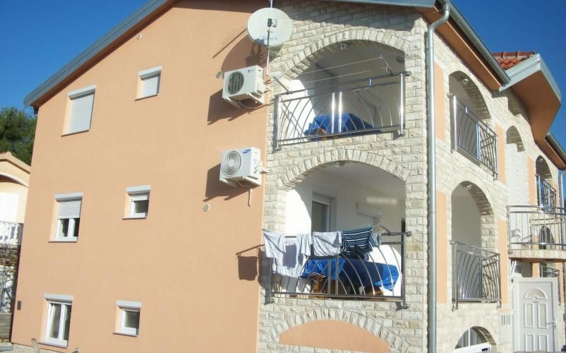 Discover the perfect getaway in our charming apartment situated in the serene locale of Vir in Dalmatia. Nestled on the ground floor of a detached house, this cozy abode is just a stone's throw away from the pristine beach and the sparkling sea, both accessible within a mere 150 meters. With its convenient location near Zadar, which boasts an airport and excellent bus connections, planning your vacation has never been easier. Experience the joy of over 300 sunny days a year in Vir and make unforgettable memories in our homely apartment.Inside, the apartment spreads across a spacious 70 m², offering ample room for relaxation and leisure. It is equipped with essential amenities to ensure a comfortable stay, including air conditioning throughout, a coffee machine for your morning brew, a dishwasher to ease your cleaning tasks, and electric kettle for your hot beverage needs. For added convenience, there is a washing machine and a clothes dryer for your exclusive use within the property, ensuring all your laundry needs are met without a hassle.Step outside and you will find yourself in a shared garden, a tranquil spot for enjoying the outdoors and soaking in the natural beauty of Vir. The apartment comes with a large terrace, providing a serene setting for morning coffees or evening relaxation. Though the view of the sea and Velebit mountain range is limited, the serene atmosphere and proximity to the beach more than make up for it, offering a perfect backdrop for your holiday.Venture out to explore the vibrant surroundings, where a plethora of activities and attractions awaits. The beach is just about 100 meters away, inviting you to indulge in water sports or simply bask in the sun. For your convenience, restaurants, bakeries, shops, and cash machines are closely located, ensuring everything you need is within reach. Whether it’s grocery shopping 300 meters away or trying out water sports 200 meters from the apartment, there’s never a dull moment.Create lasting memories in our welcoming apartment, where convenience meets comfort in the idyllic setting of Vir. With everything you need for a delightful stay and the allure of Dalmatia right at your doorstep, it’s the perfect place for a vacation that combines relaxation with adventure. Book your stay with us and experience the joy of Dalmatia’s sunny days and enchanting surroundings.
