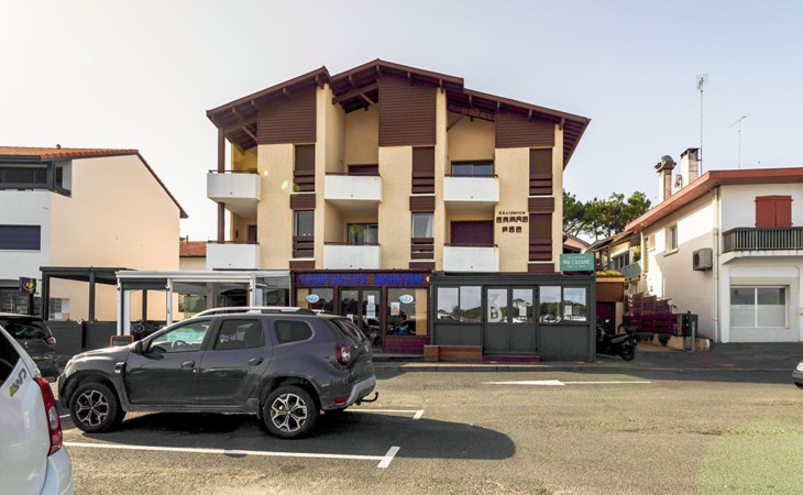 Capbreton 2 km van hossegor: Residentie "le Grand Foc". 1 km van het centrum van Capbreton, van zee, 500 m van het strand. Supermarkt 1 km, restaurant 10 m. Jachthaven 20 m, golfterrein (18 holes) 3 km. Geen lift. Groepen jongeren uitsluitend op aanvraag.