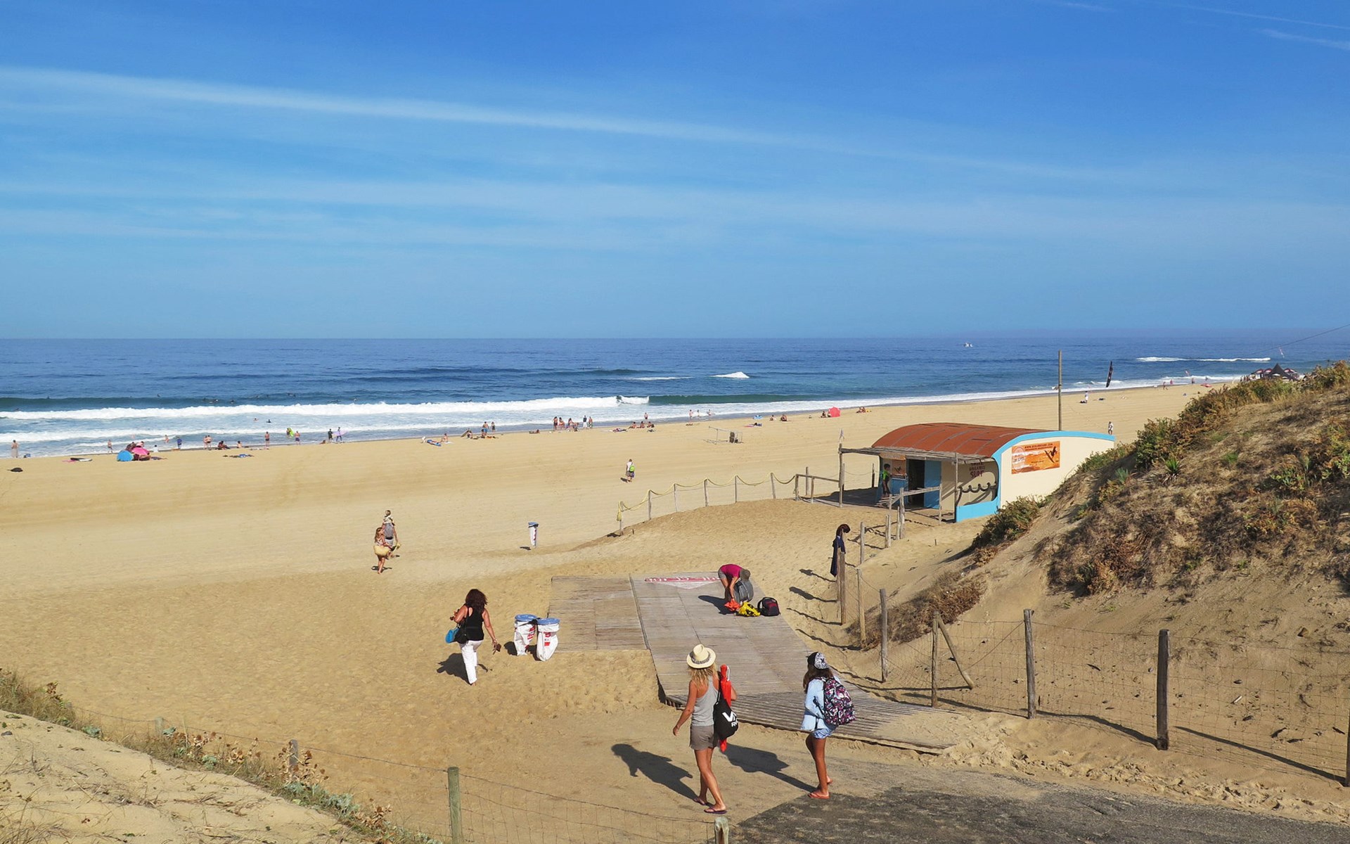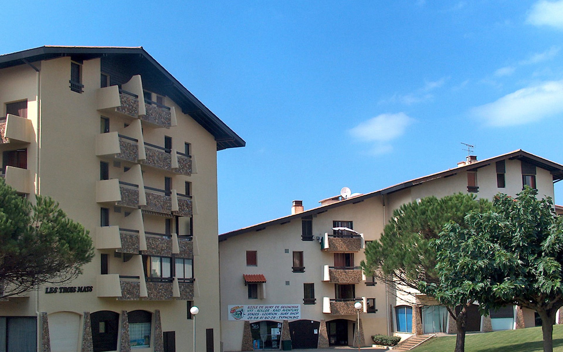 Seignosse Le Penon 6 km van Hossegor: De residenties "Le Triton", "Le Trimaran", "Trois Mats", "Le Trireme" en "Trinquart" zijn mooi gelegen, tegenover het watersportpark. De appartementen zijn over 4 verdiepingen verdeeld. Levendig uitgaansleven, zowel overdag als 's avonds. De zee is bereikbaar over de duinen residentie "Trinquart". 300 m van zee, 5 km van het meer. Winkel, restaurant 30 m, zandstrand 300 m. Golfterrein (18 holes) 3.5 km. Geen lift. Vergelijkbare accommodaties kunnen worden geboekt.