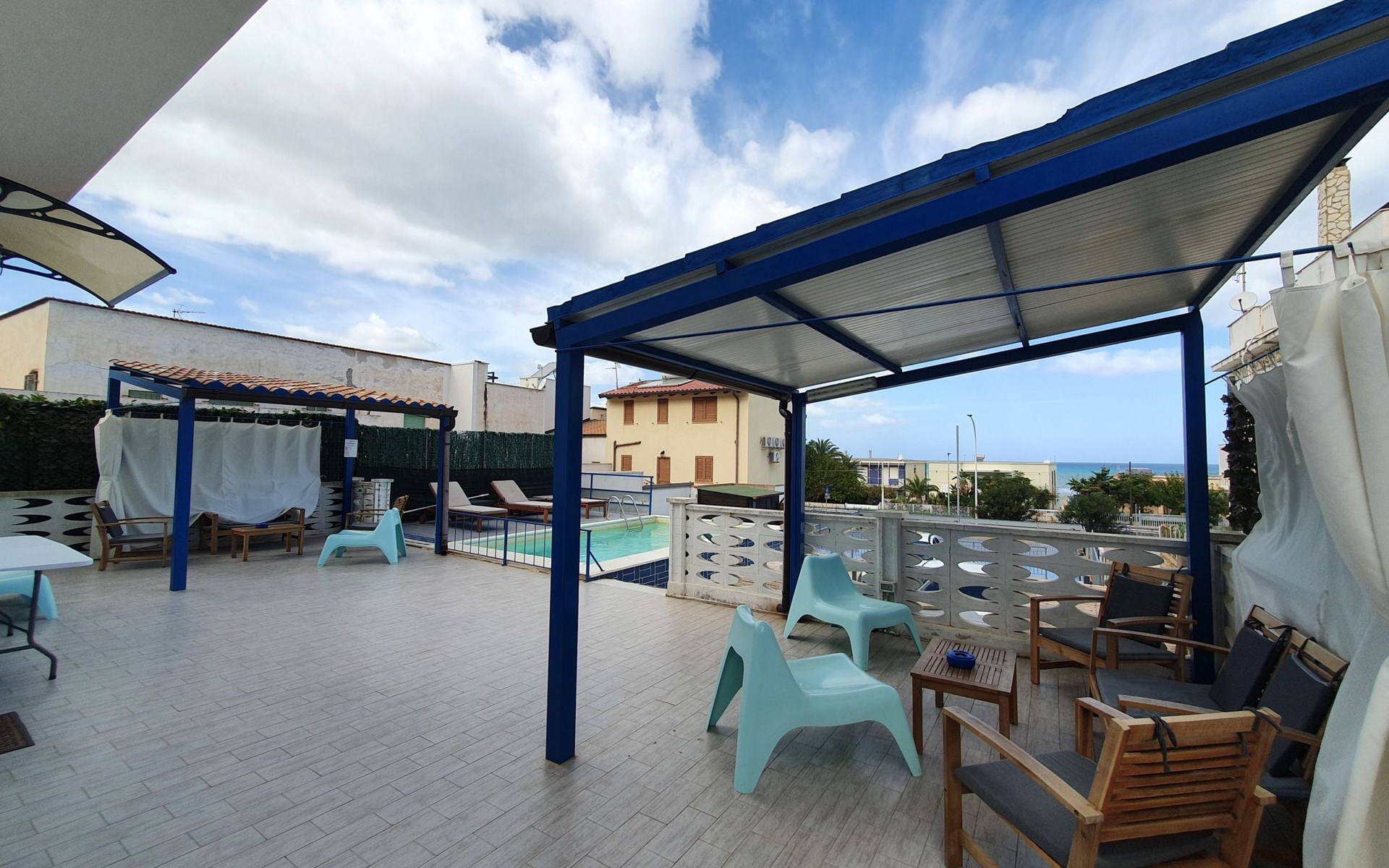 Villa "Blu Corallo". In de wijk Alcamo Marina, 8 km van het centrum van Alcamo, 5 km van het centrum van Castellammare del Golfo, 100 m van zee, 300 m van het strand. Voor alleengebruik: terrein 1.000 m2 (omheind), openluchtzwembad (6 x 4 m, 130 cm diepte, seizoensgebonden beschikbaarheid: 28.Mrt. - 31.Okt.) met zout-elektrolyse. 30 m lange smalle toegangsweg tot aan het huis. Levensmiddelenwinkel 850 m, restaurant 450 m, bar 100 m, bushalte 200 m, treinstation "Castellammare del Golfo" 1.5 km, zandstrand "Alcamo Marina" 300 m. Attracties in de buurt: Faraglioni di Scopello 16 km, Parco Archeologico di Segesta 22 km, Erice 43 km, Trapani/ Porto Traghetti per Isole Egadi 50 km, San Vito lo Capo 50 km, Palermo 65 km. Bekende meren kunnen gemakkelijk worden bereikt: Riserva Lago Piana degli Albanesi 53 km. Wandelgebied Riserva Naturale Orientata Monte Cofano 35 km. Auto noodzakelijk.