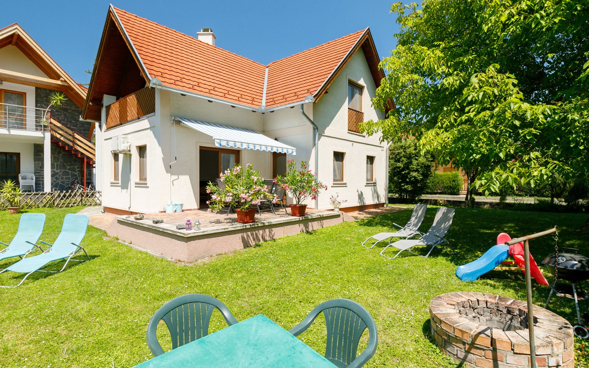 Balatonakali 15 km van Balatonfüred: Kindvriendelijk, mooi, gezellig huis "Nadori 1", van 2 verdiepingen, bouwjaar 2006. 100 m van het meer, 500 m van het strand. Voor alleengebruik: tuin 400 m2, ligweide. Terras, barbecue, stookplaats (zandbak). In het huis: Internet (WiFi), centrale verwarming, air-conditioning, wasmachine. Winkel 300 m, levensmiddelenwinkel 500 m, restaurant 200 m, bakkerij 500 m, café 400 m, fietsverhuur 900 m, bushalte "Balatonakali, bejárati út" 450 m, treinstation "Balatonakali-Dörgicse" 350 m, thermaalbad "Hévíz" 52 km. Golfterrein (18 holes) 5 km, tennis 4 km, fietspad 100 m, kinderspeelplaats 200 m. Attracties in de buurt: Tihany 12 km, Balatonfüred Annagora Aquapark 14 km, Veszprem Zoo 34 km, Festetics Castle 50 km, Balatonbob Theme Park 36 km, Tihany Adventure Park 12 km. Wandelgebied Badacsony 25 km. Groepen jongeren uitsluitend op aanvraag. De sleuteloverdracht vindt plaats bij het agentschap Interhome in Balatonfüred, 16 km. Spoorweg in de buurt 100 m van het huis.