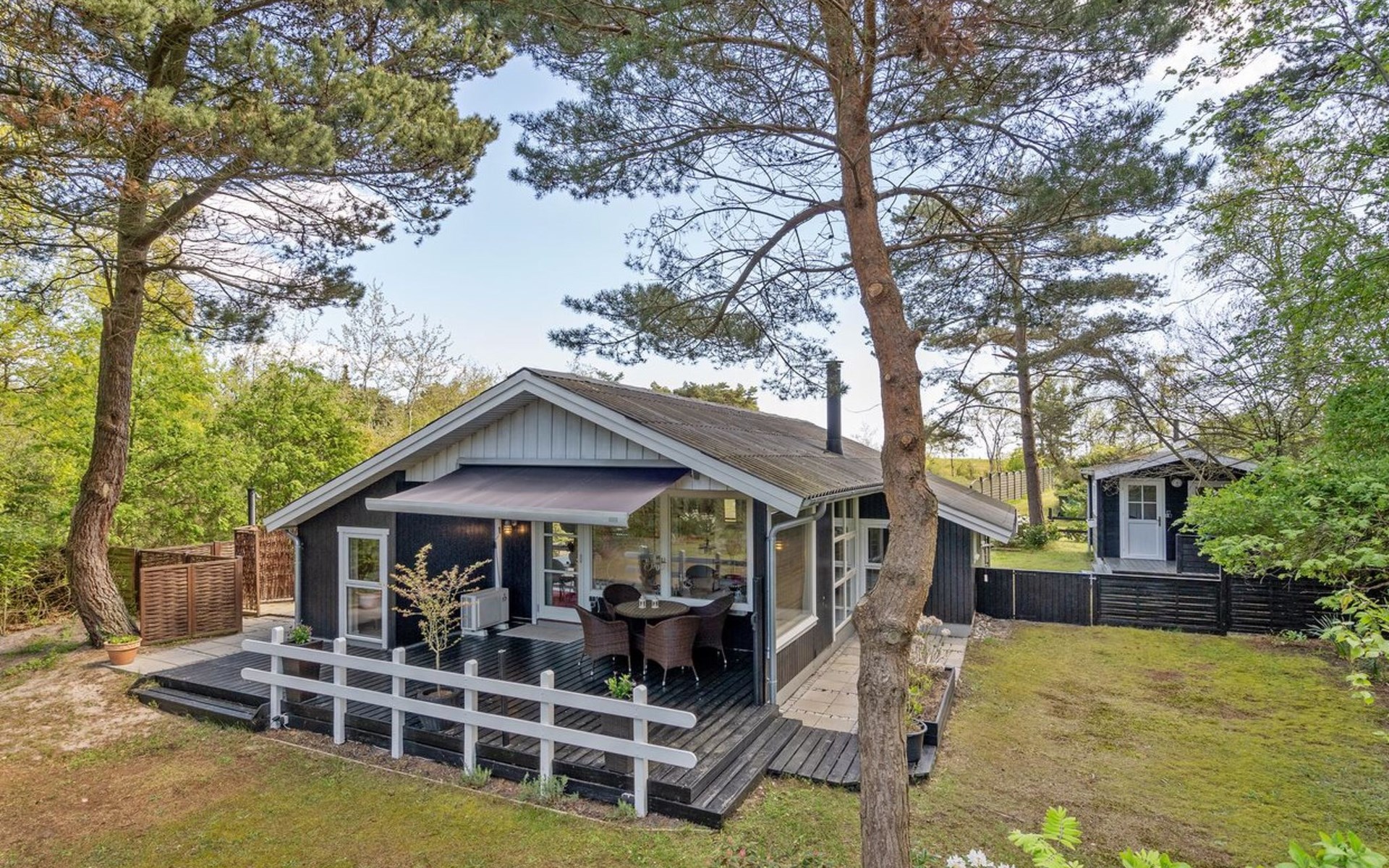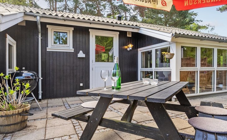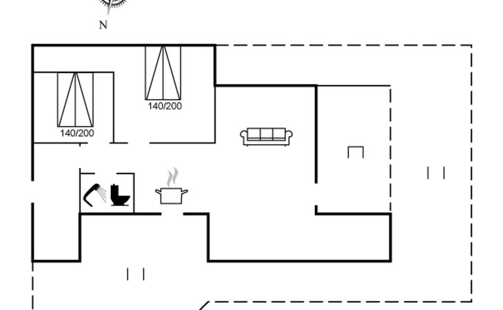 Eengezinswoning, bouwjaar 1977. 75 m van zee. Voor medegebruik: tuin. Voor alleengebruik: terrein 982 m2, verzorgde tuin (omheind). Terras (50 m2). In het huis: wasmachine. Parkeerplaats bij het huis. Levensmiddelenwinkel 4.5 km. Golfterrein 10 km. De eigenaar accepteert geen jeugdgroepen.